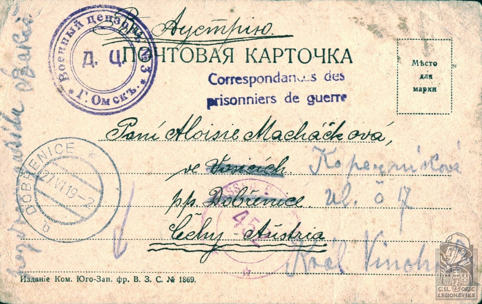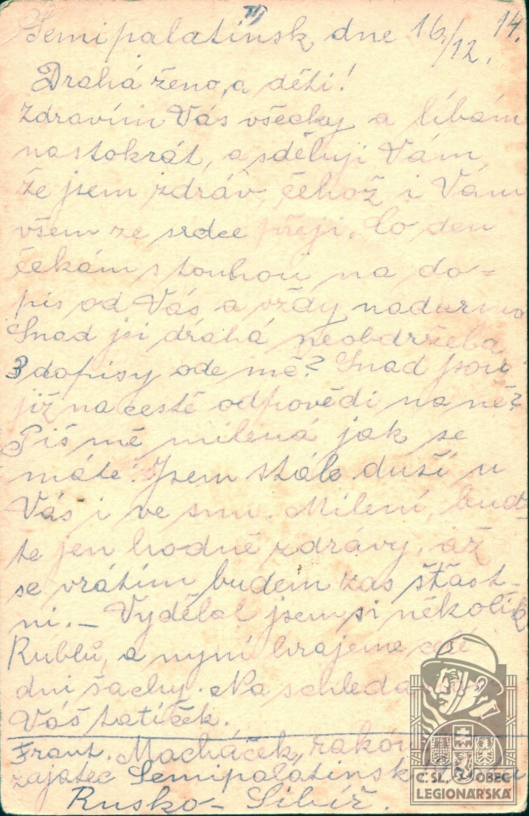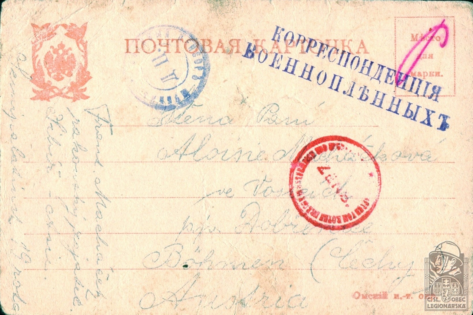 Jednotka v době zařazení:1.stř.pl. ( Čs. legie v Rusku )