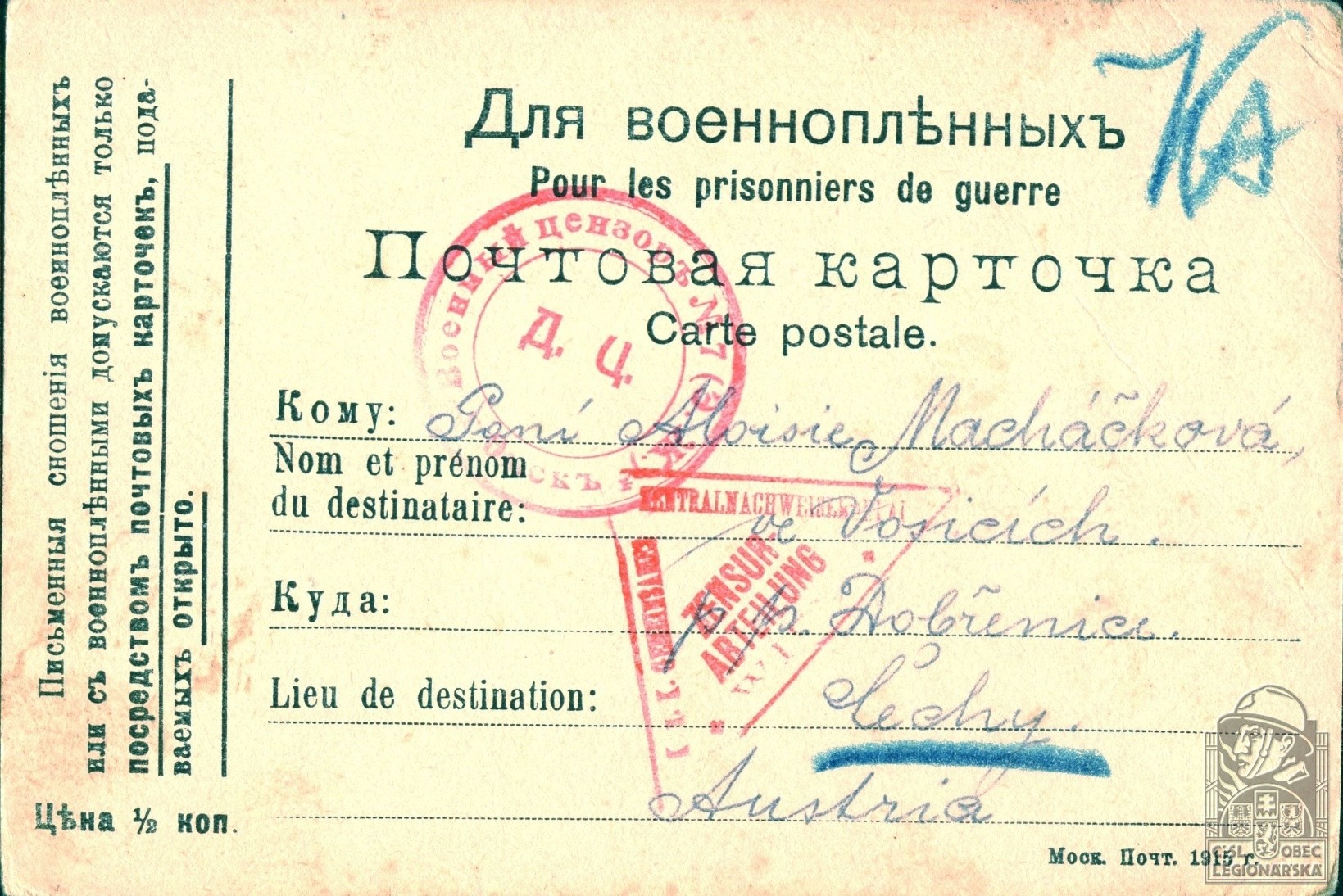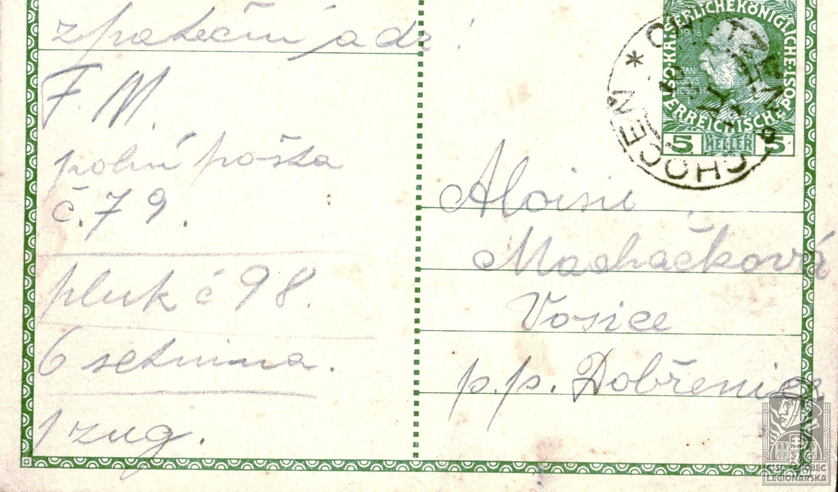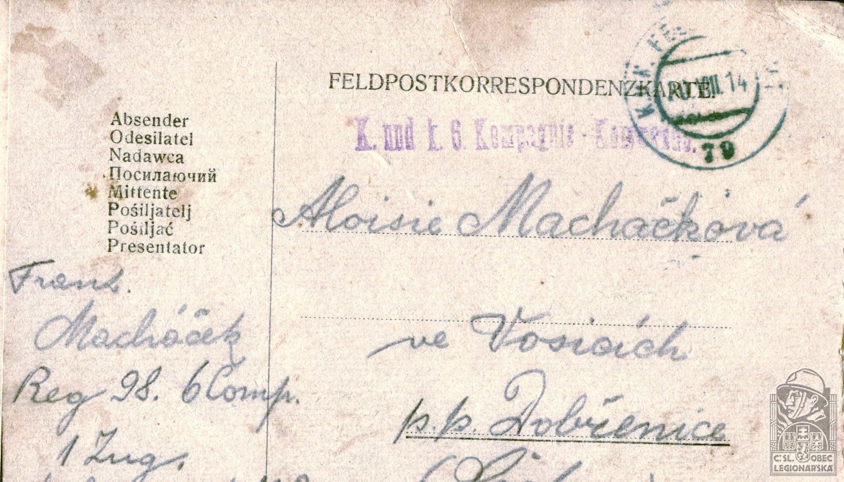 Rakousko-uherský útvar v době zajetí:98.p.pl.