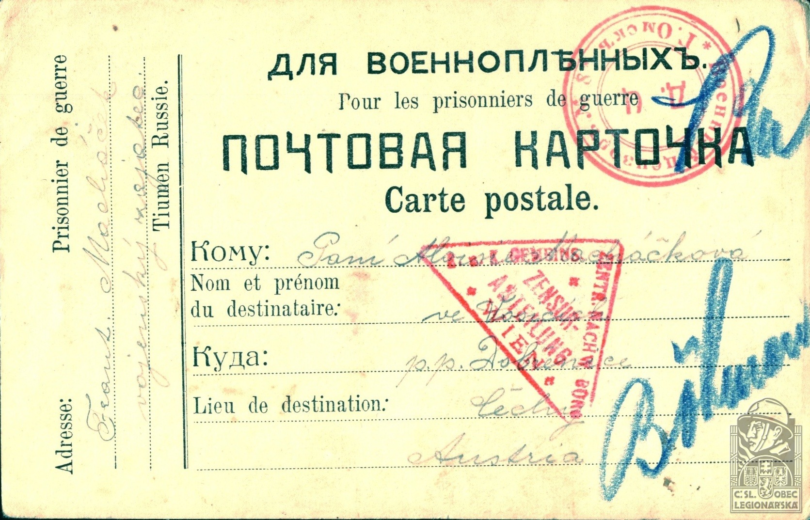 Misto podání přihlášky do legií:Tjumeň