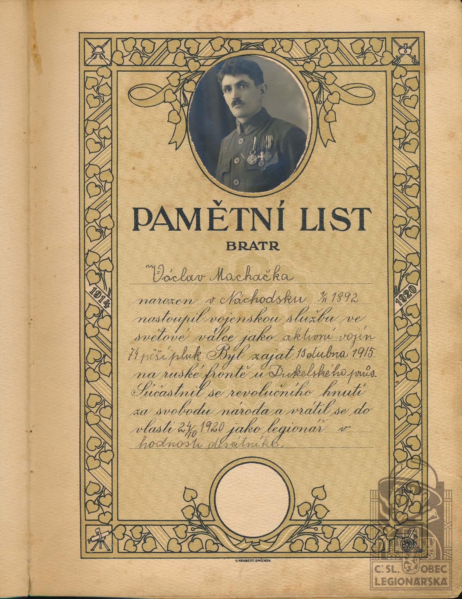 dokumenty spojené s osobou legionáře