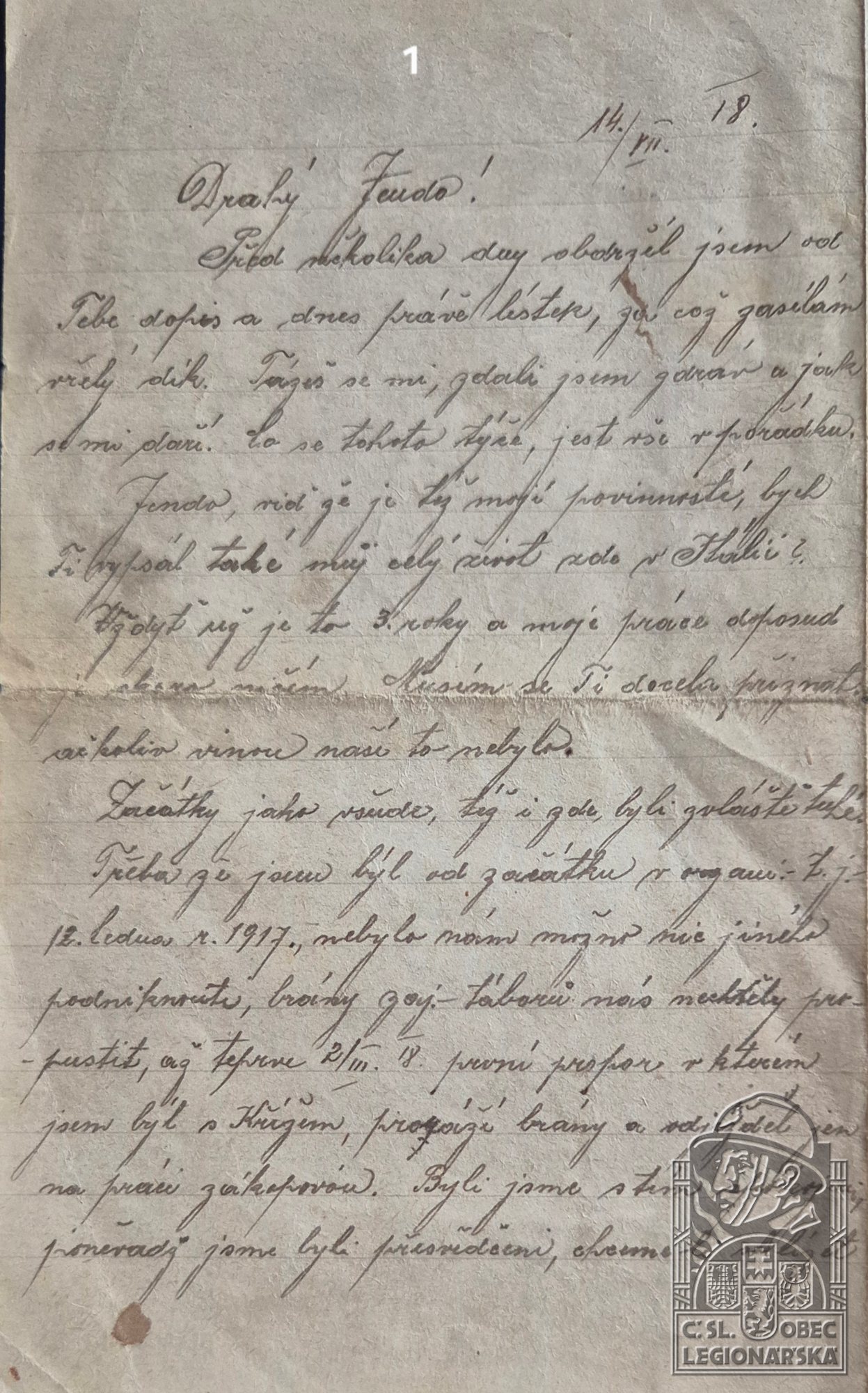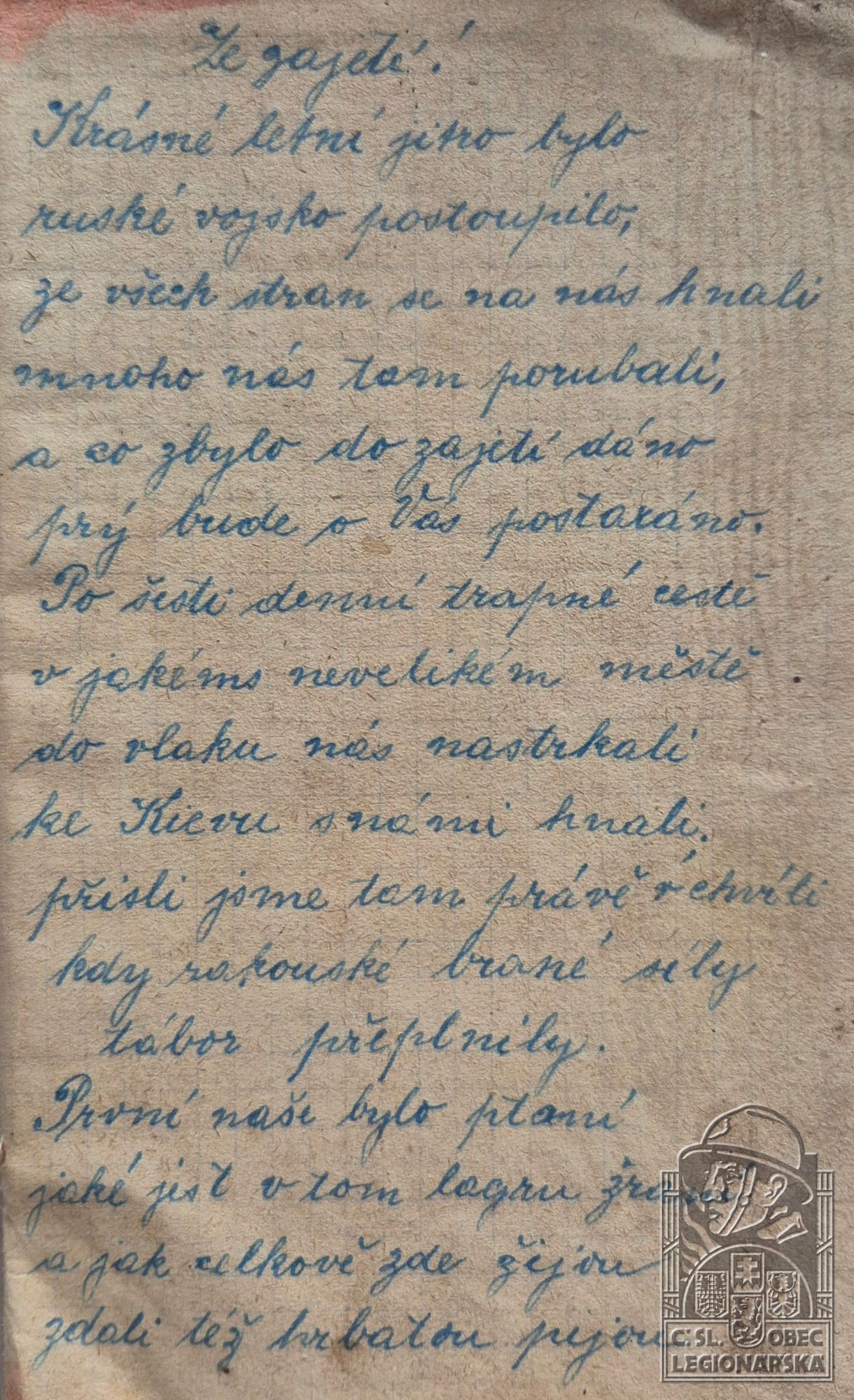 Jednotka v době zařazení:zál.pr. ( Čs. legie v Rusku )