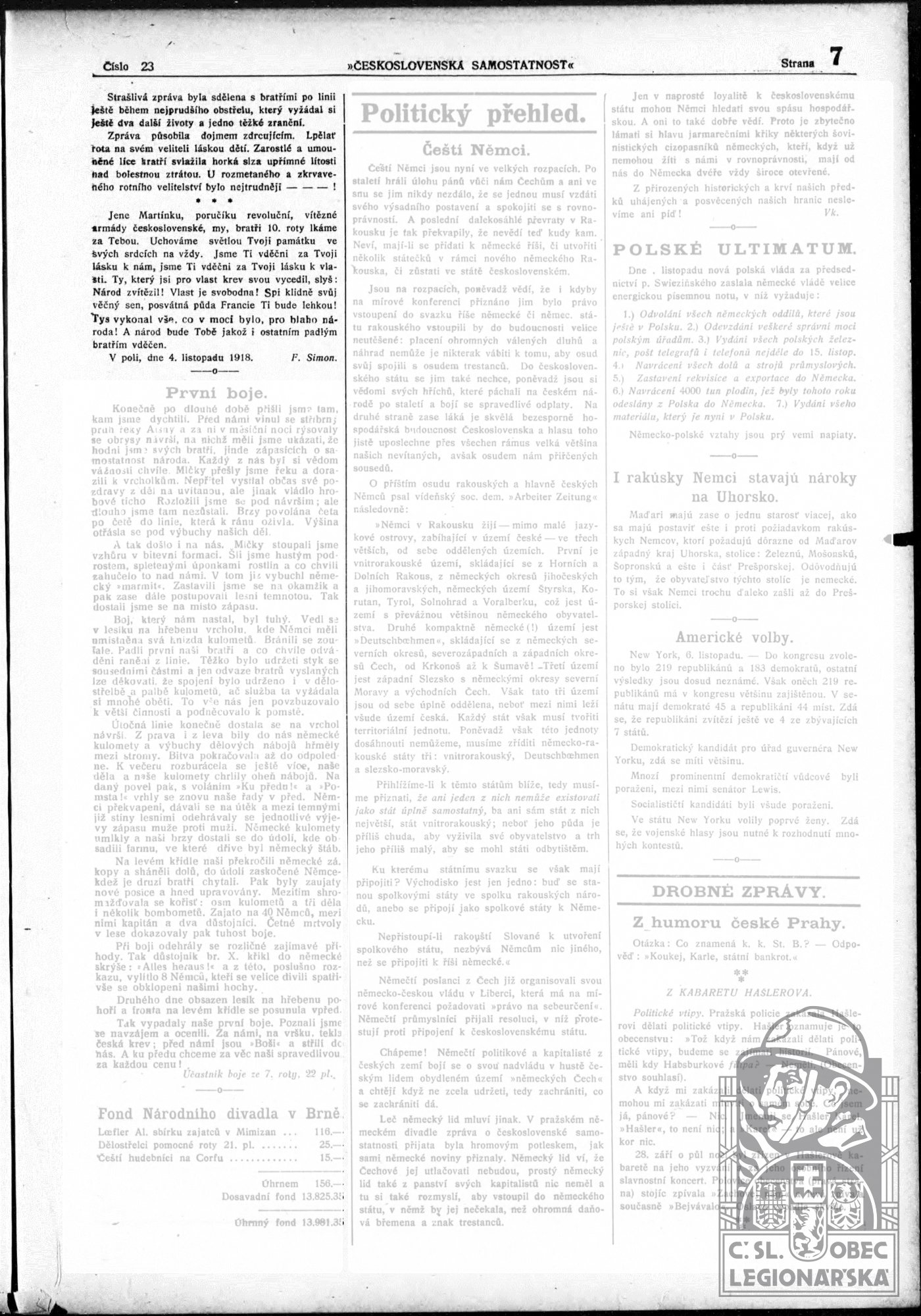 Konec v legiích:29.10.1918 ( Padl v boji )