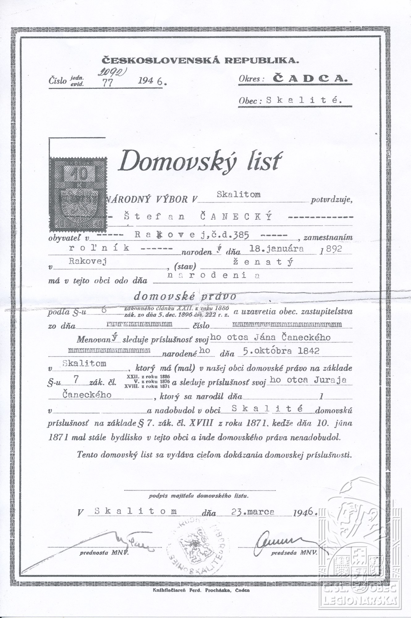 Datum narození:18.1.1892 20.1.1894