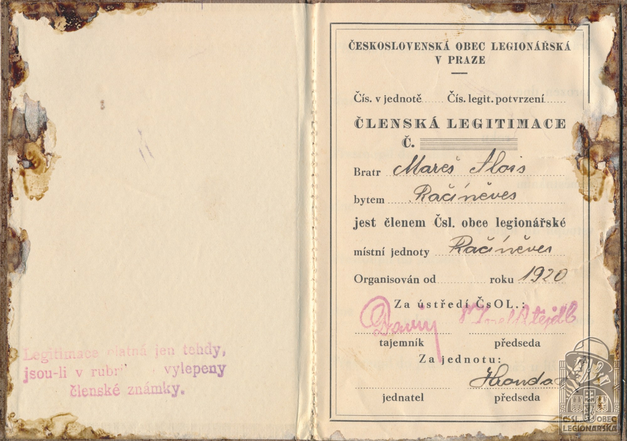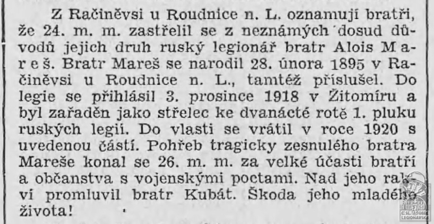 Legionářska organizace:ČsOL - Račiněves