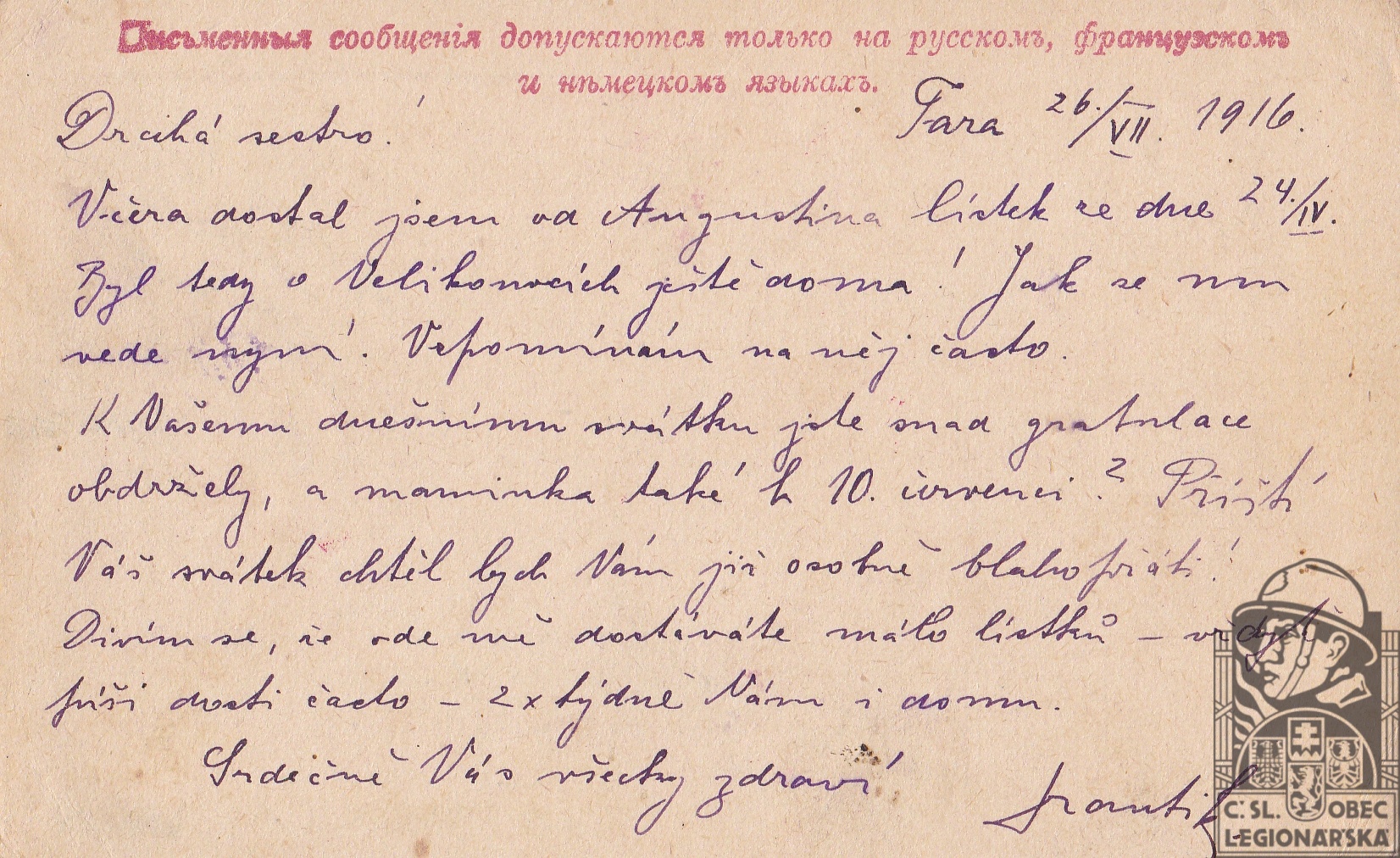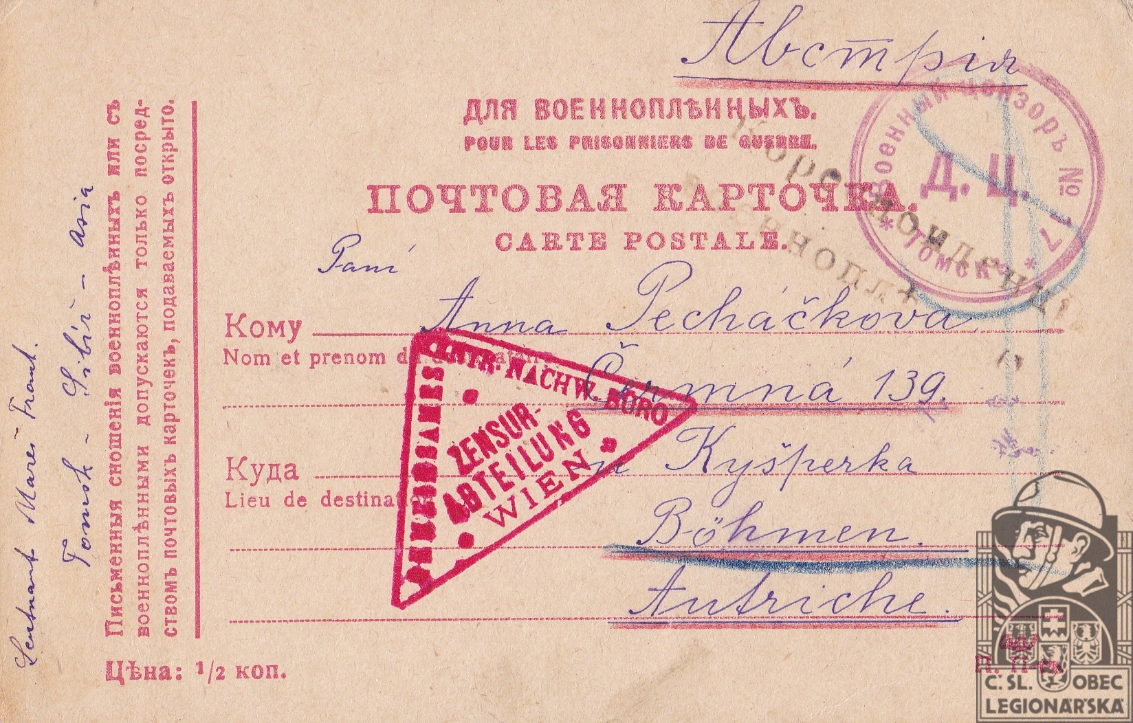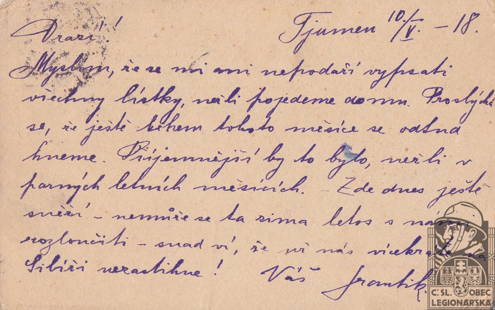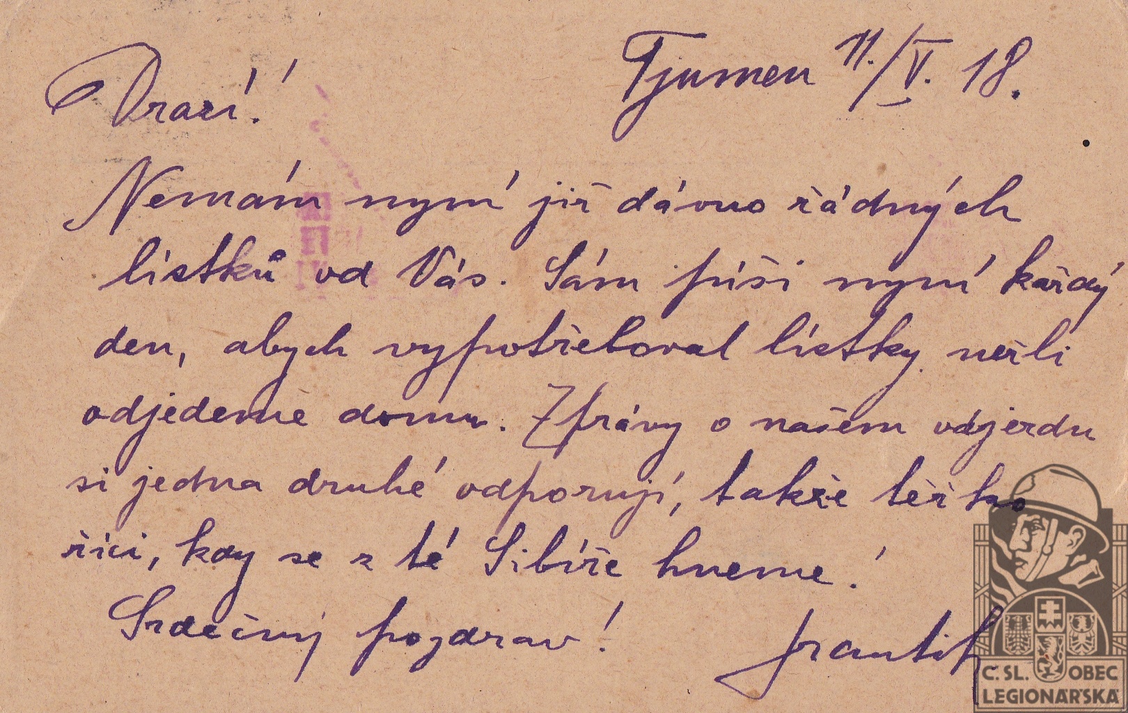 Jednotka v době zařazení:prac.družina ( Čs. legie v Rusku )