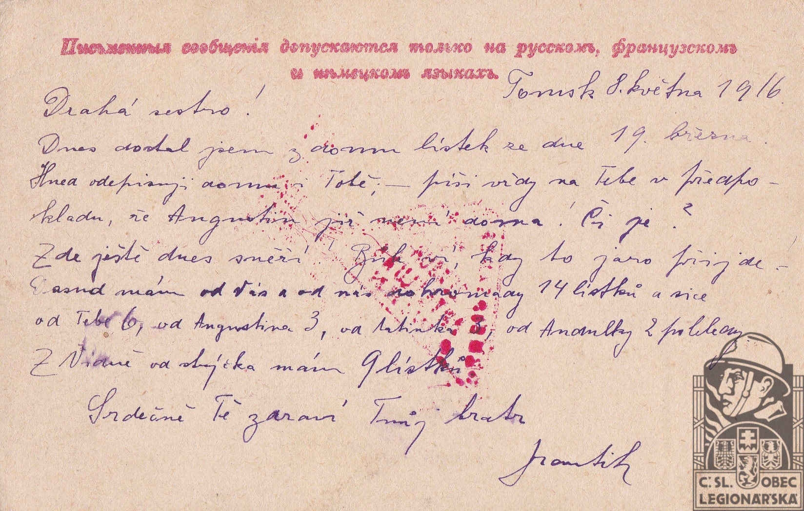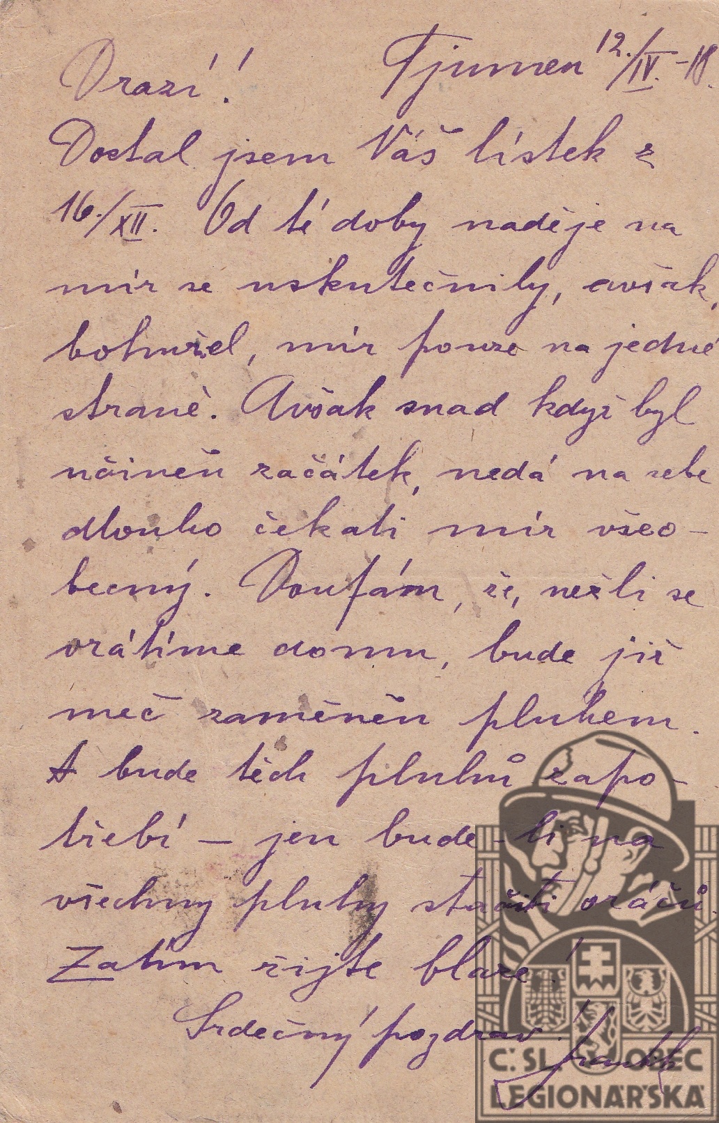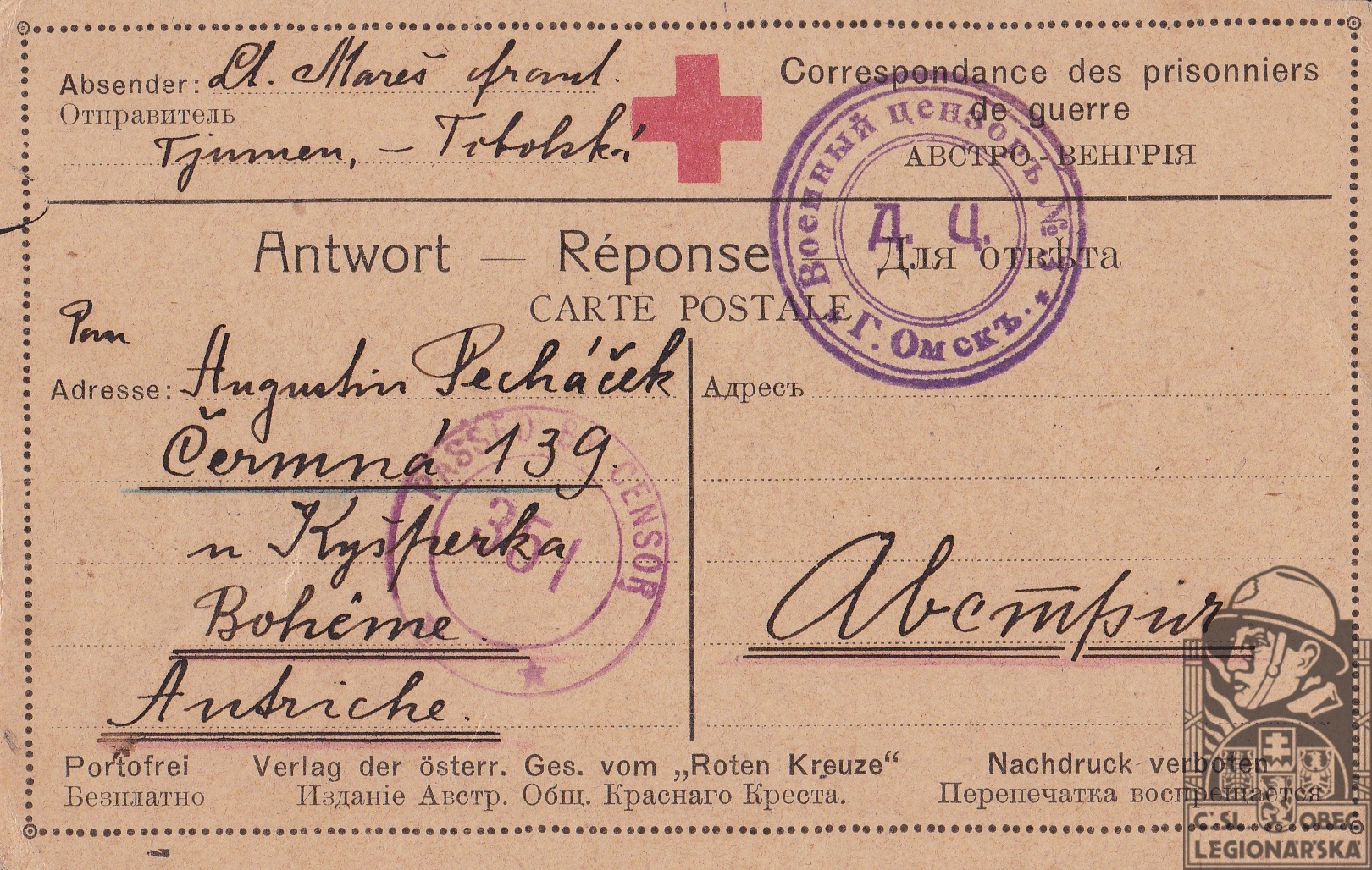 Zdroj informací: legionářský poslužný spis Zápisník Františka Mareše 1918-1920