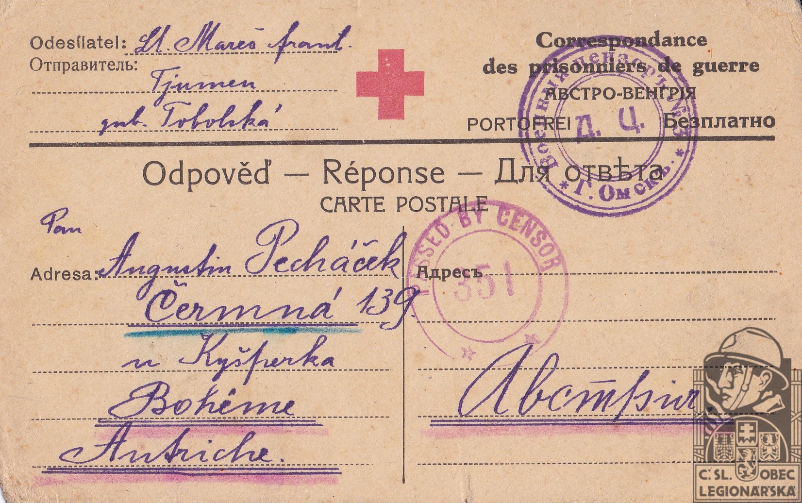 dokumenty spojené s osobou legionáře