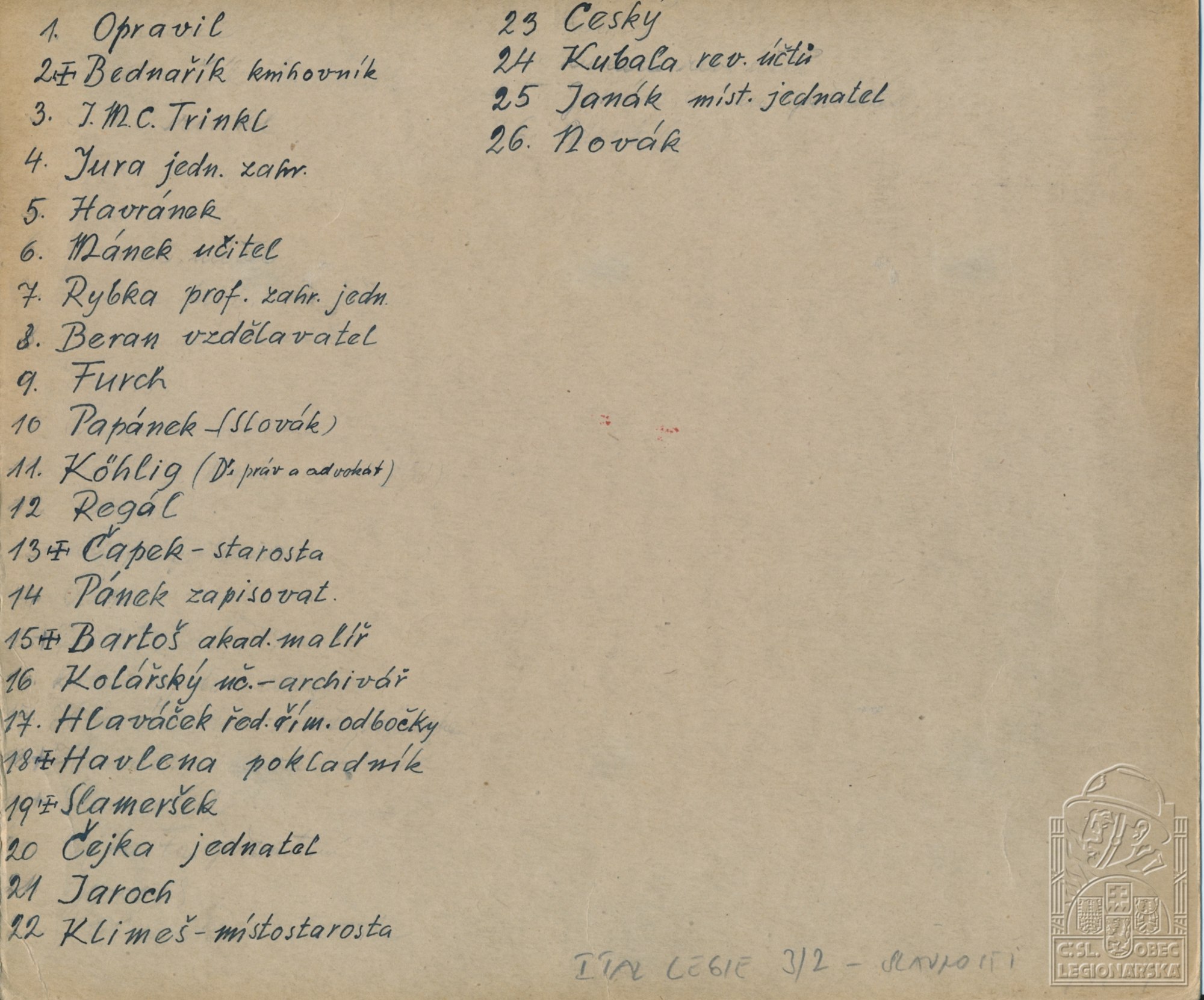 Zdroj informací: legionářský poslužný spis osobní karta legionáře