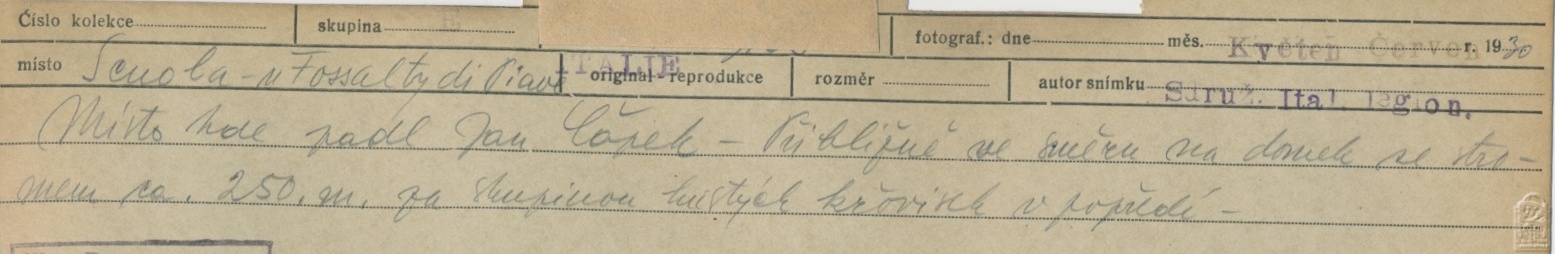 Jednotka v době zařazení:33.p.pl. ( Čs. legie v Itálii )