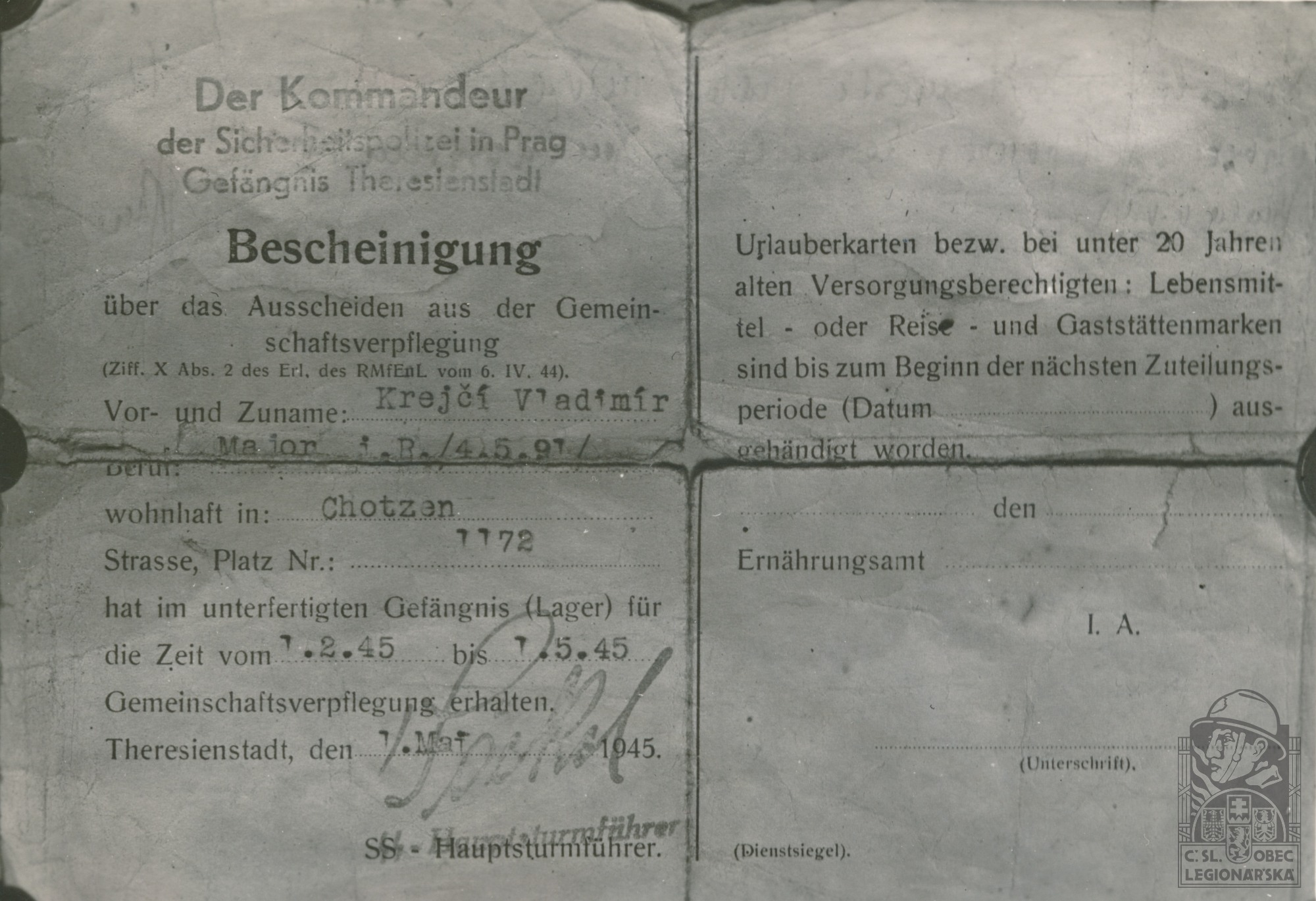 Vězněn za nacistické okupace:1.2.1945 - 1.5.1945 Terezín