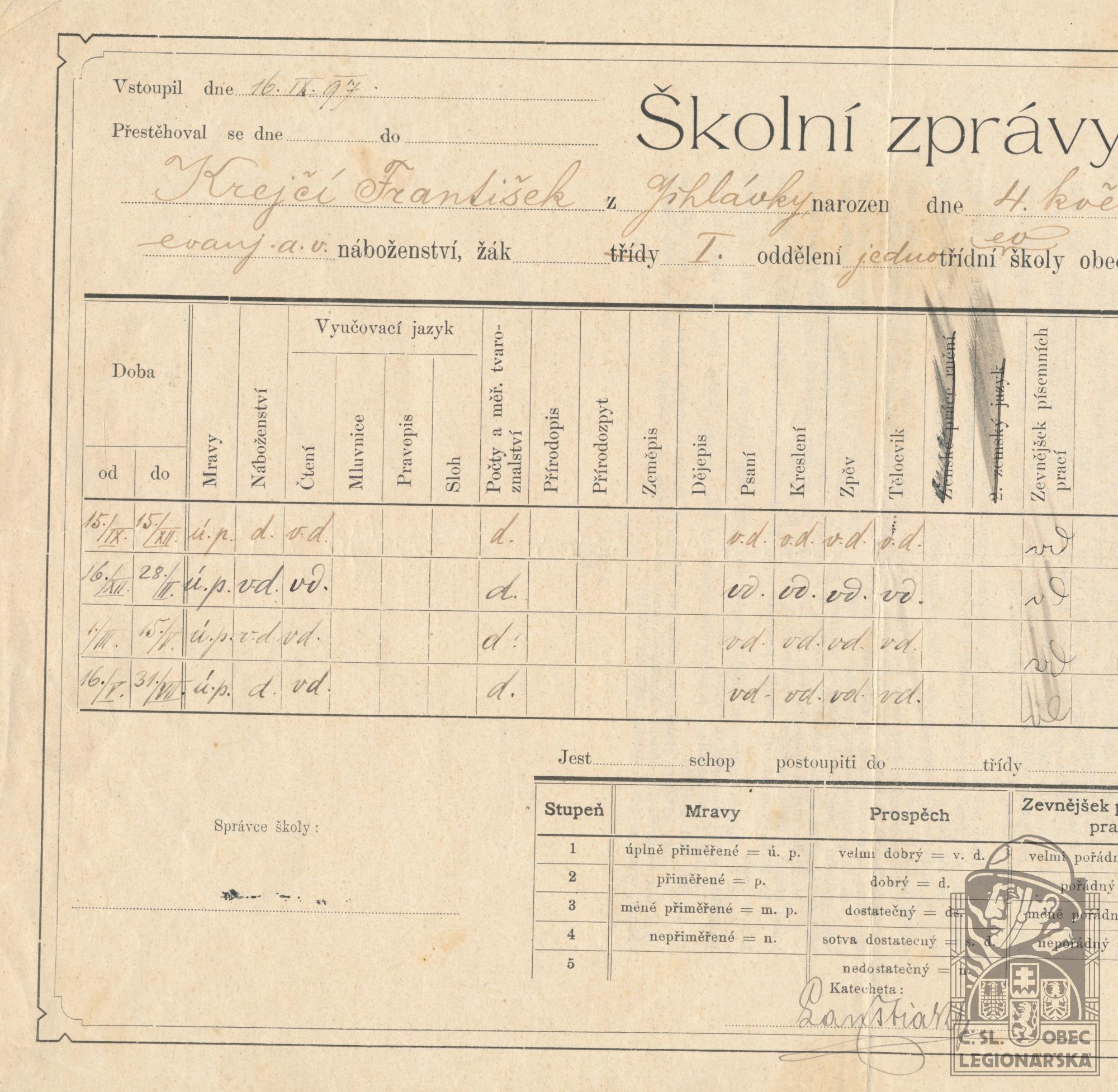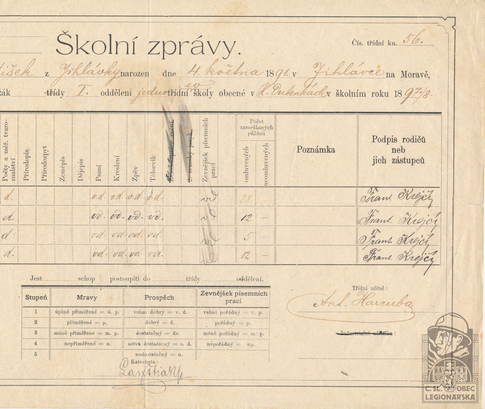 Zdroj informací: legionářský poslužný spis osobní karta legionáře
