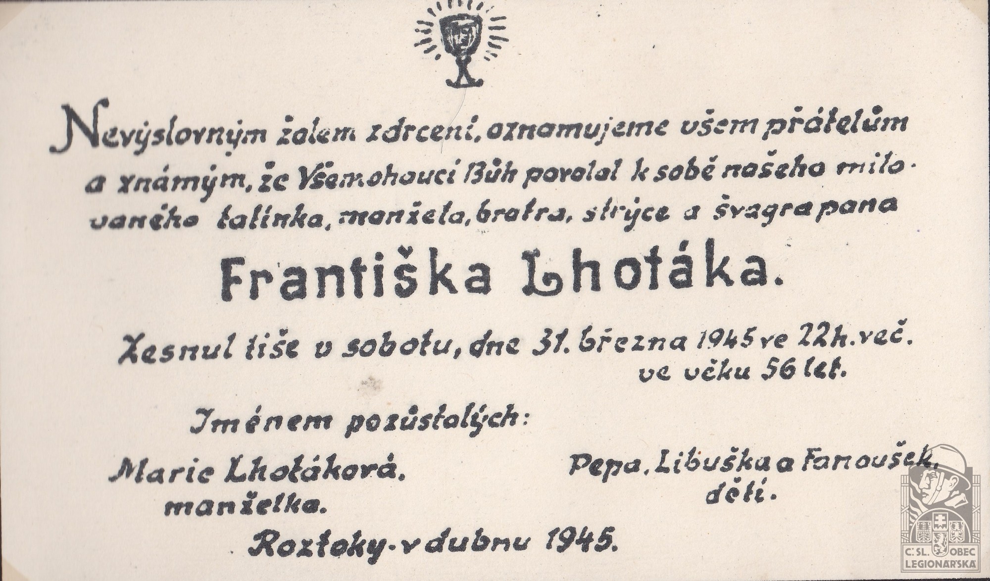 Zdroj informací: legionářský poslužný spis osobní karta legionáře HRADILOVÁ, Marta, BERG, Jiří. Českoslovenští legionáři okresu Praha-západ 1914-1921. Praha: OkÚ Praha-západ, 2001.