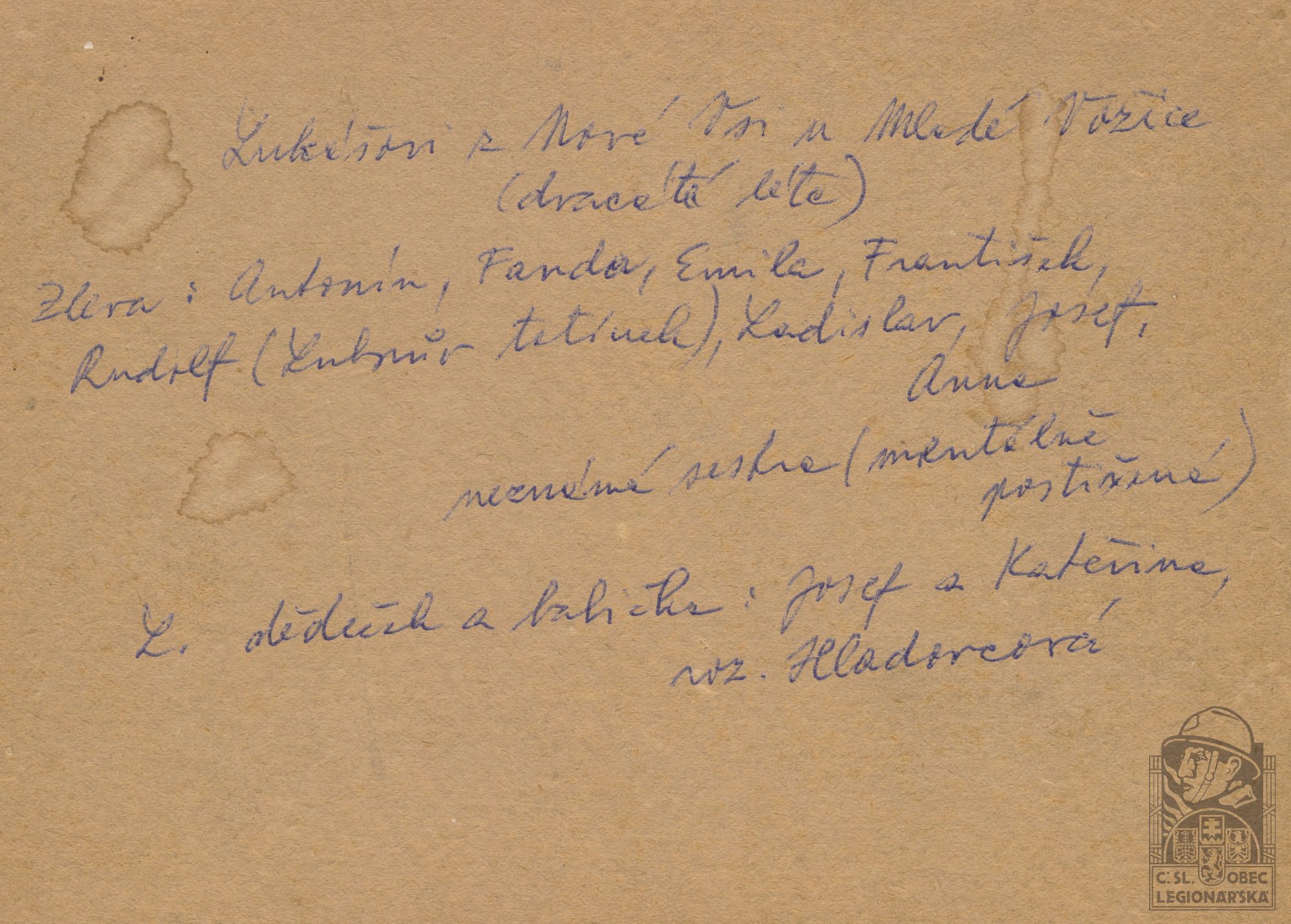dokumenty spojené s osobou legionáře