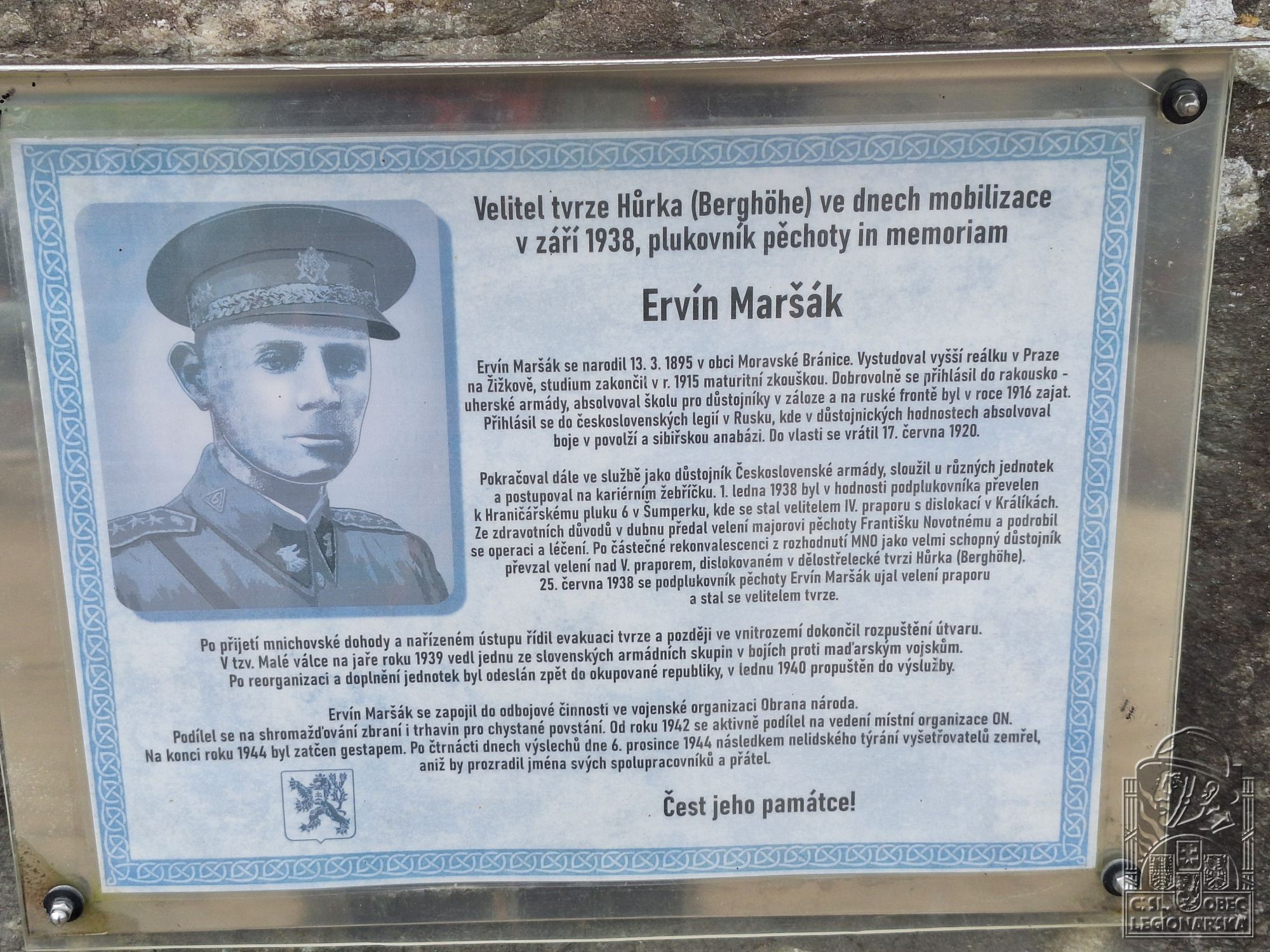 Zdroj informací: legionářský poslužný spis osobní karta legionáře HLOUŠEK, Ladislav, KUČEROVÁ, Linda, STEKLÝ, František, ŠRÁMEK, Pavel. Legionáři okresu Pardubice. Rodáci a občané 1914-1920. Pardubice: SOkA Pardubice, 2006.