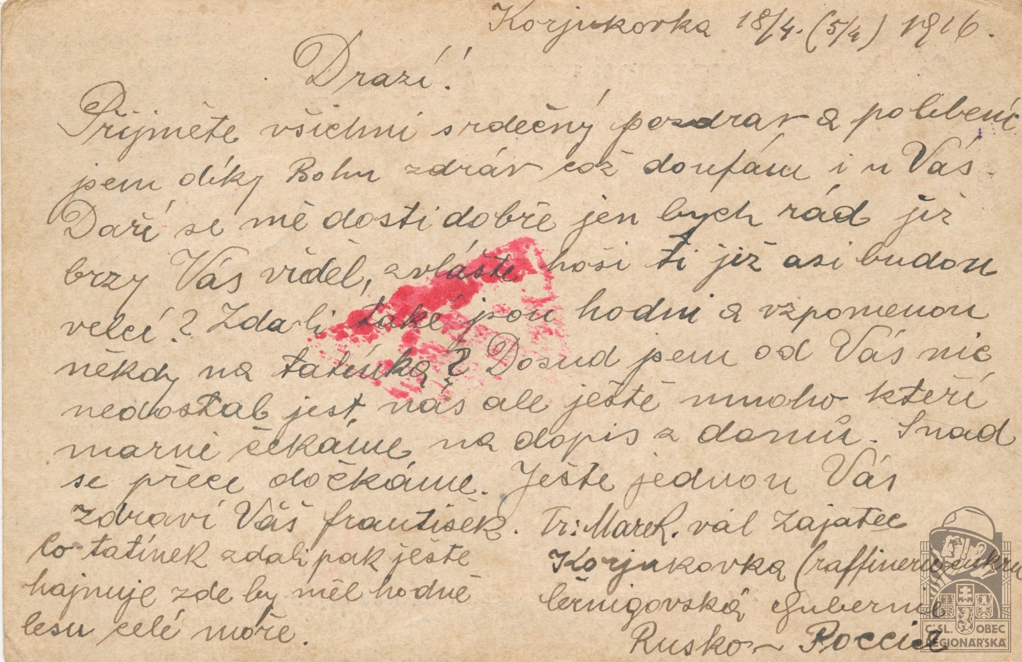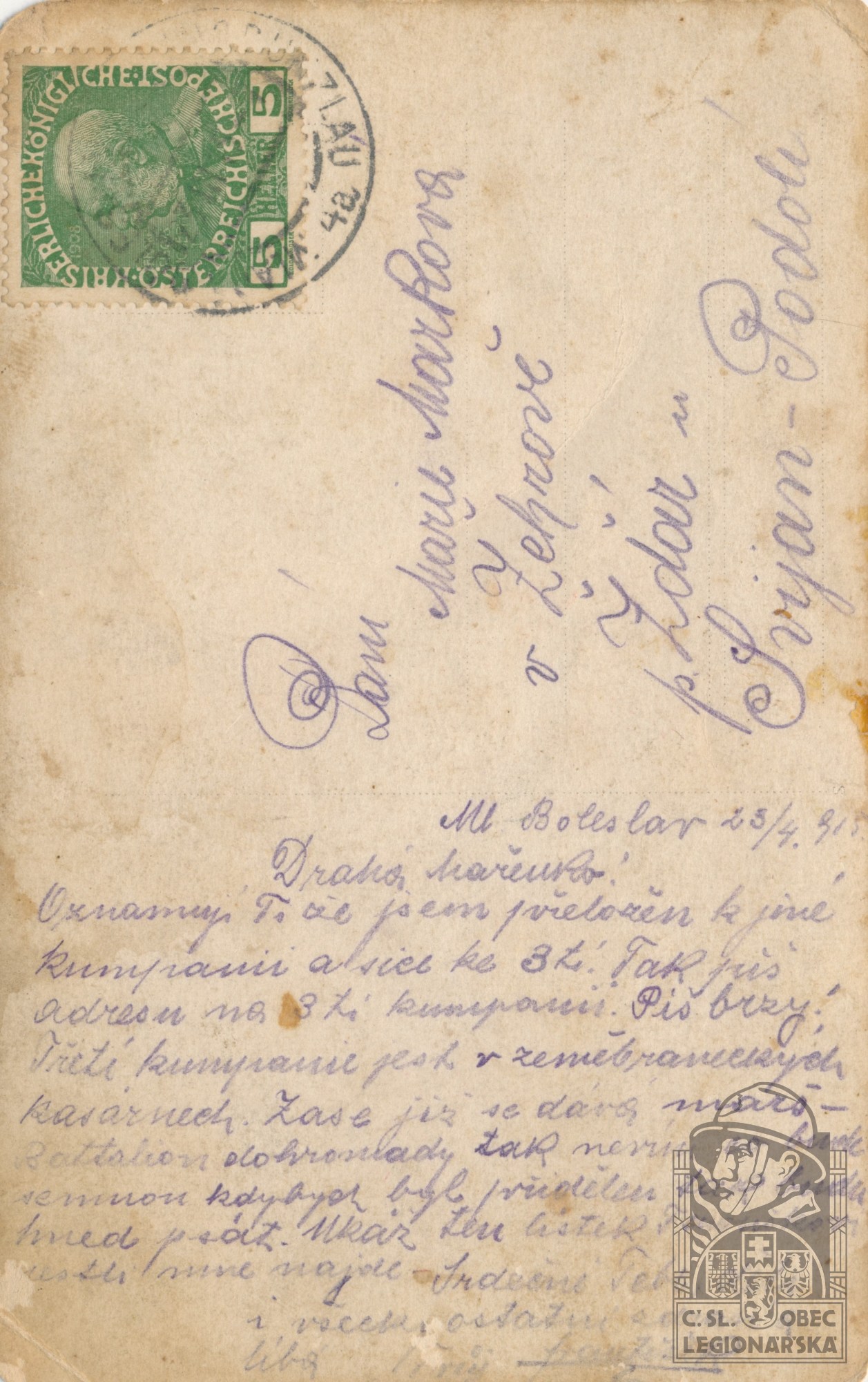Jednotka v době zařazení:zál.pr. ( Čs. legie v Rusku )