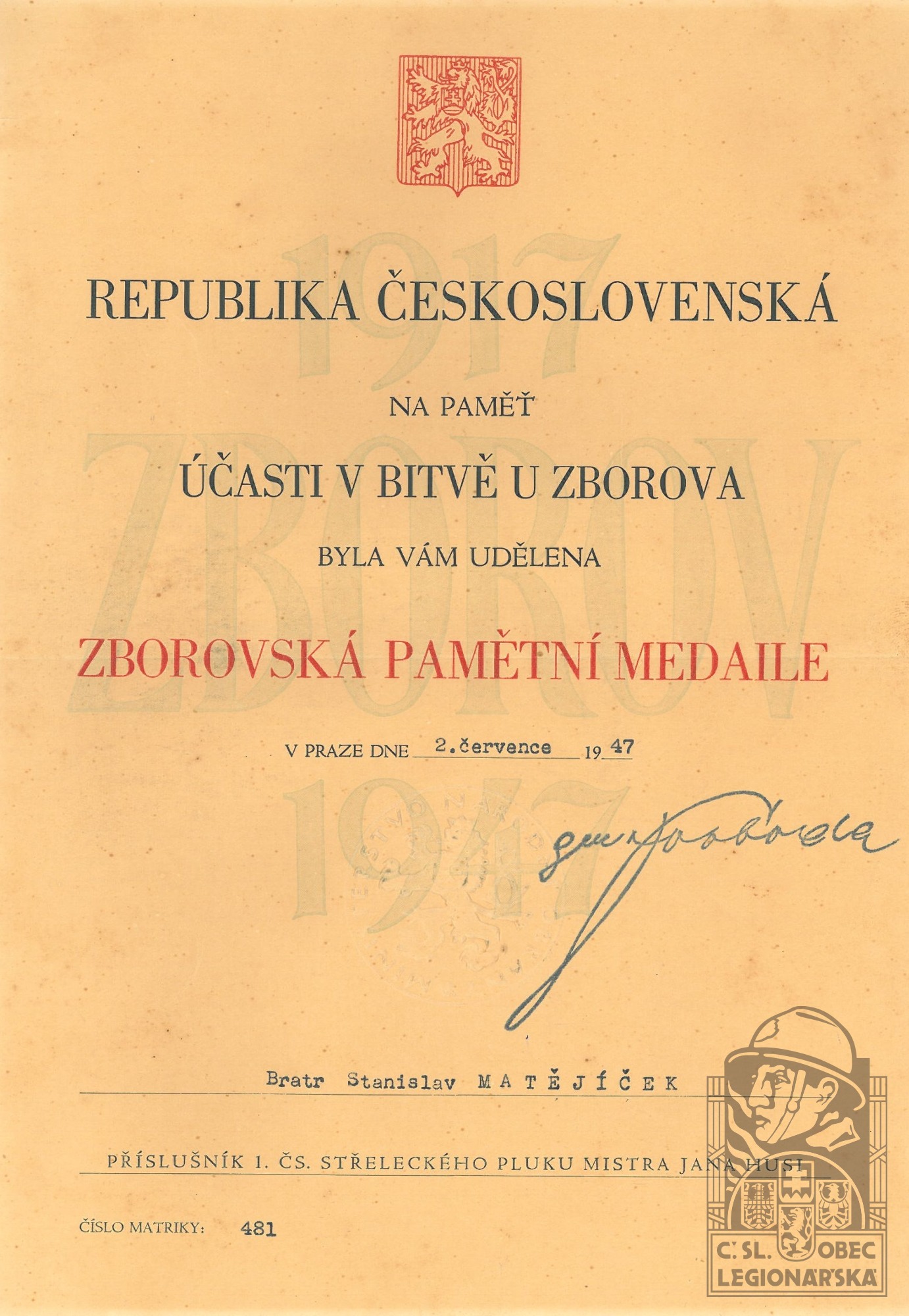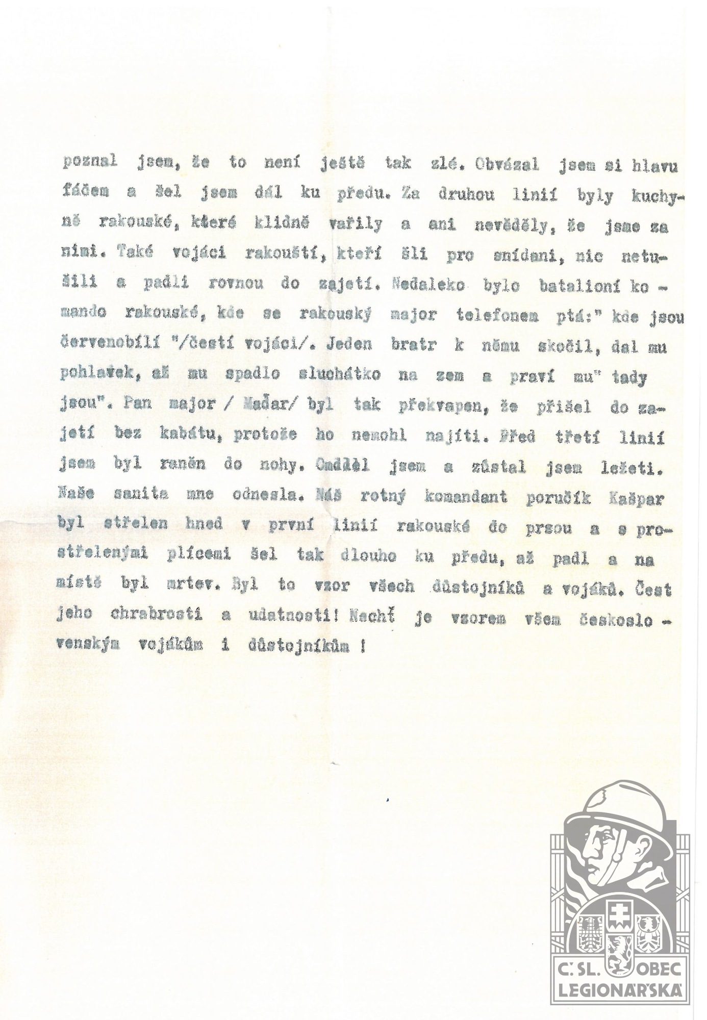 dokumenty spojené s osobou legionáře