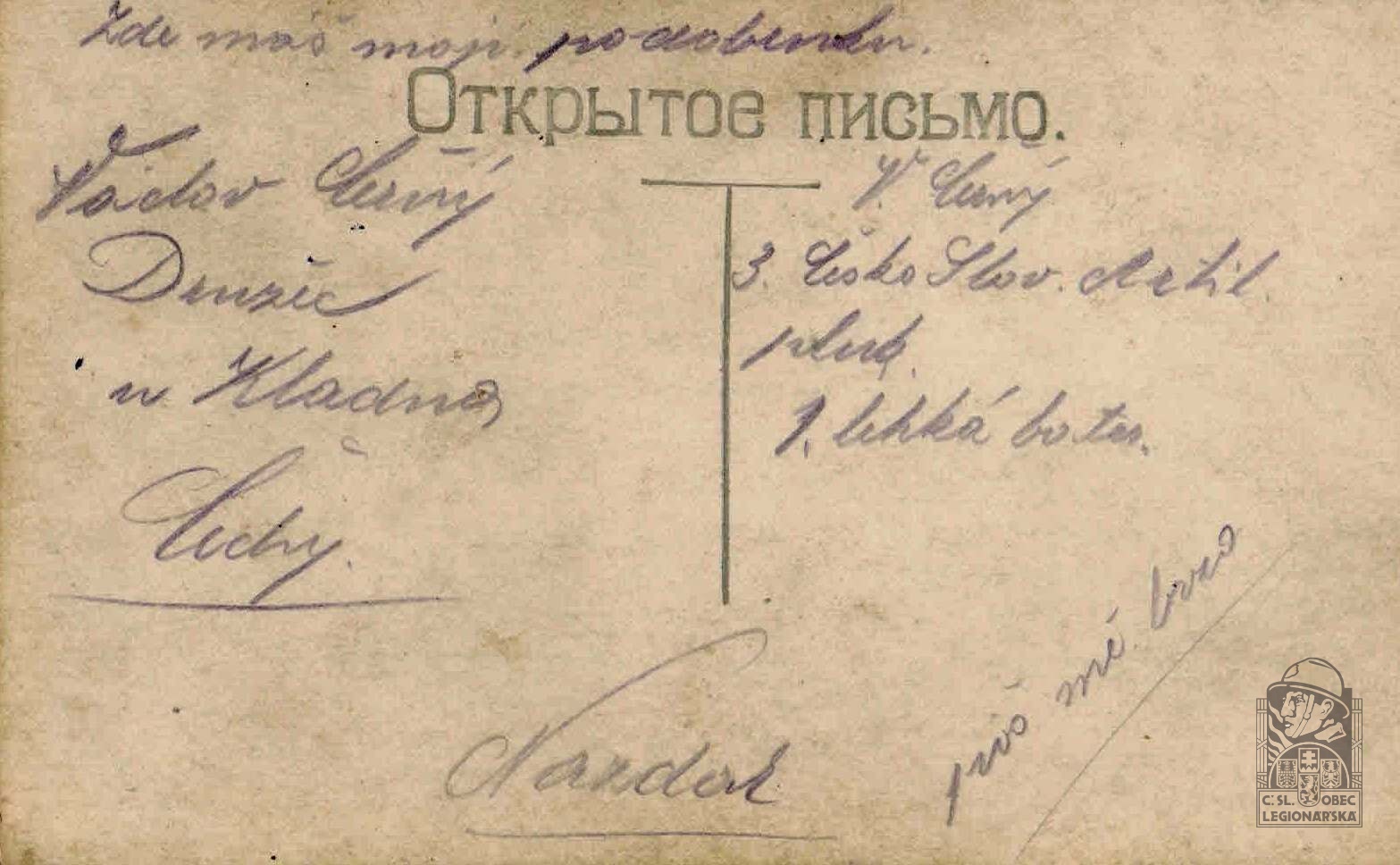 Jednotka v době zařazení:3.leh.děl.pl. ( Čs. legie v Rusku )