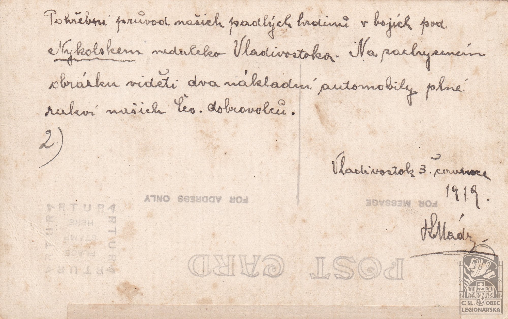Jednotka v době zařazení:6.stř.pl. ( Čs. legie v Rusku )