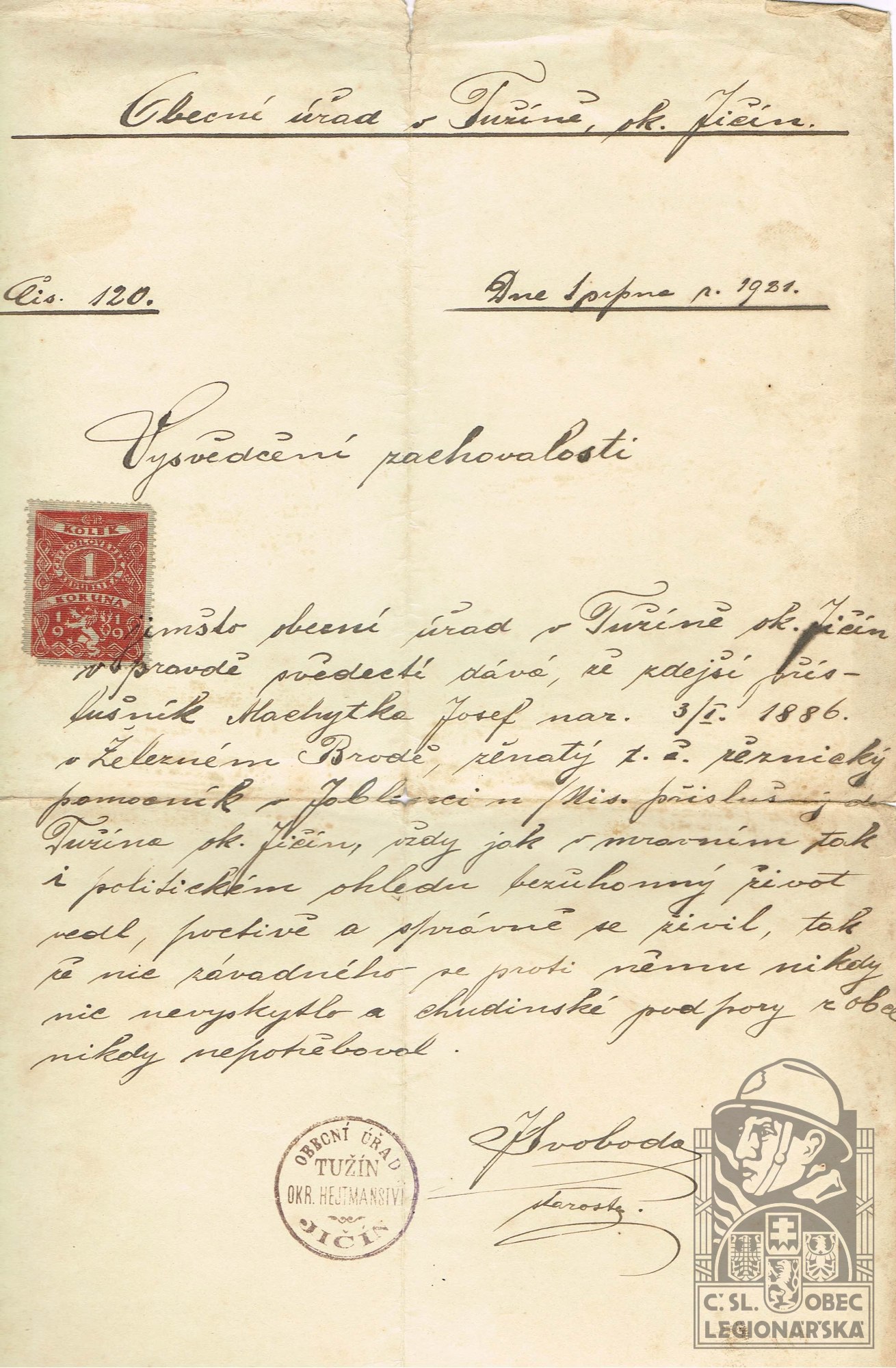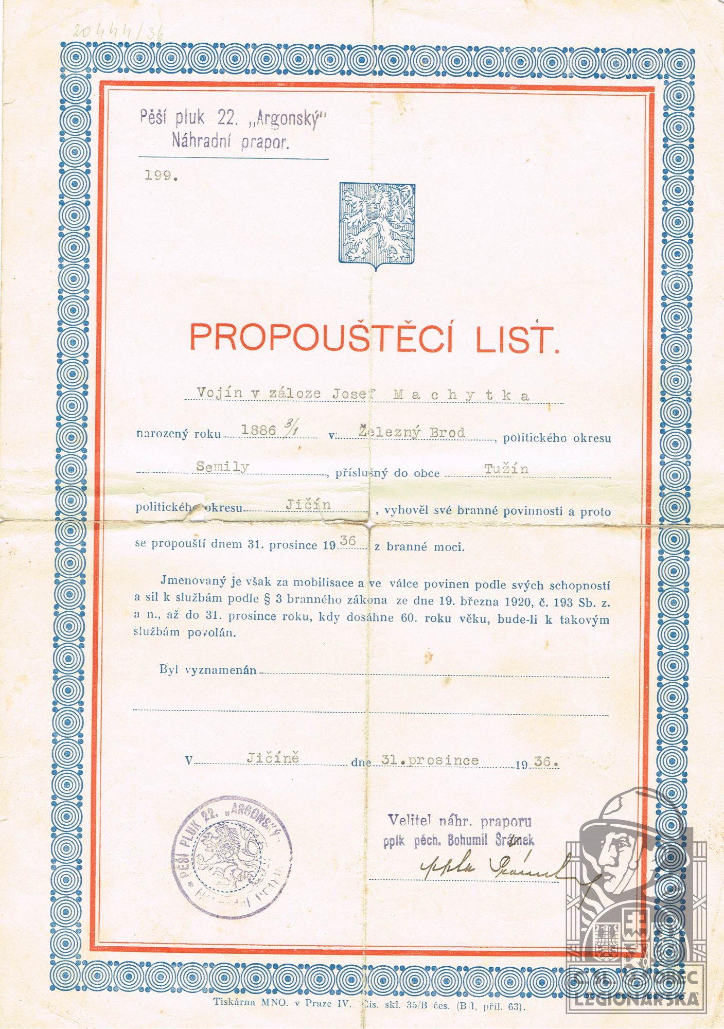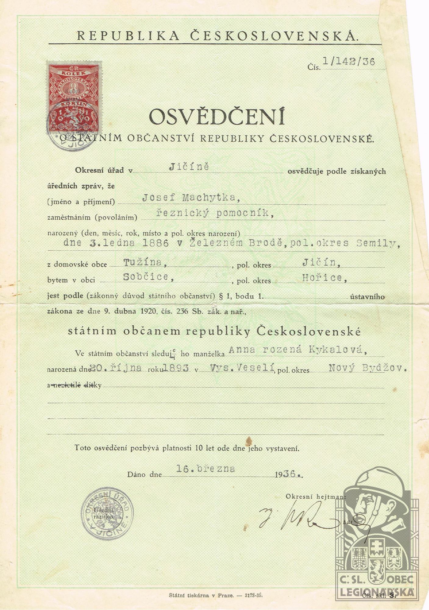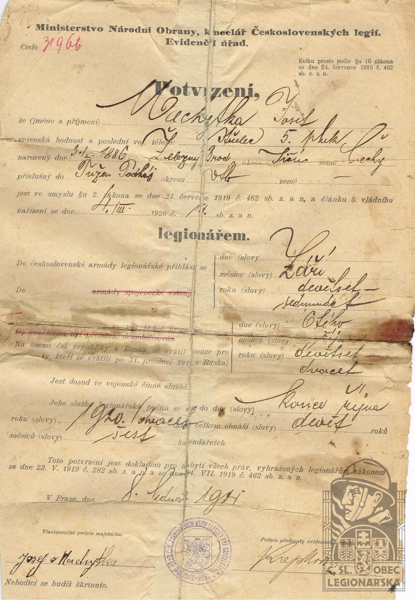 Zdroj informací: legionářský poslužný spis osobní karta legionáře