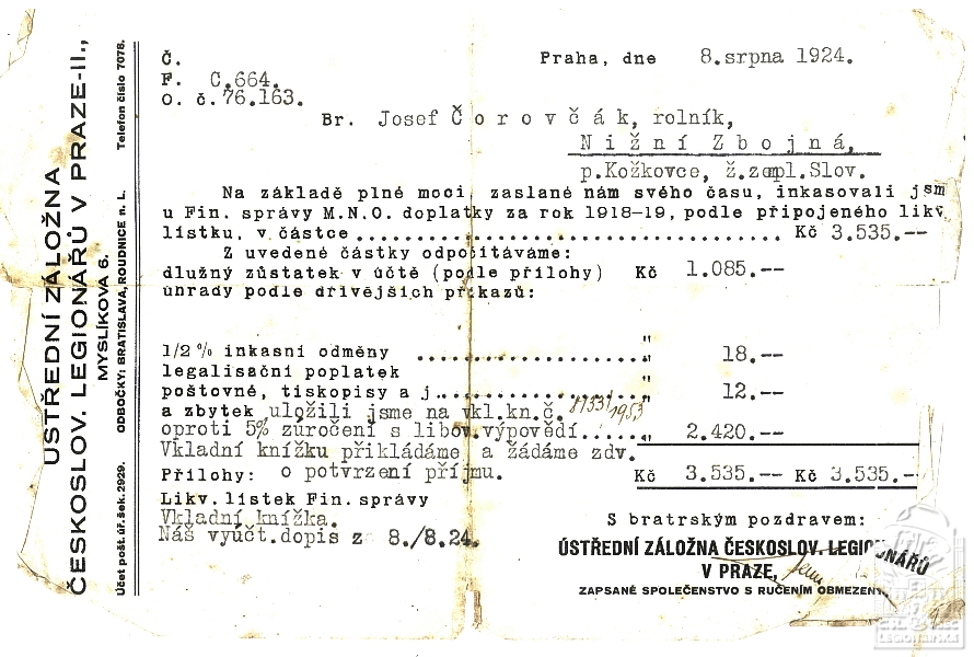 dokumenty spojené s osobou legionáře