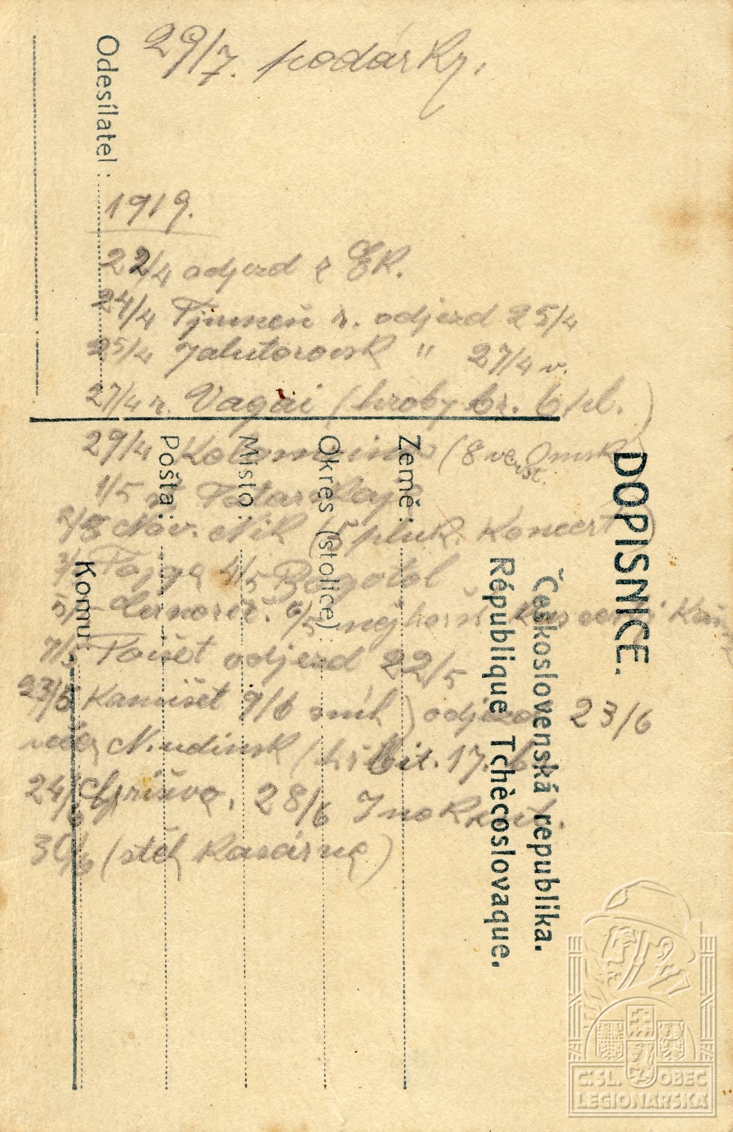 Jednotka v době zařazení:zál.pr. ( Čs. legie v Rusku )