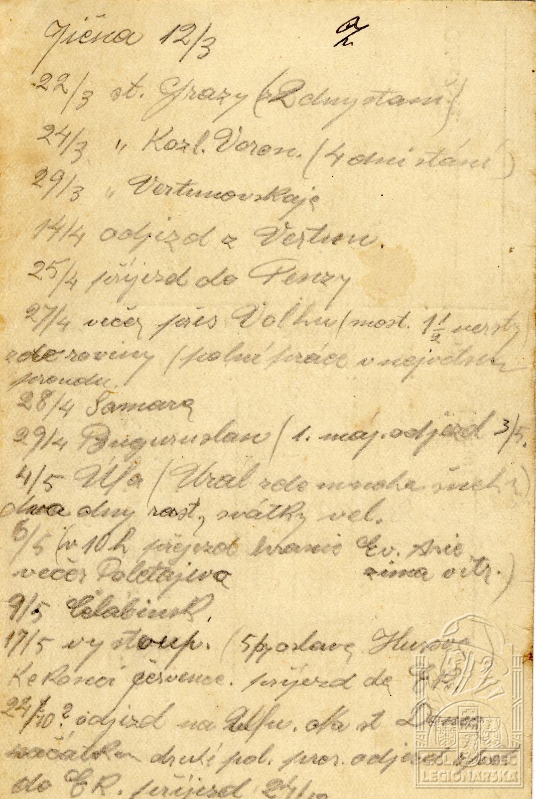 Zdroj informací: legionářský poslužný spis osobní karta legionáře