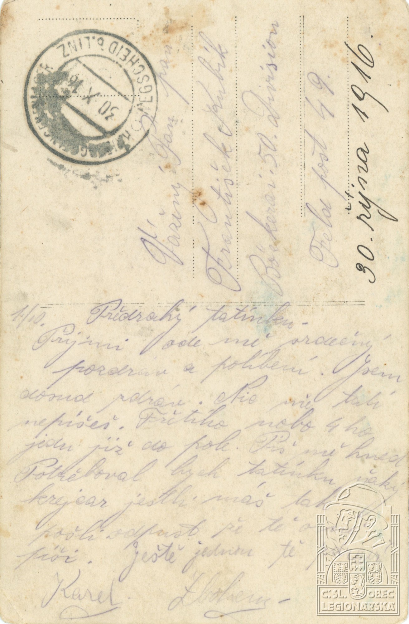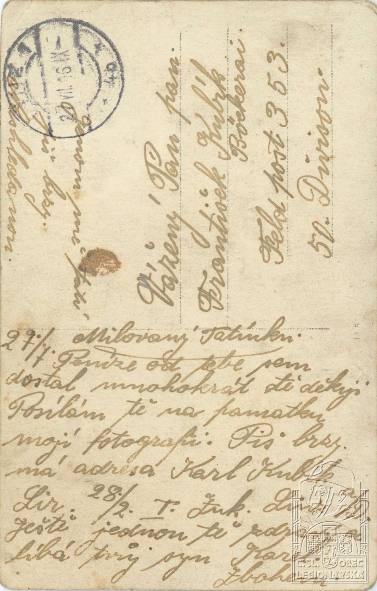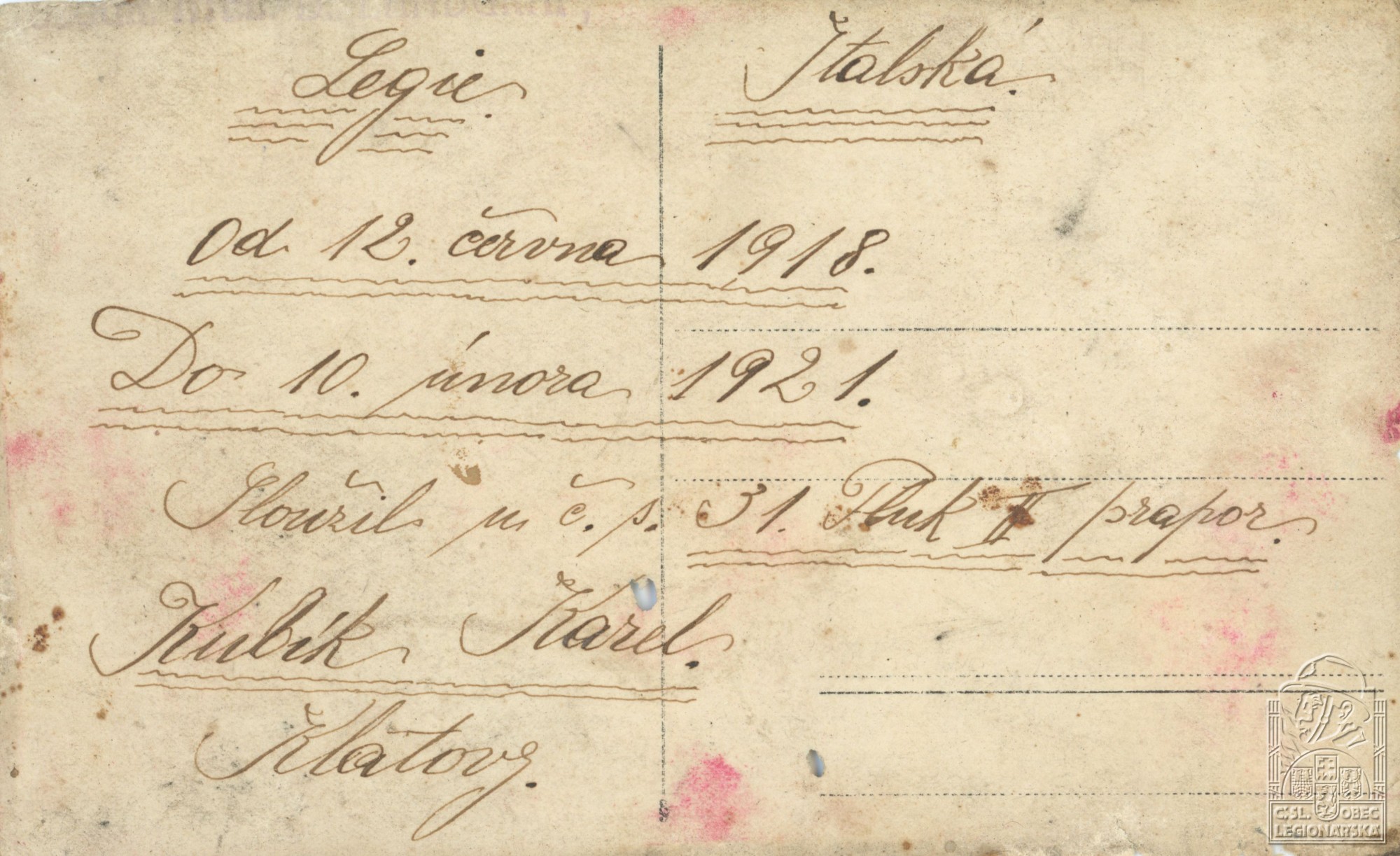 Jednotka v době zařazení:31.p.pl. ( Čs. legie v Itálii )