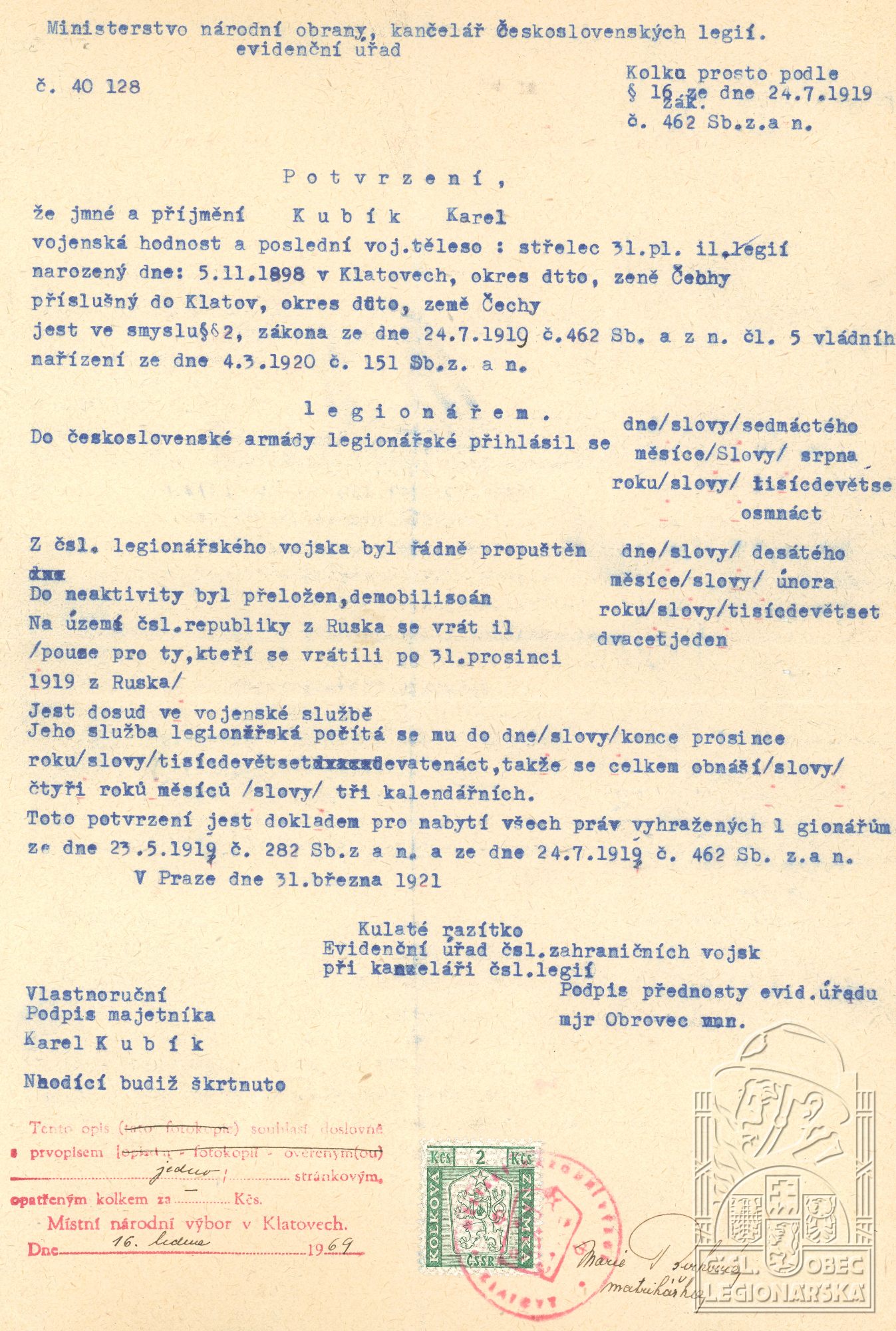 Zdroj informací: legionářský poslužný spis osobní karta legionáře