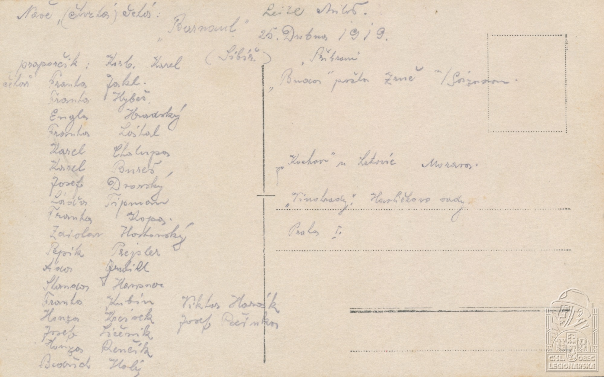 Jednotka v době zařazení:5.stř.pl. ( Čs. legie v Rusku )