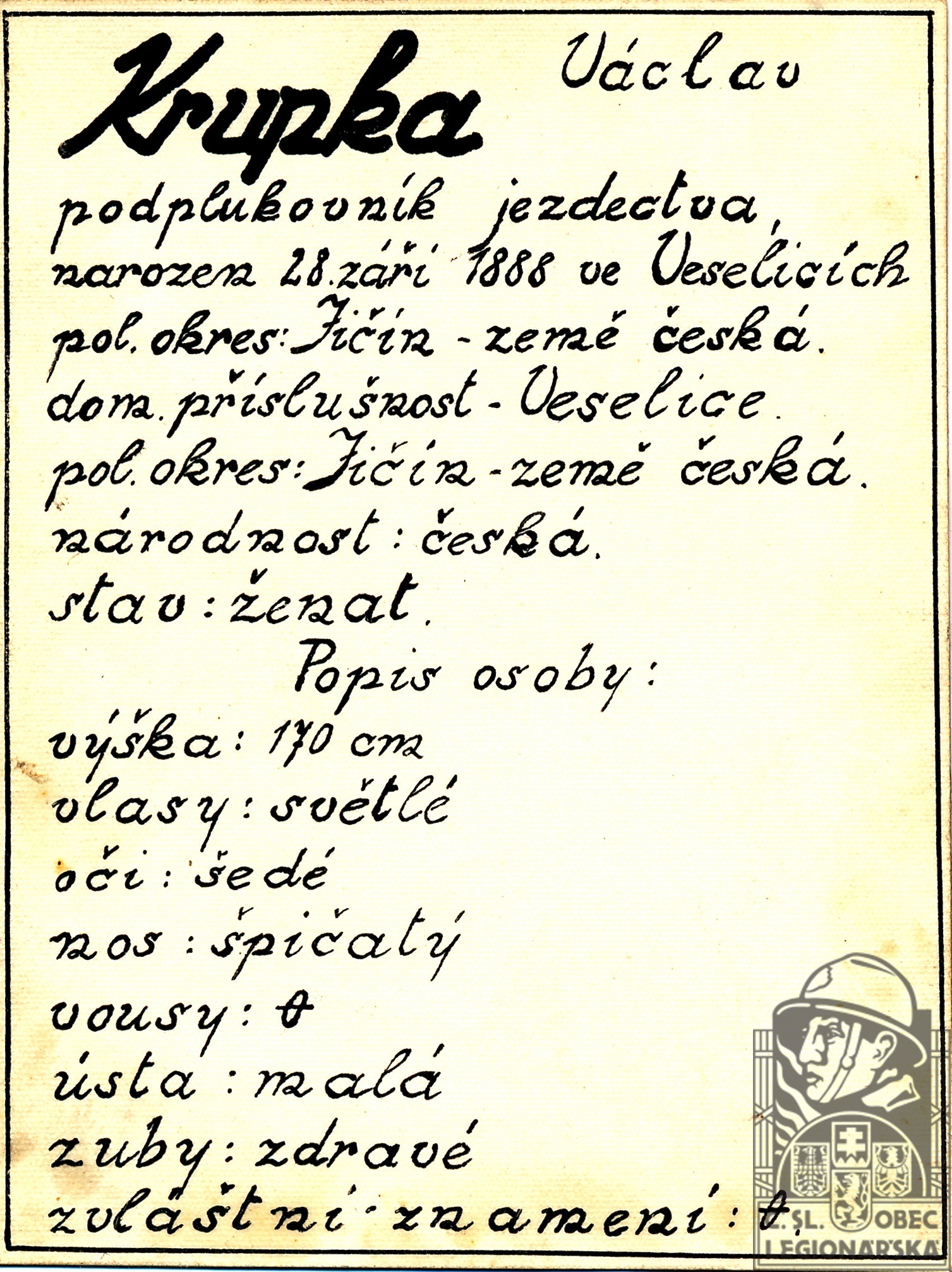 dokumenty spojené s osobou legionáře