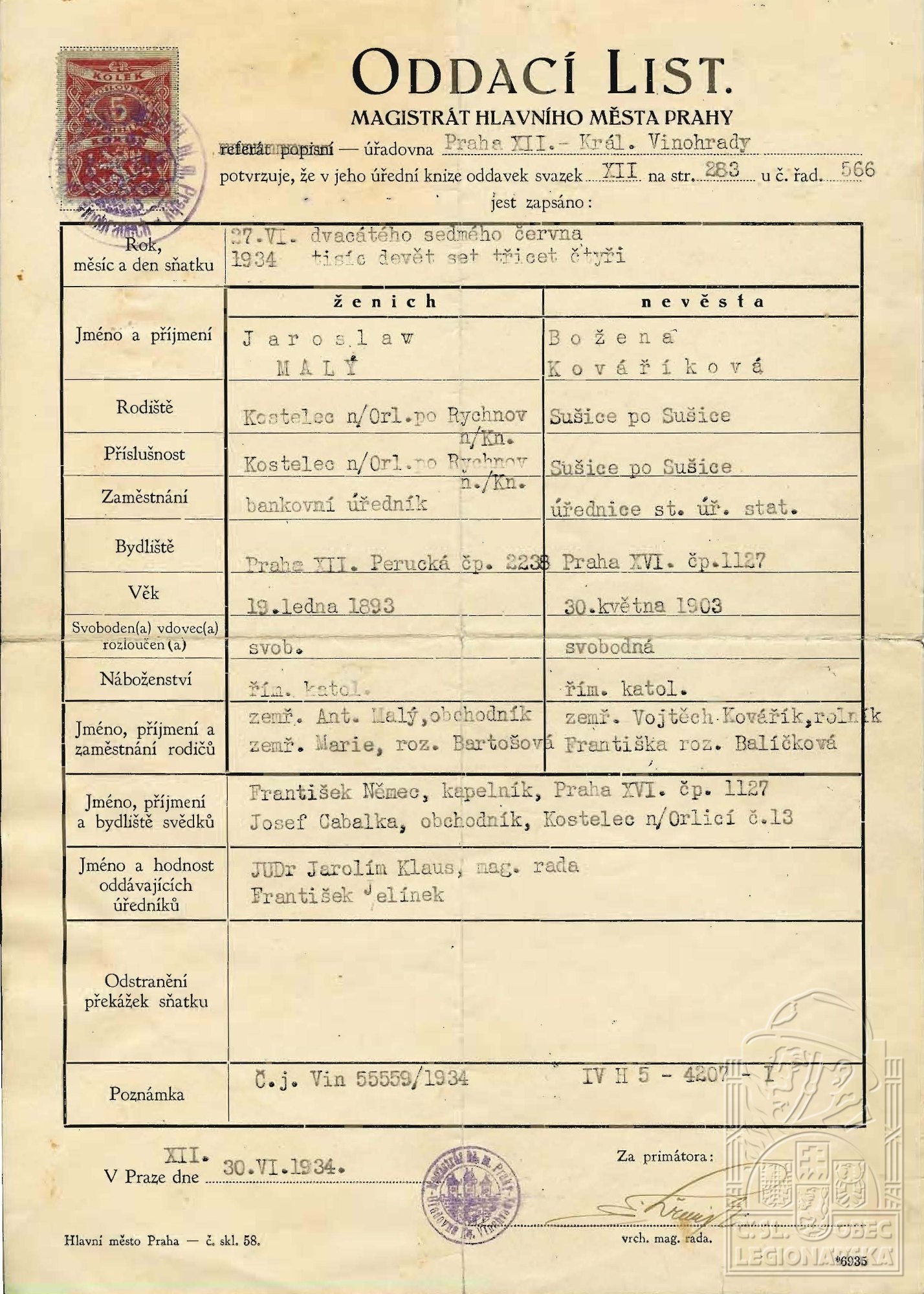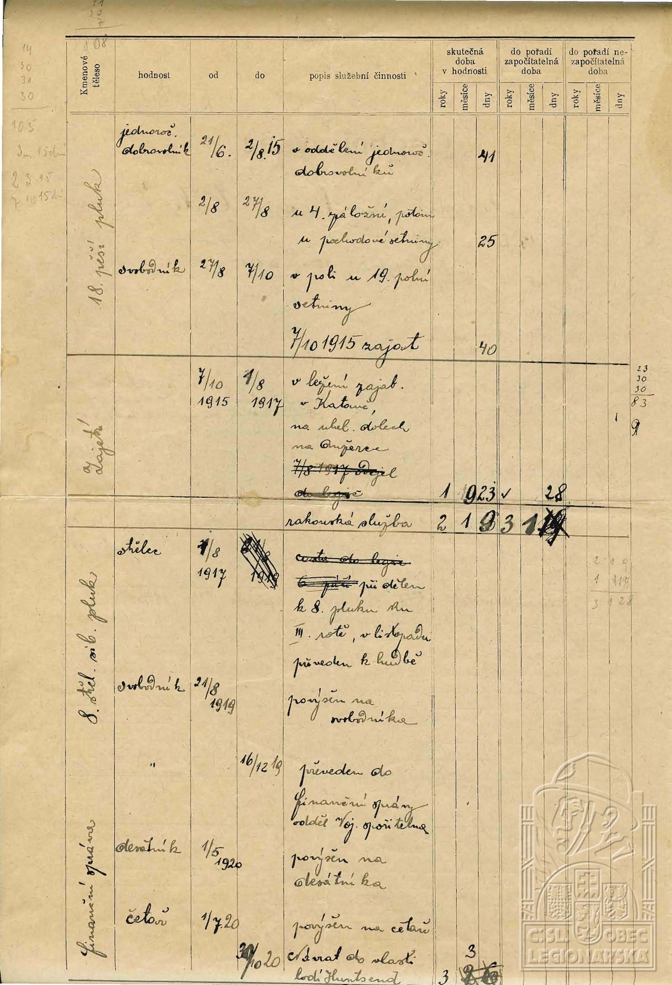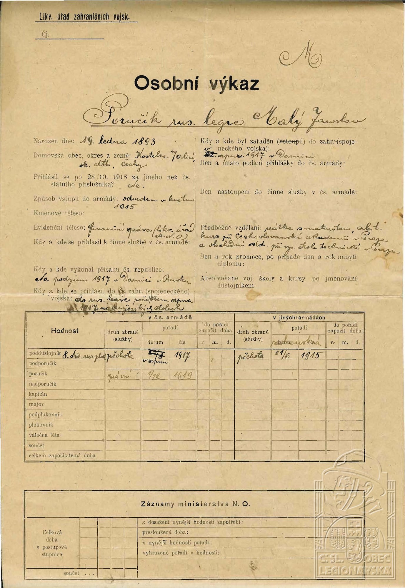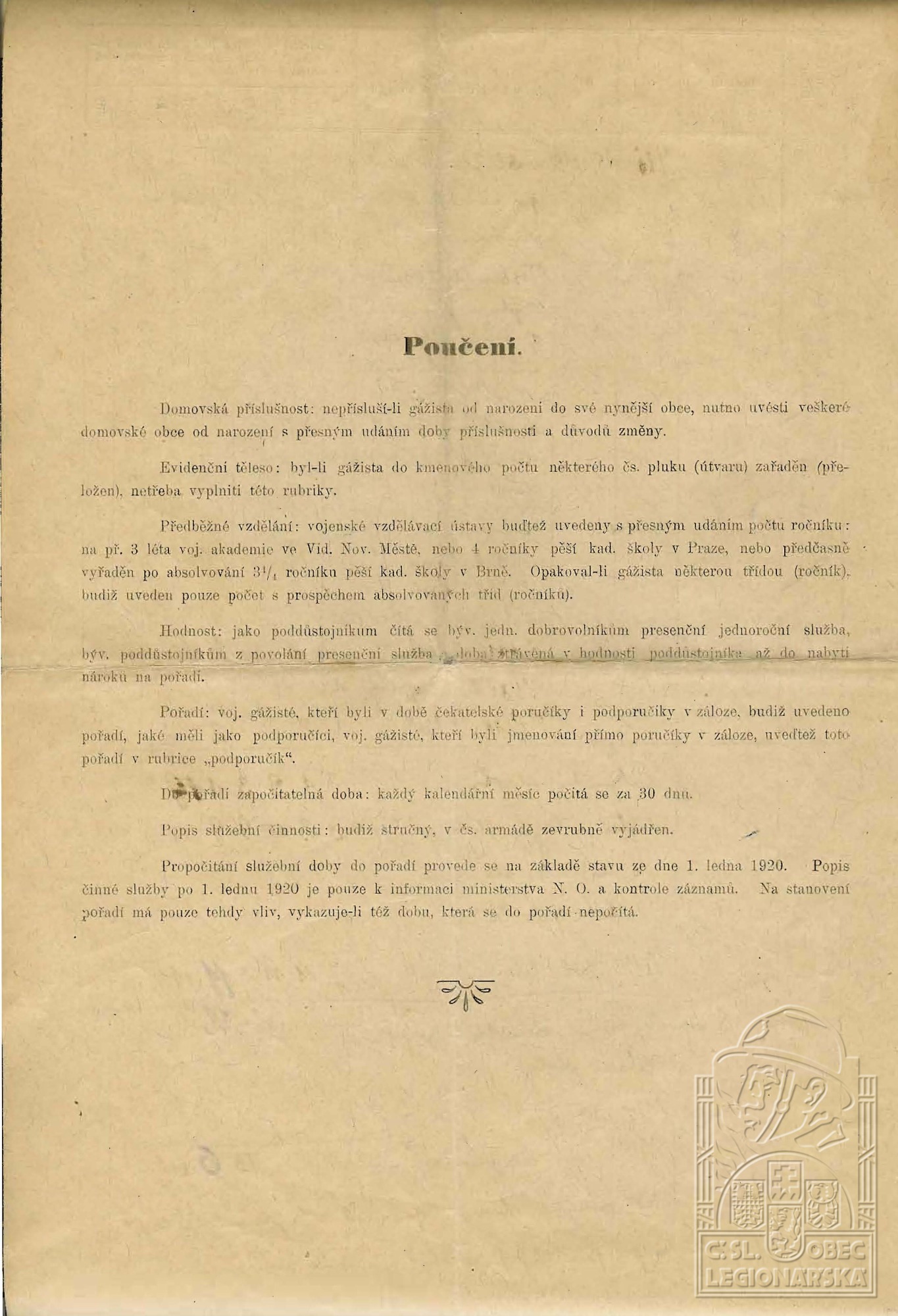 Zdroj informací: legionářský poslužný spis osobní karta legionáře