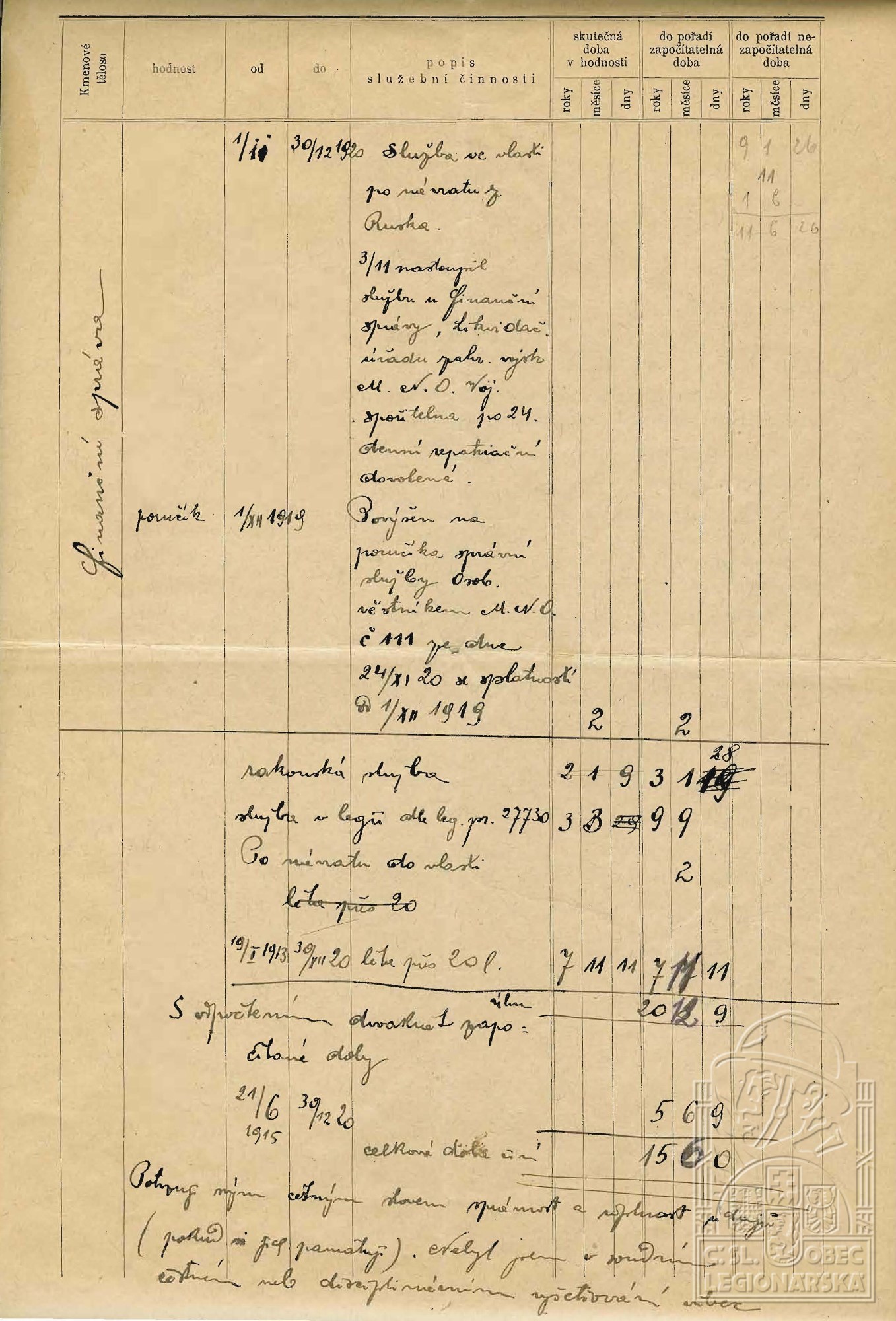 Jednotka v době zařazení:fin.správa ( Čs. legie v Rusku )