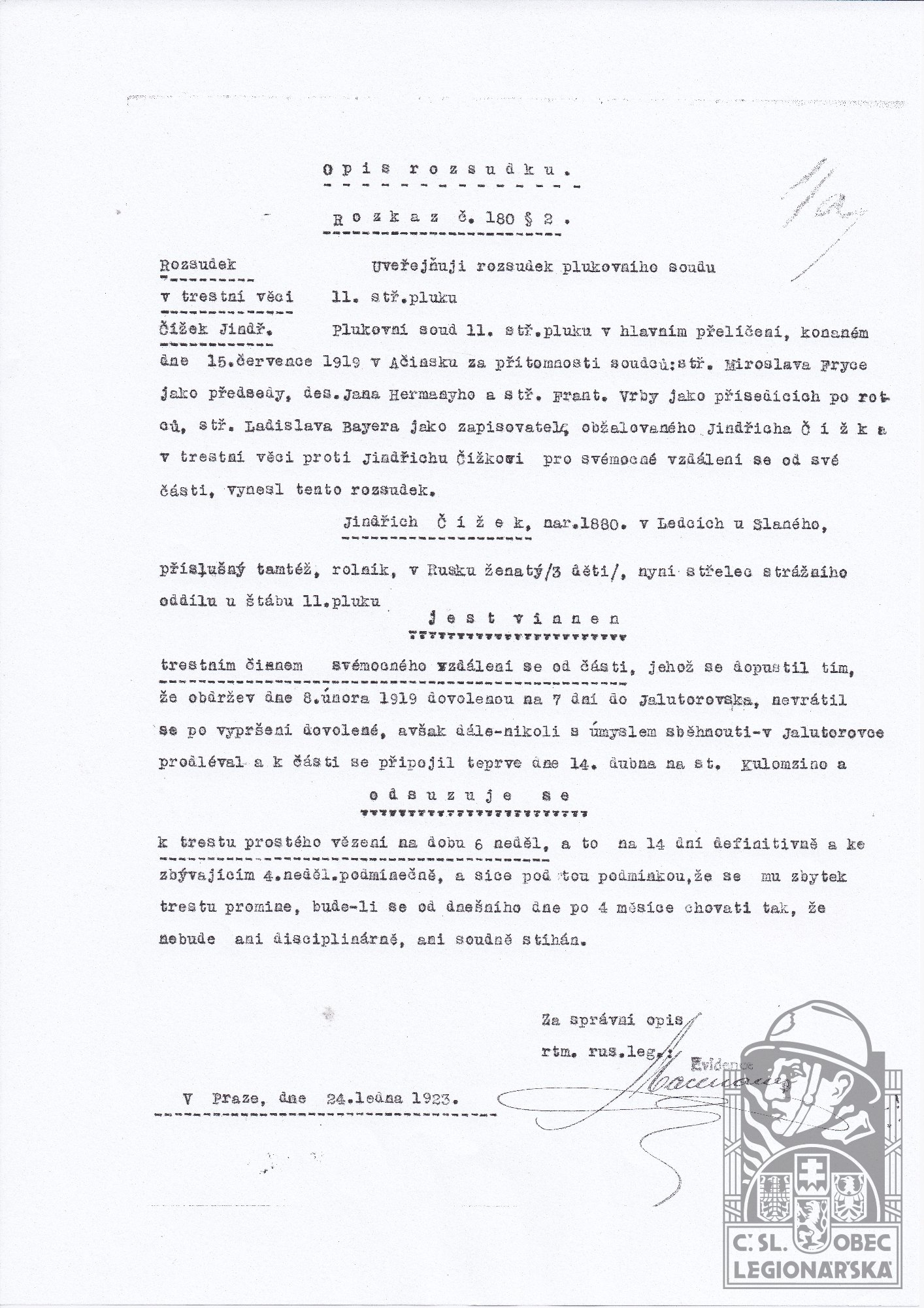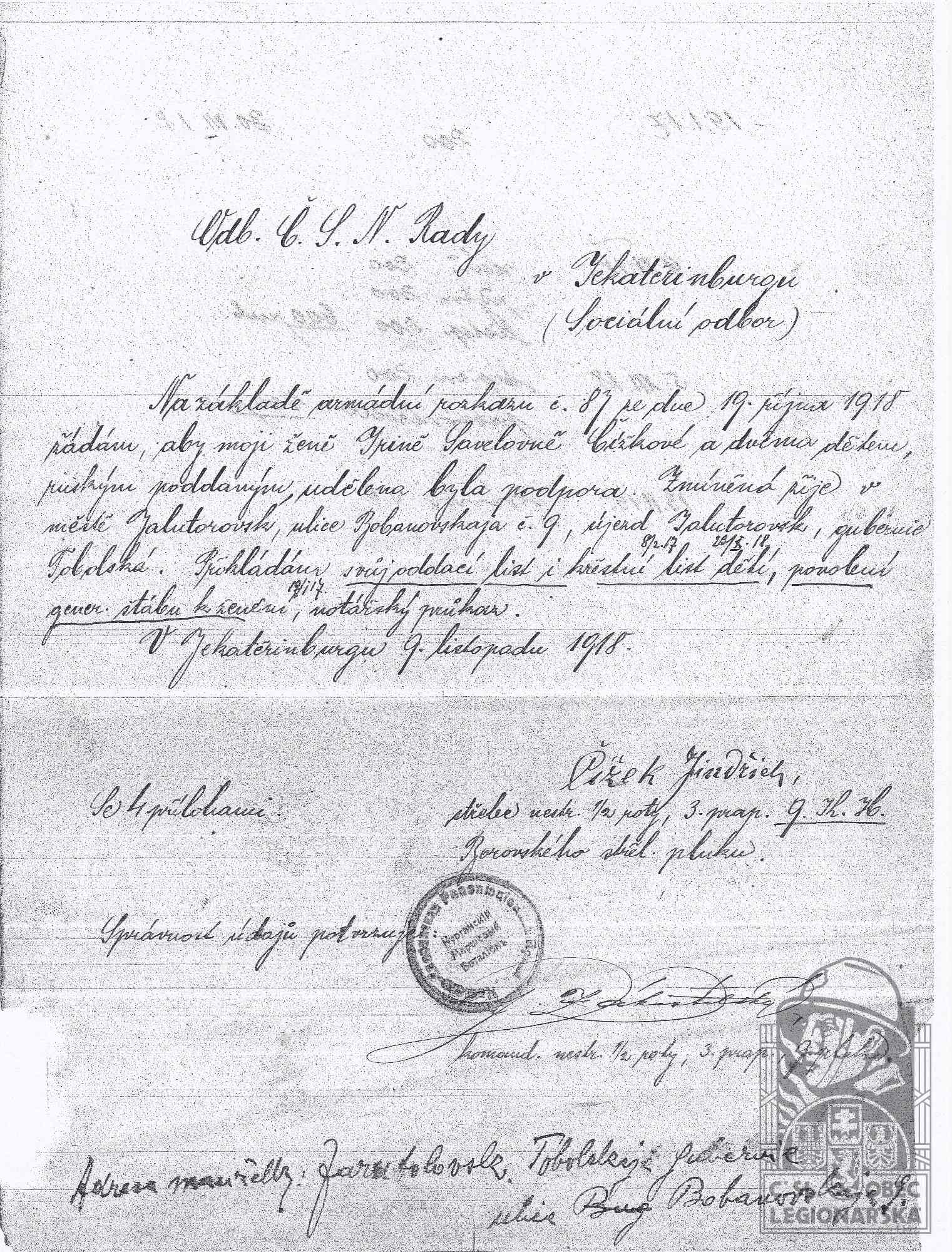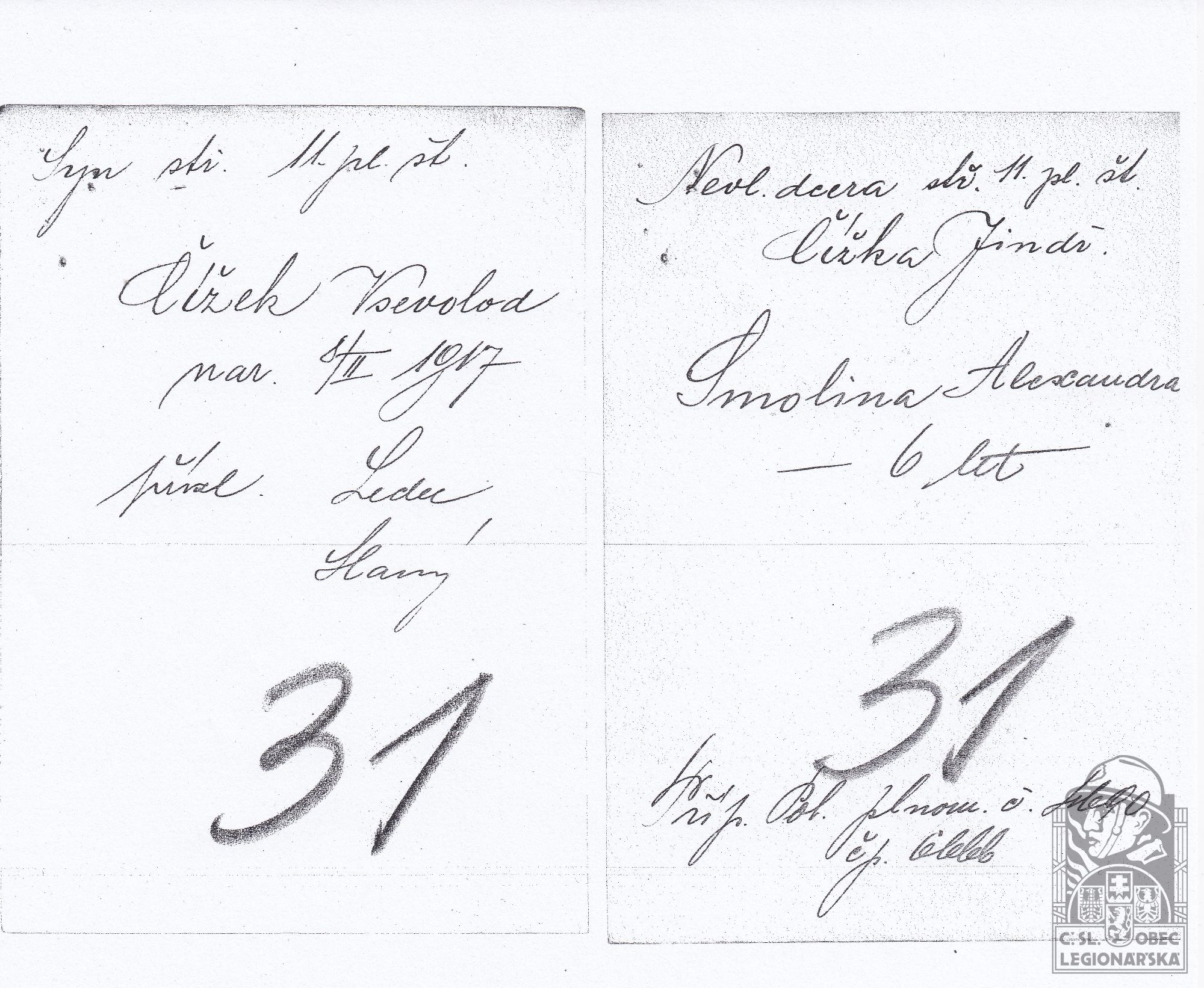 Jednotka v době zařazení:11.stř.pl. ( Čs. legie v Rusku )