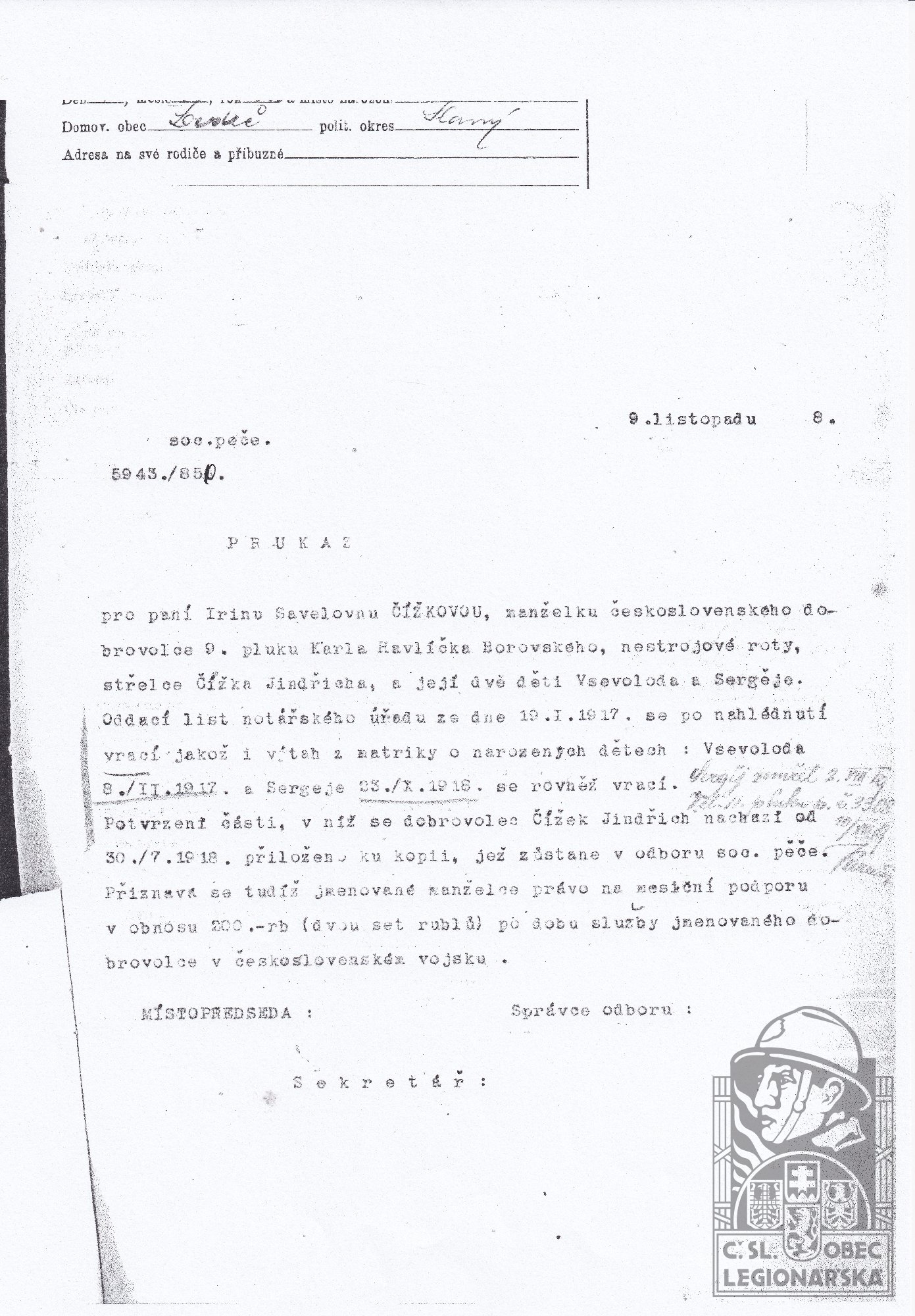 dokumenty spojené s osobou legionáře