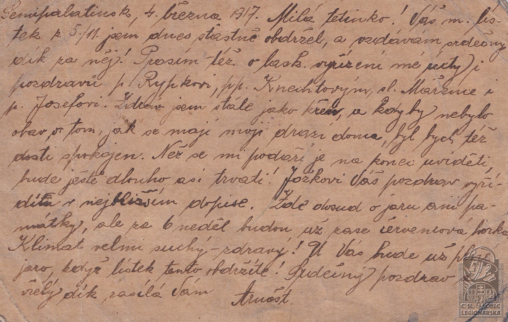 Datum zařazení do legií:31.8.1917