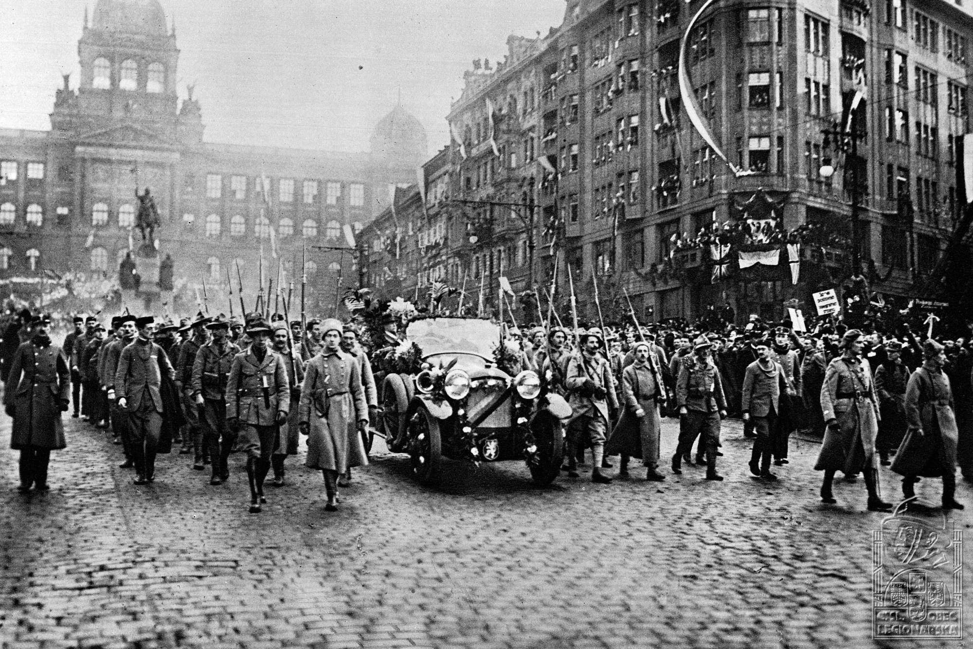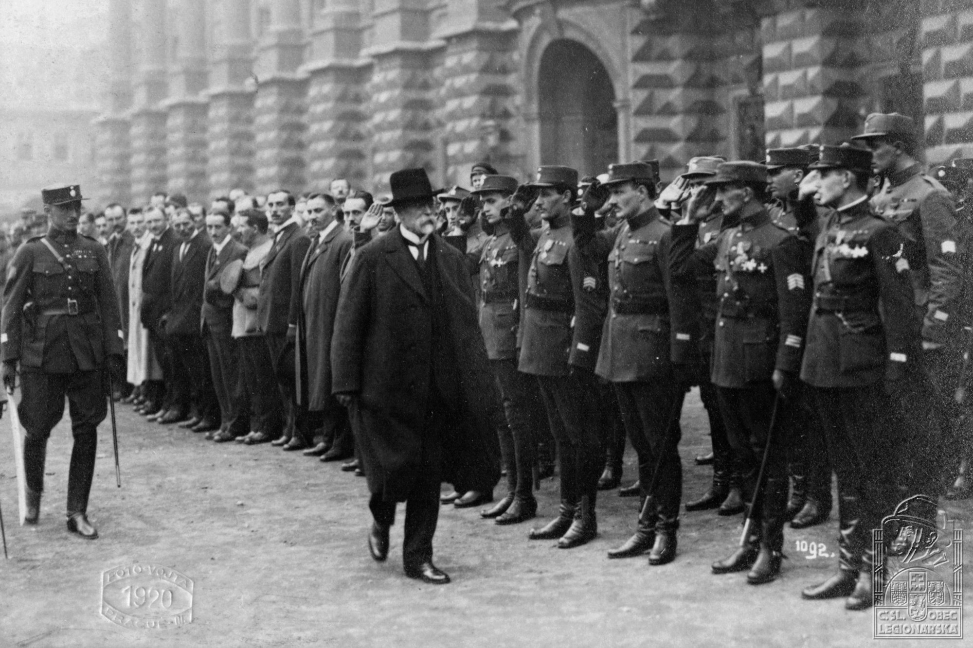 T.G.M. přehlíží pražskou posádku, 1925, líc (69503.024)