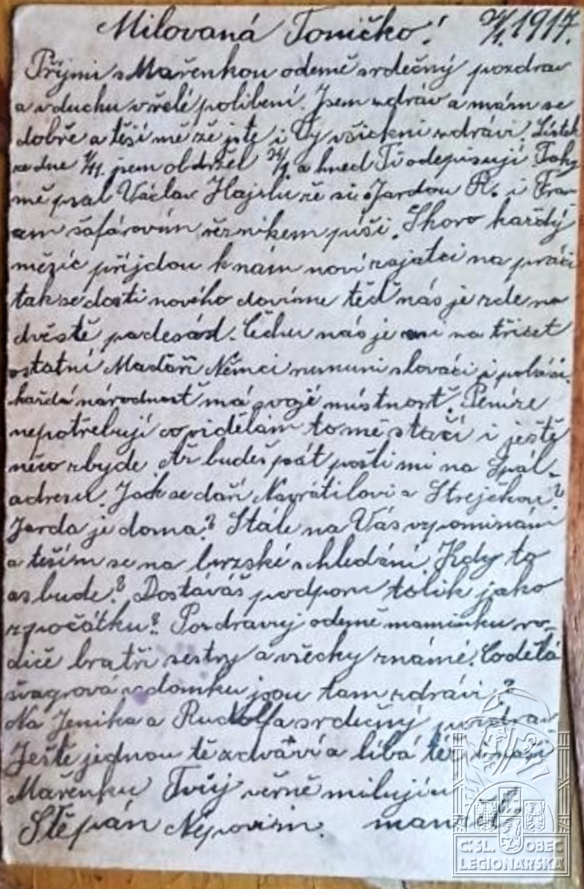 Jednotka v době zařazení:8.stř.pl. ( Čs. legie v Rusku )