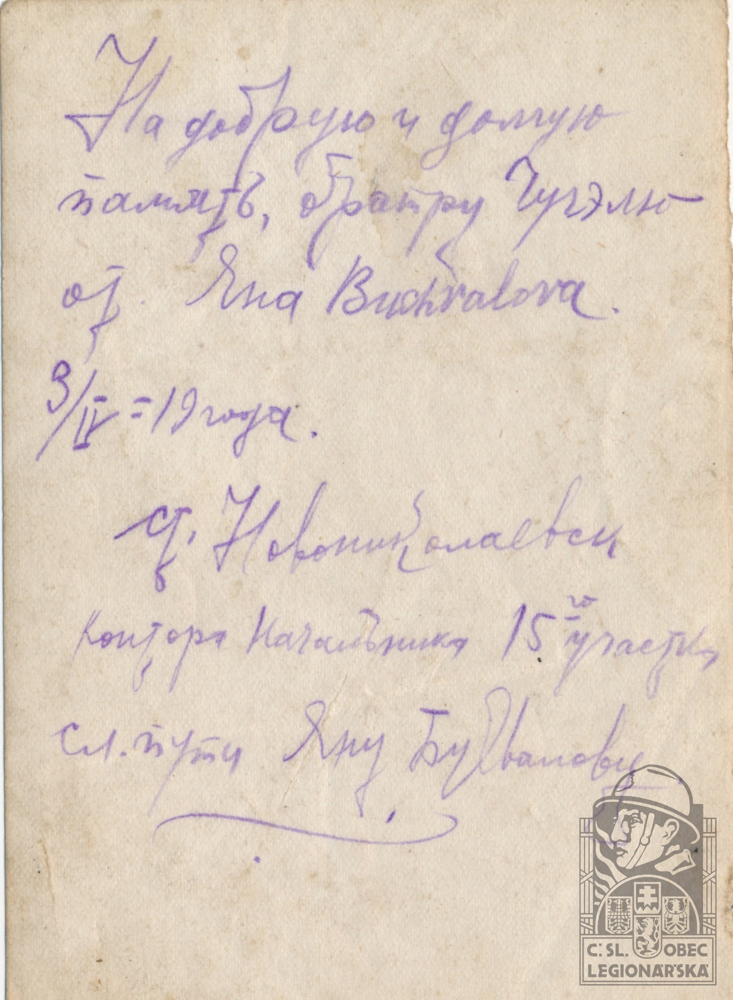 Jednotka v době zařazení:8.stř.pl. ( Čs. legie v Rusku )