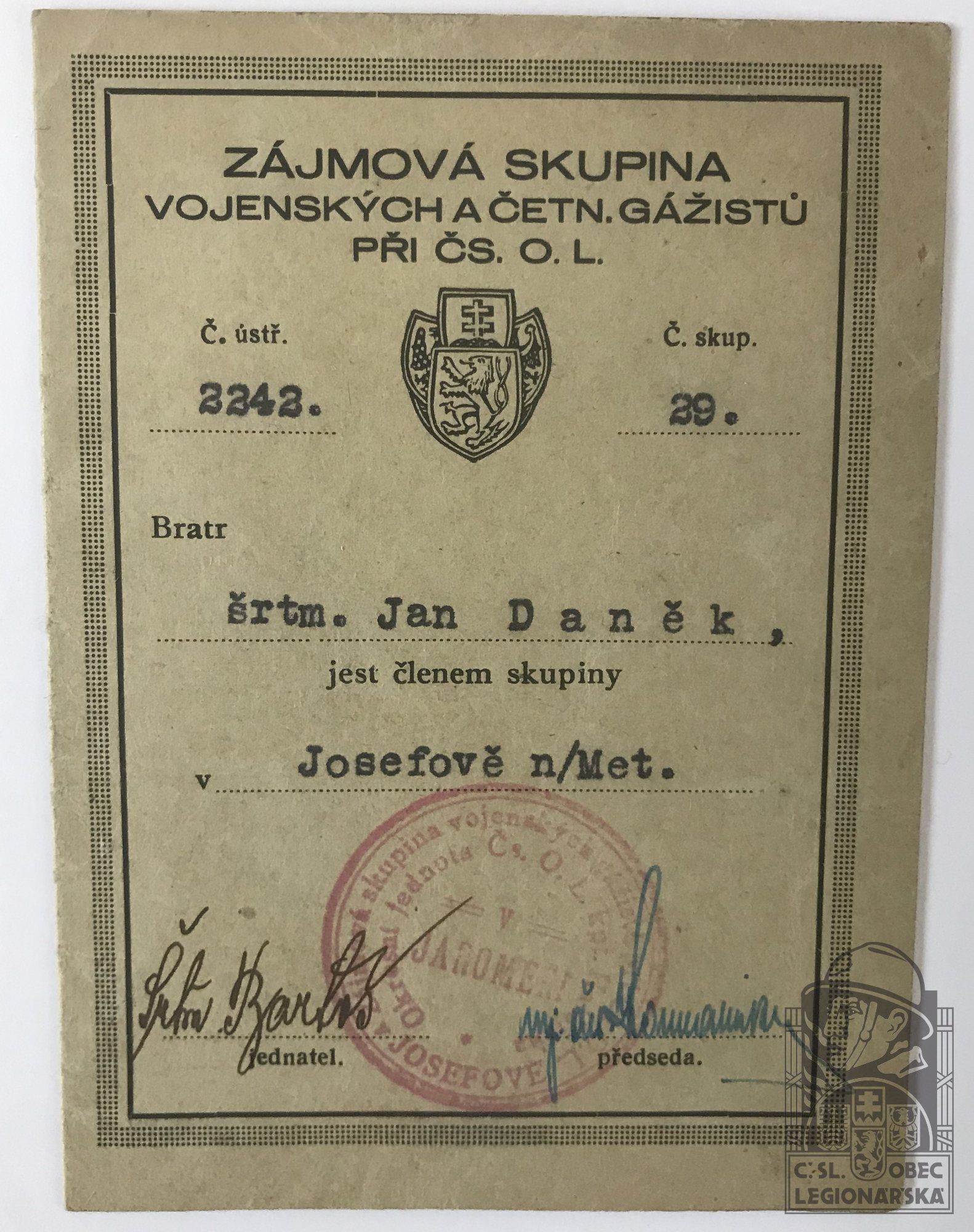 Zdroj informací: legionářský poslužný spis osobní karta legionáře Vojáci Skutečska 1914-1920 Borek, Hněvětice, Lažany, Lešany, Lhota u Skutče, Přibylov, Radčice, Skuteč, Skutíčko, Štěpánov, Zbožnov, Zhoř, Žďárec u Skutče Libor Aksler, Jiří Junek. Skuteč Město Skute