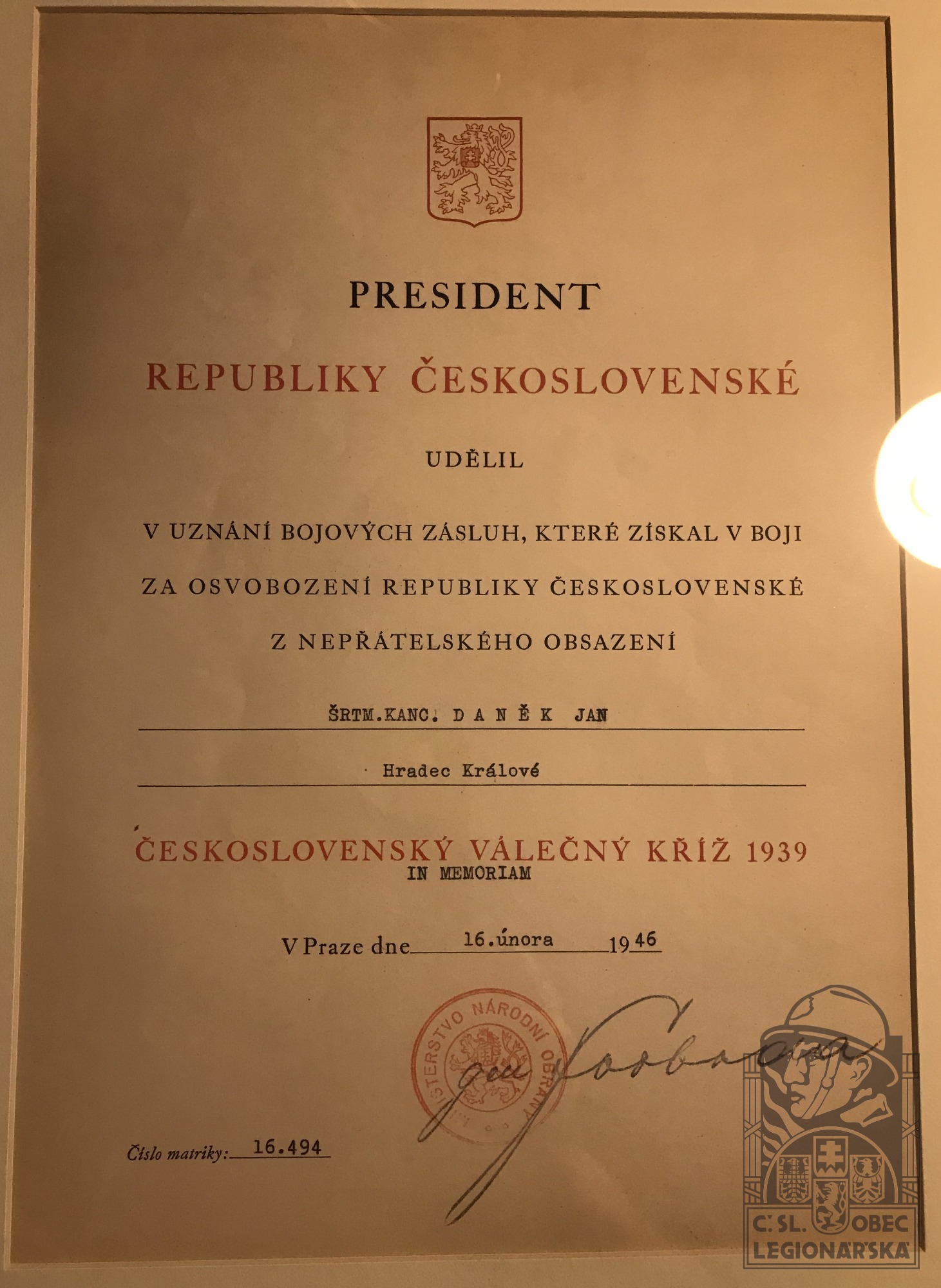 Poznámka:25. října 1946 povýšen im memoriam na nadporučíka; 4. baterie