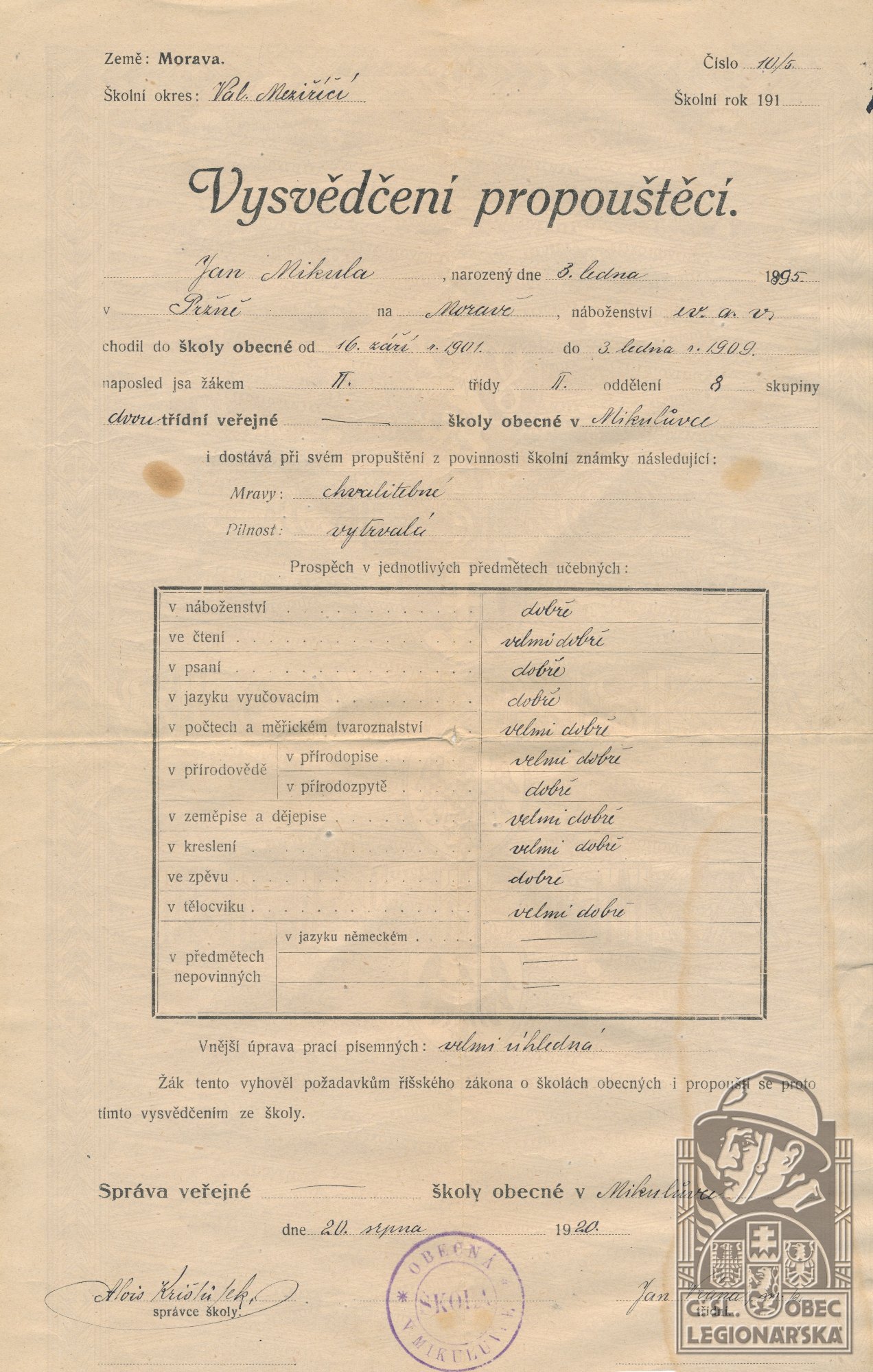 Konec v legiích:2.2..1920 ( Demobilizován )