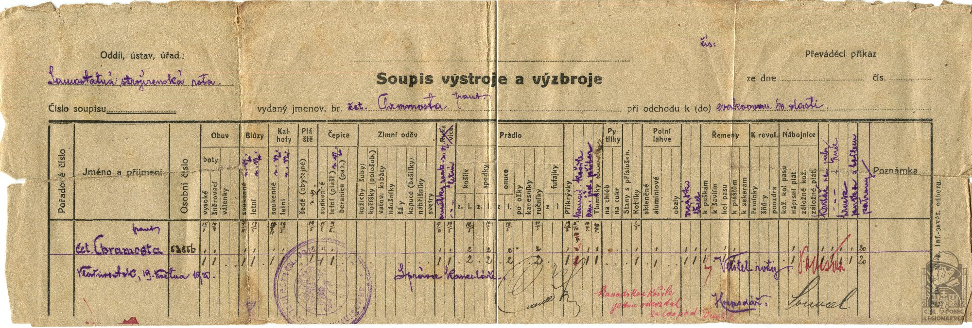 dokumenty spojené s osobou legionáře