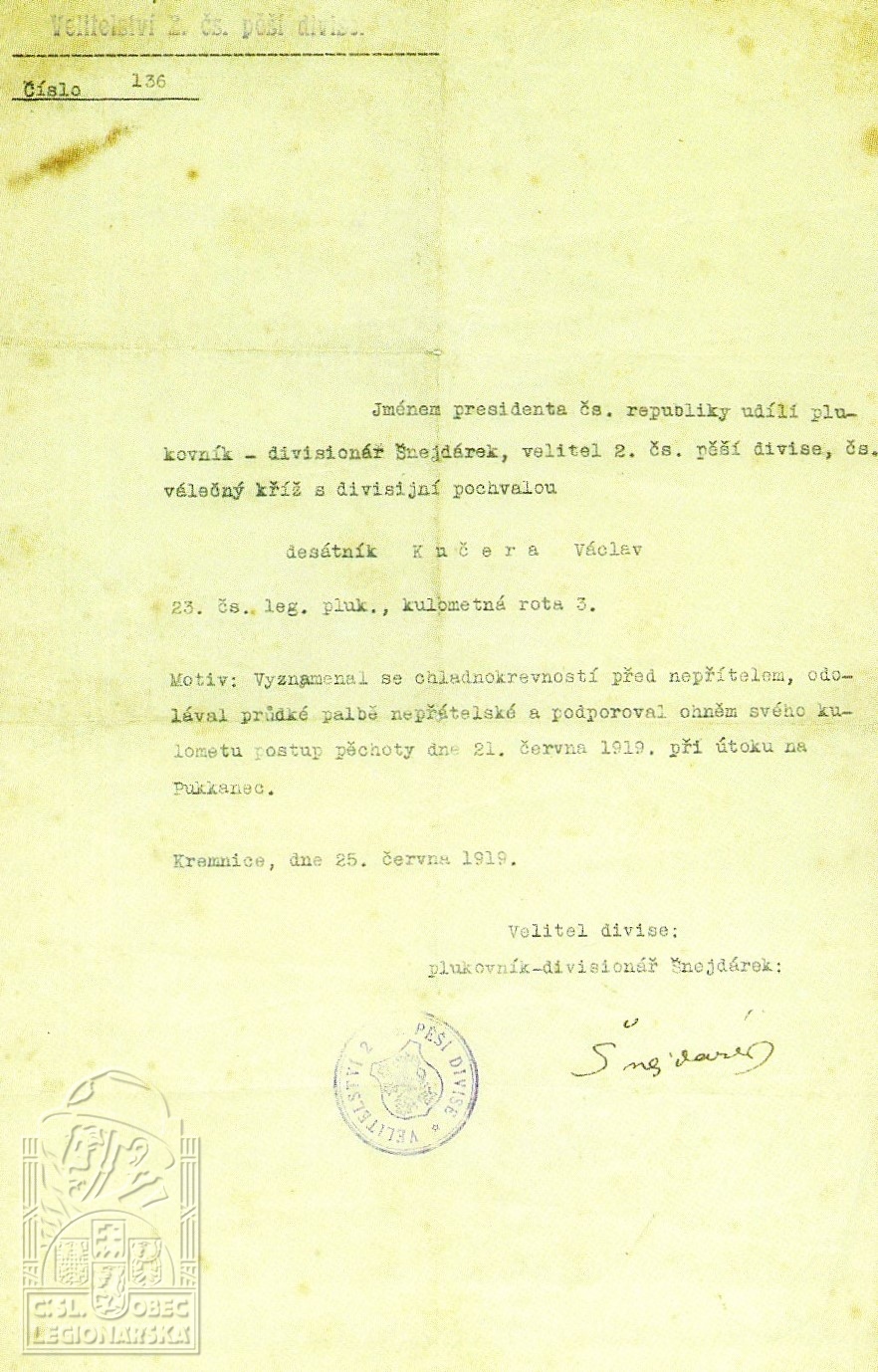 Jednotka v době zařazení:23.p.pl. ( Čs. legie v Francii )