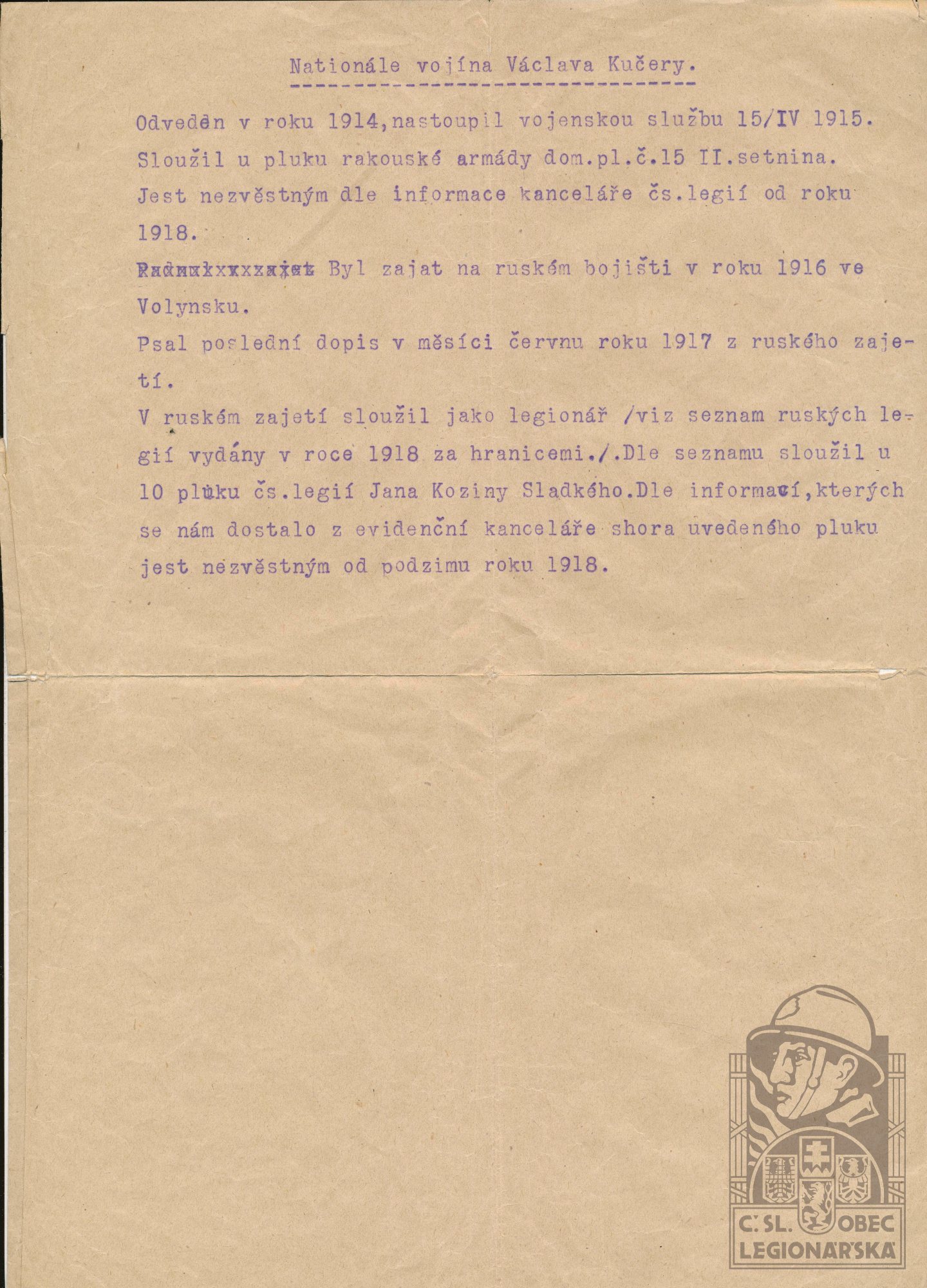 dokumenty spojené s osobou legionáře
