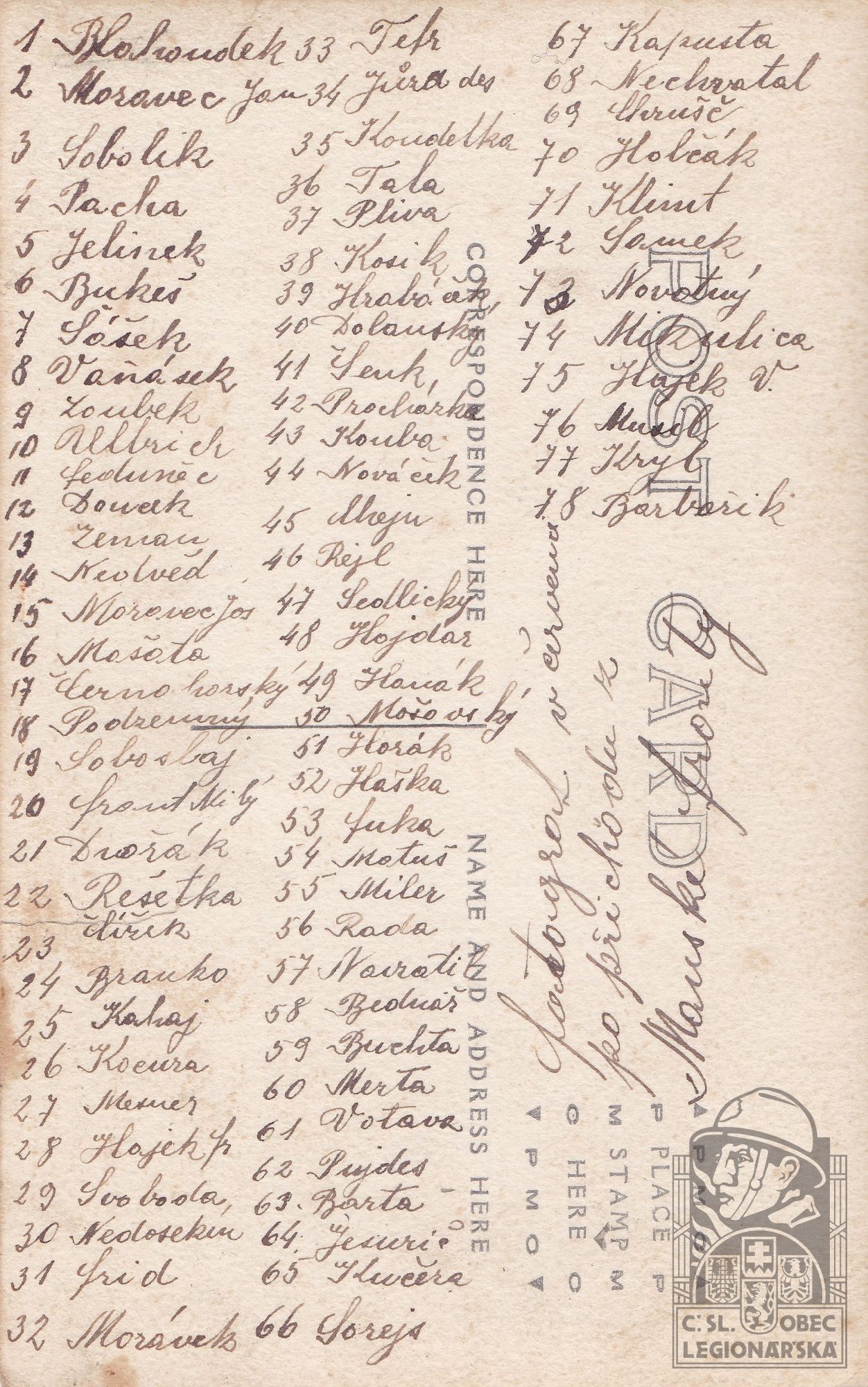 Zdroj informací: legionářský poslužný spis osobní karta legionáře