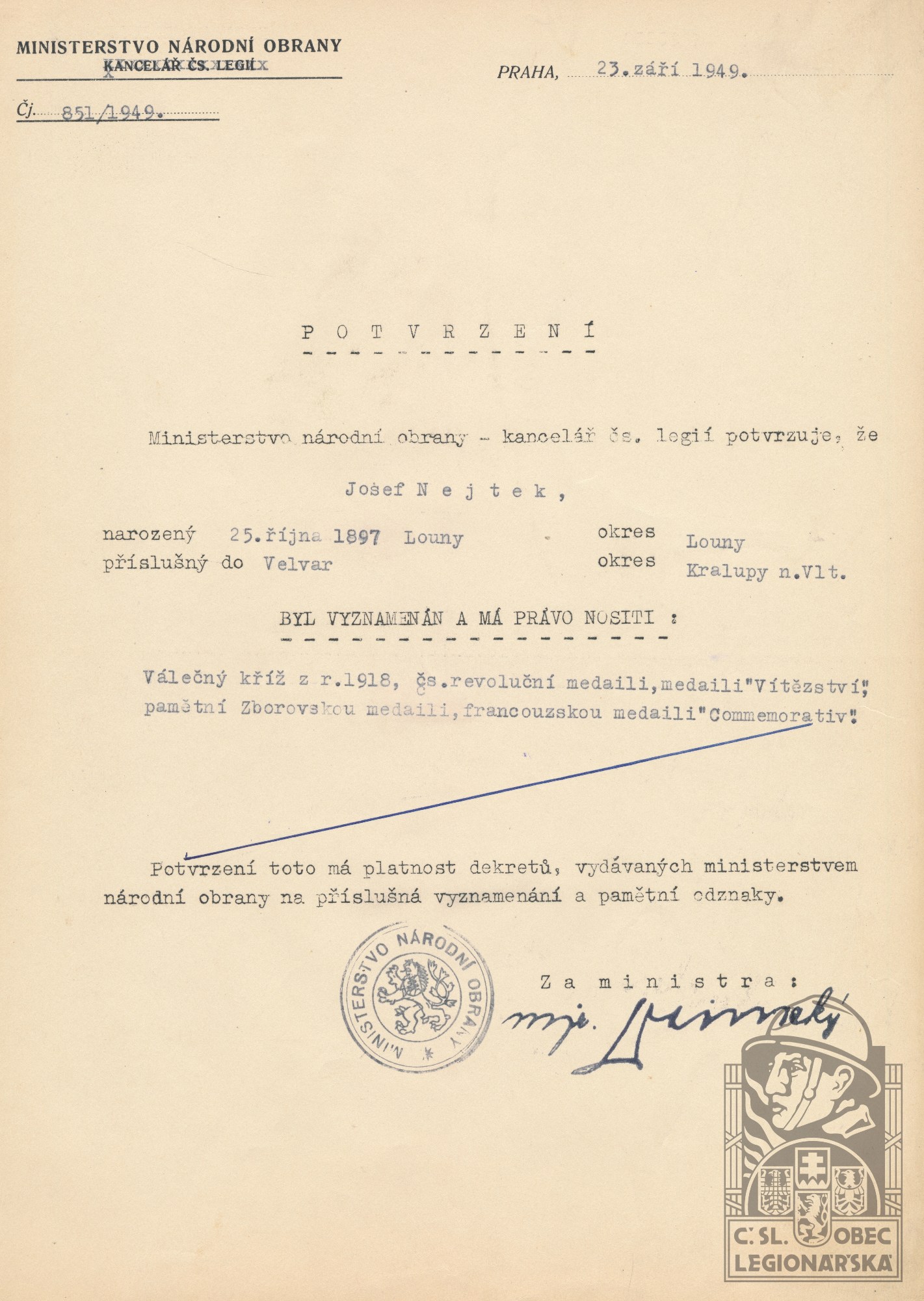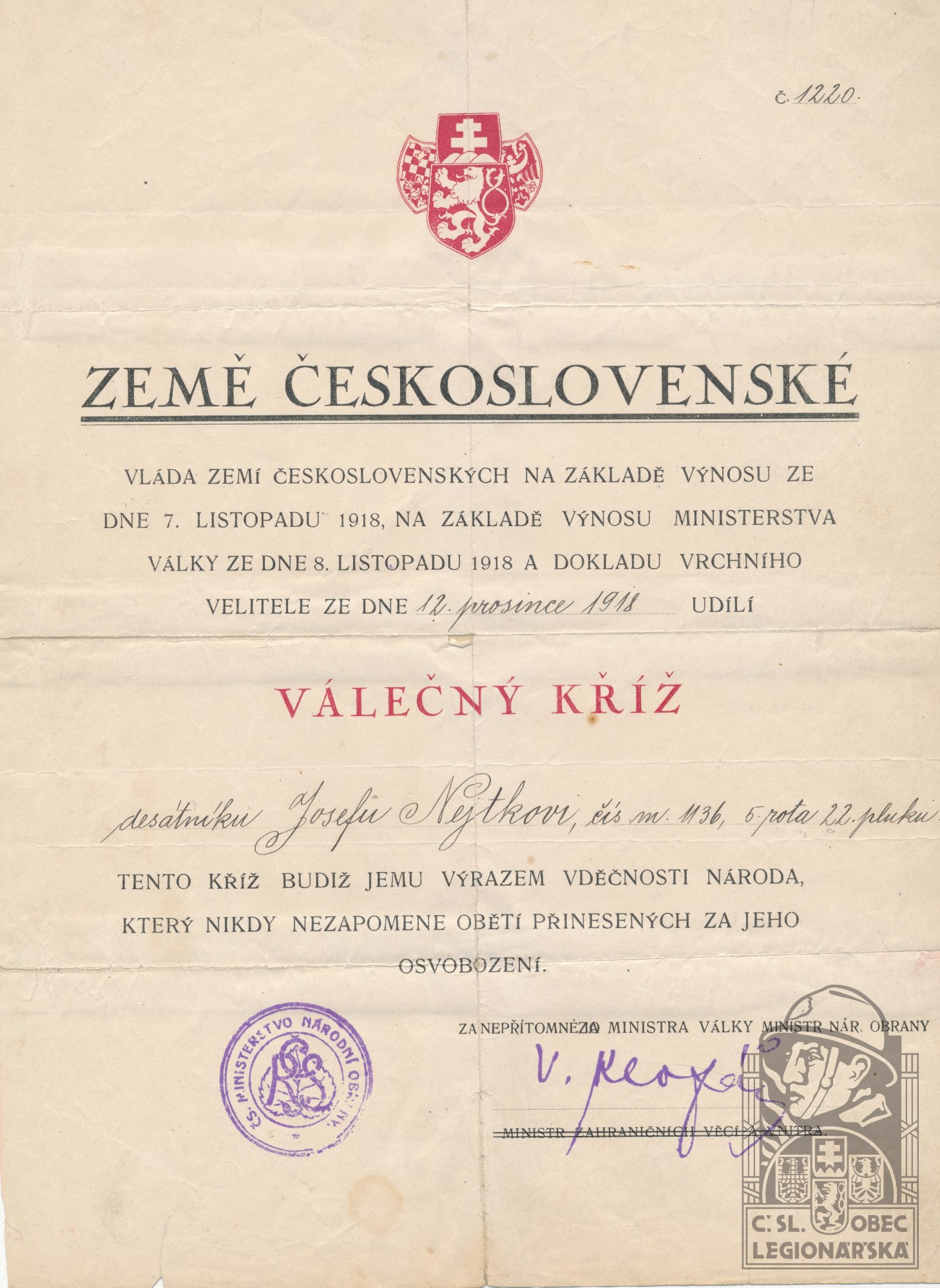 Konec v legiích:27.2.1922 ( Demobilizován )