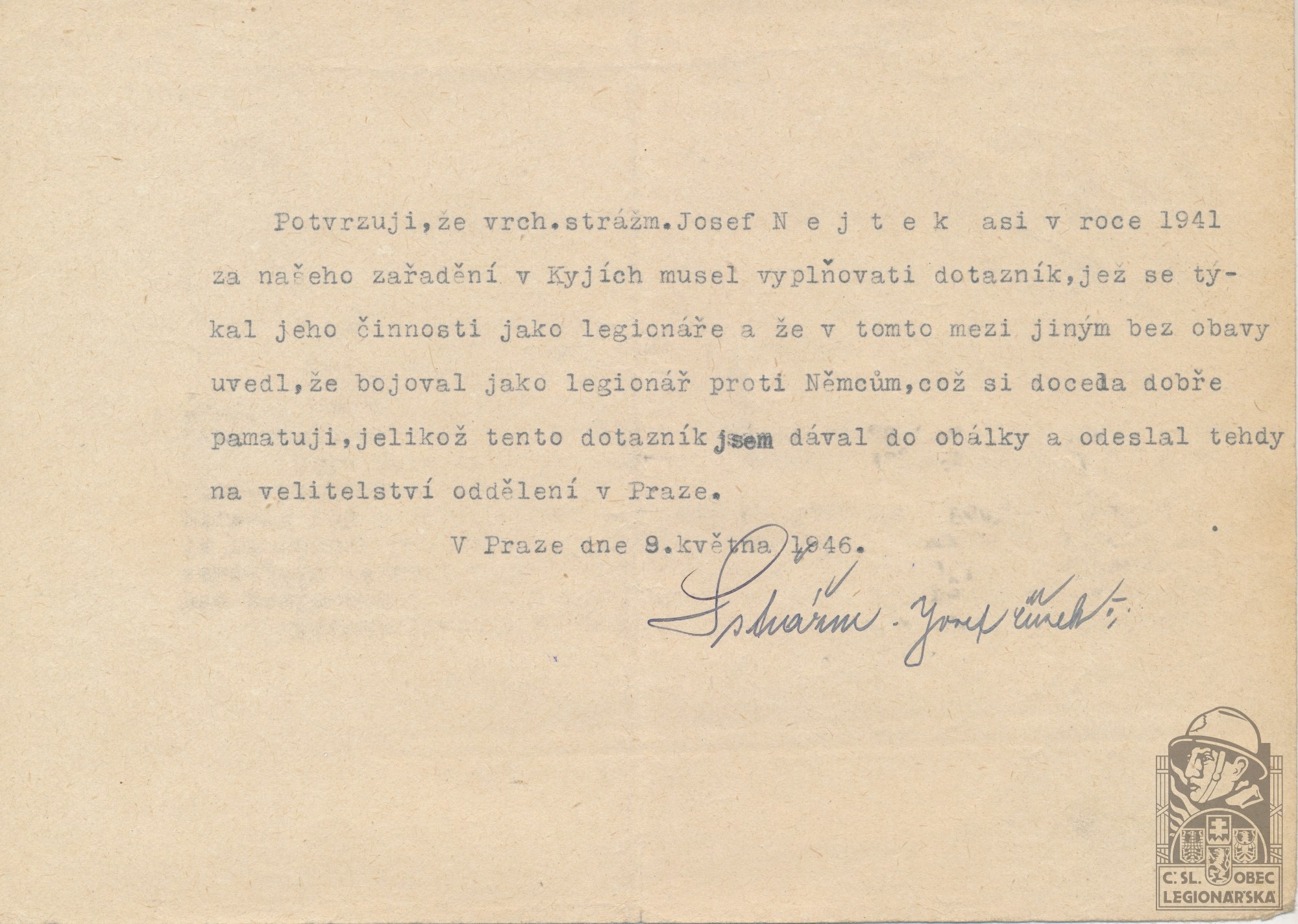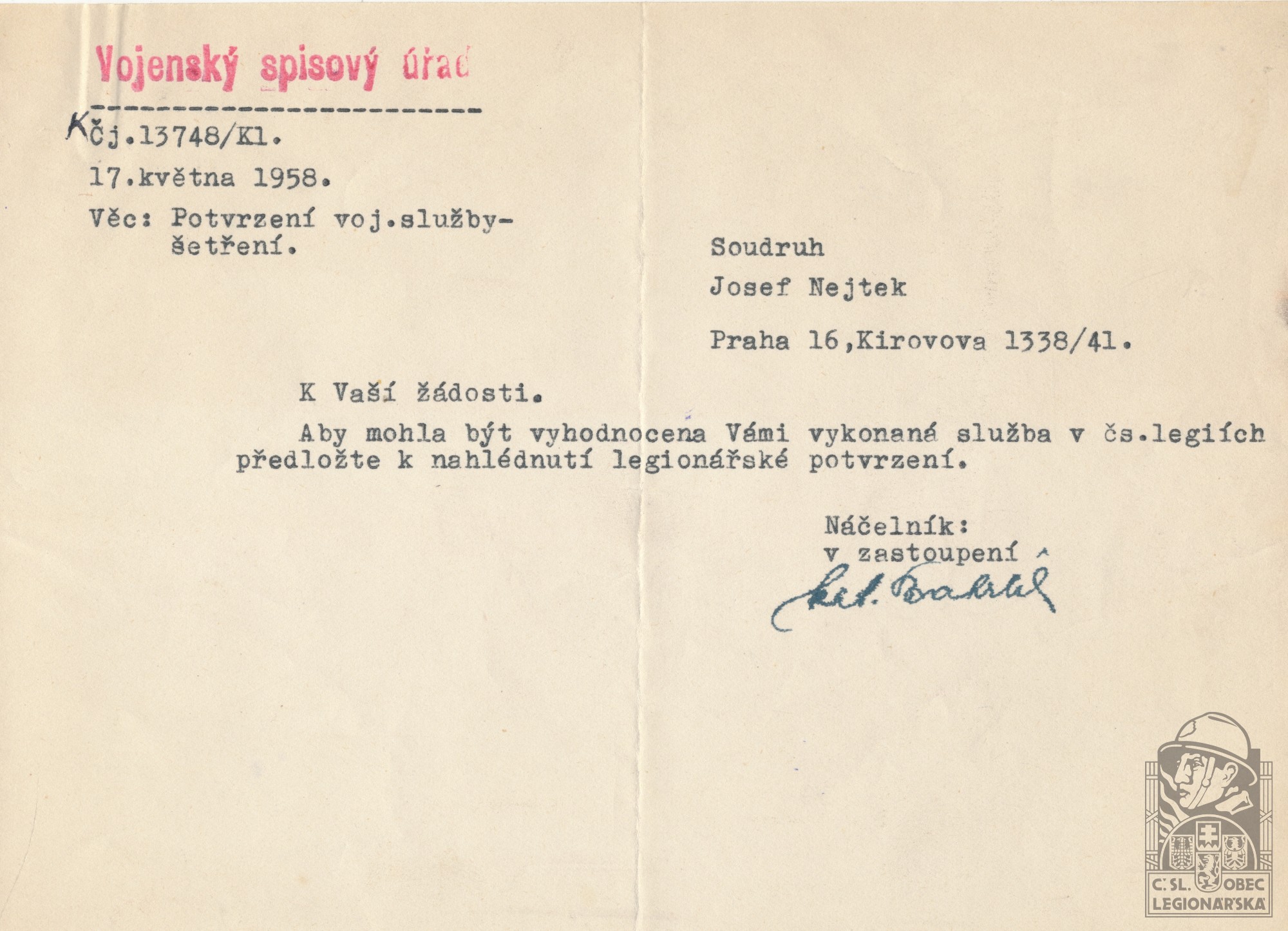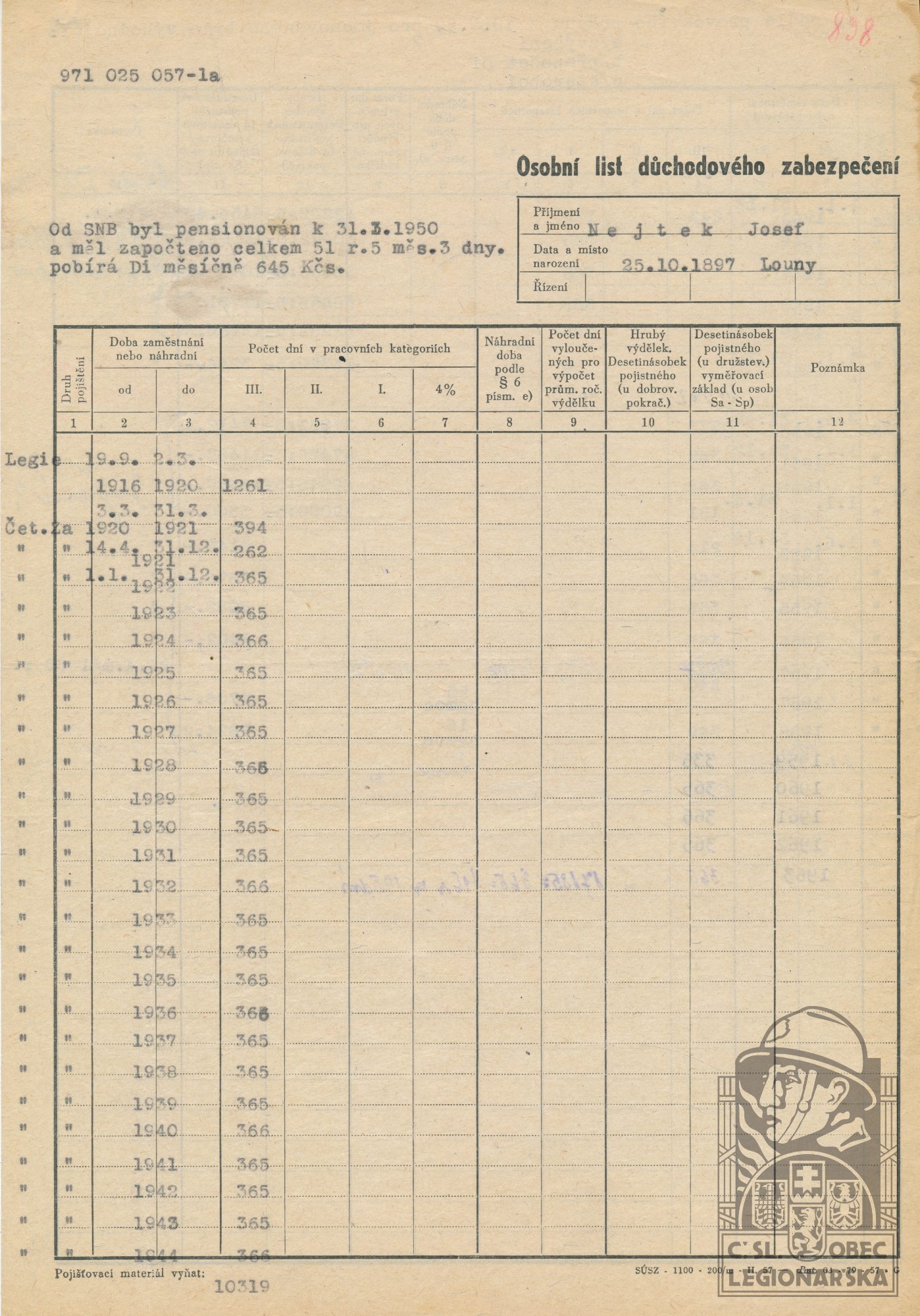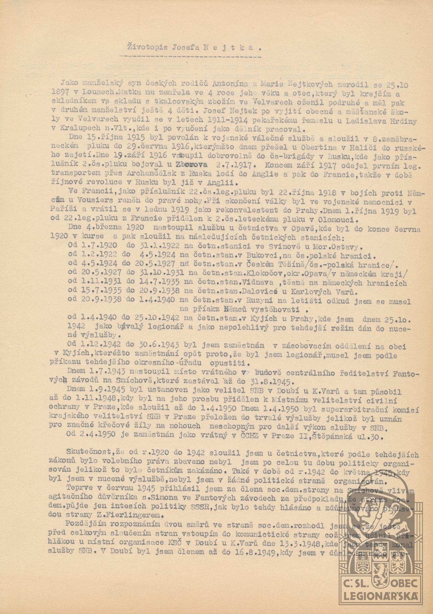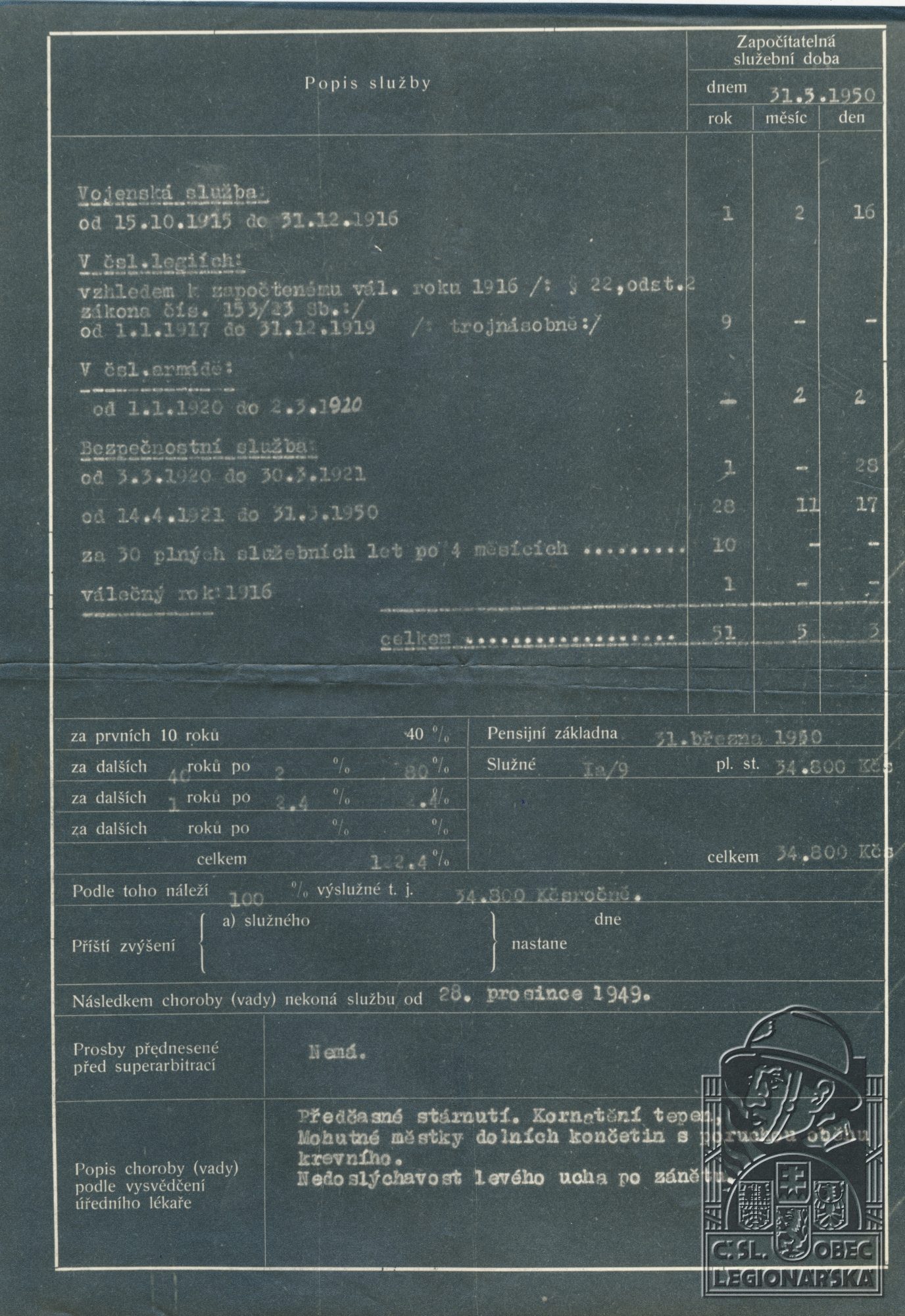 Zdroj informací: legionářský poslužný spis osobní karta legionáře
