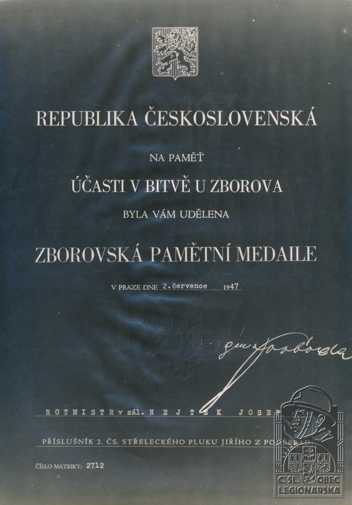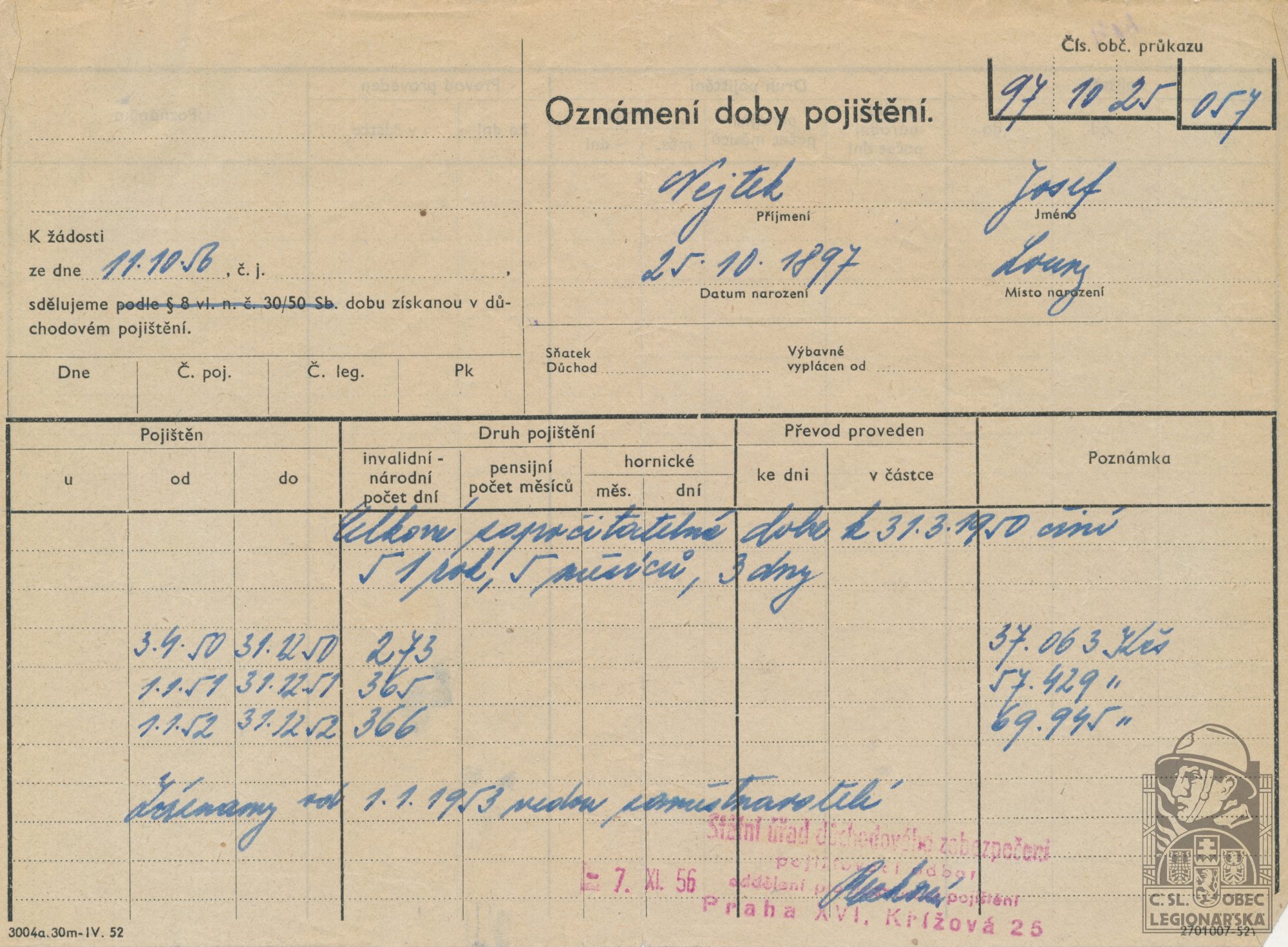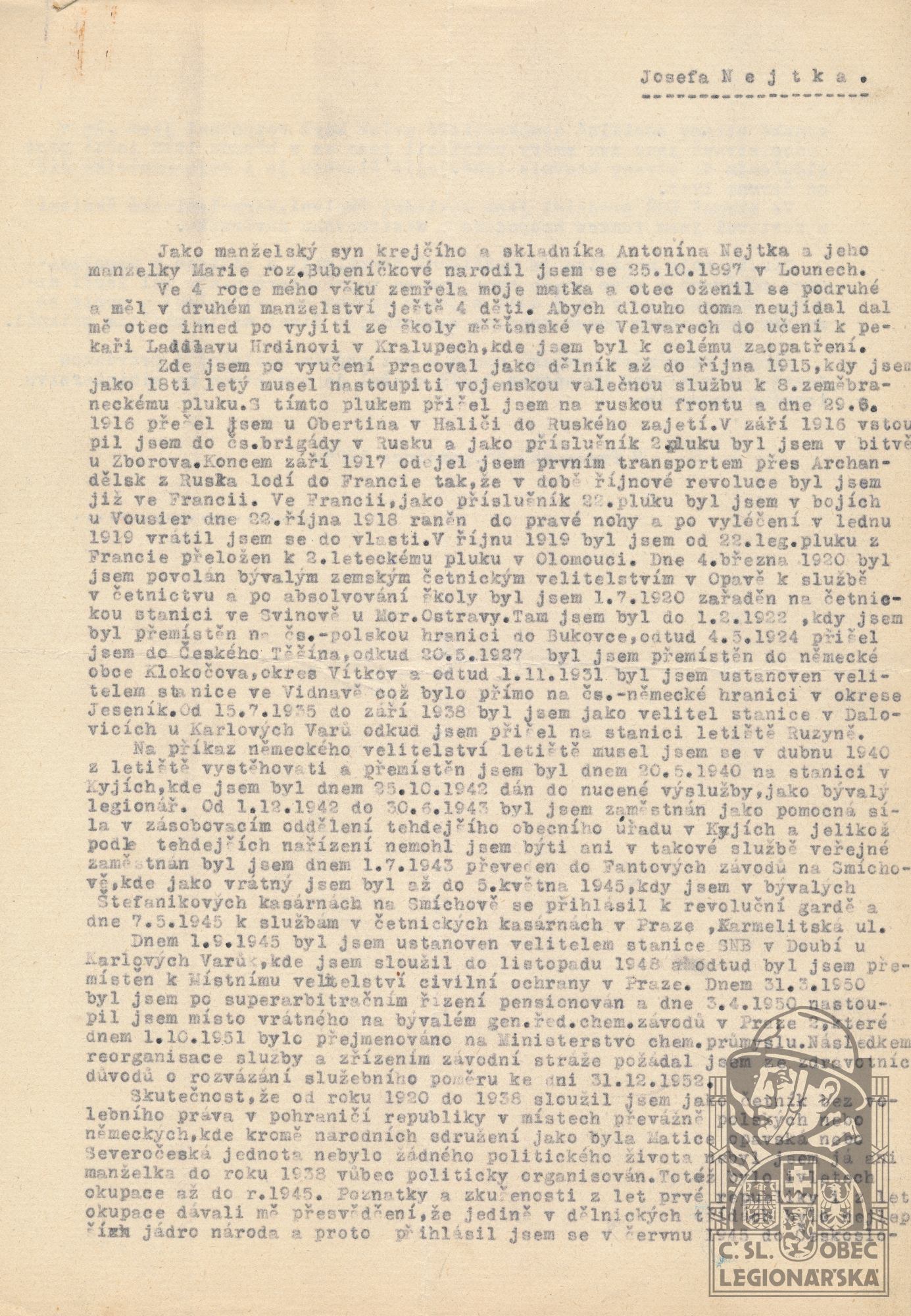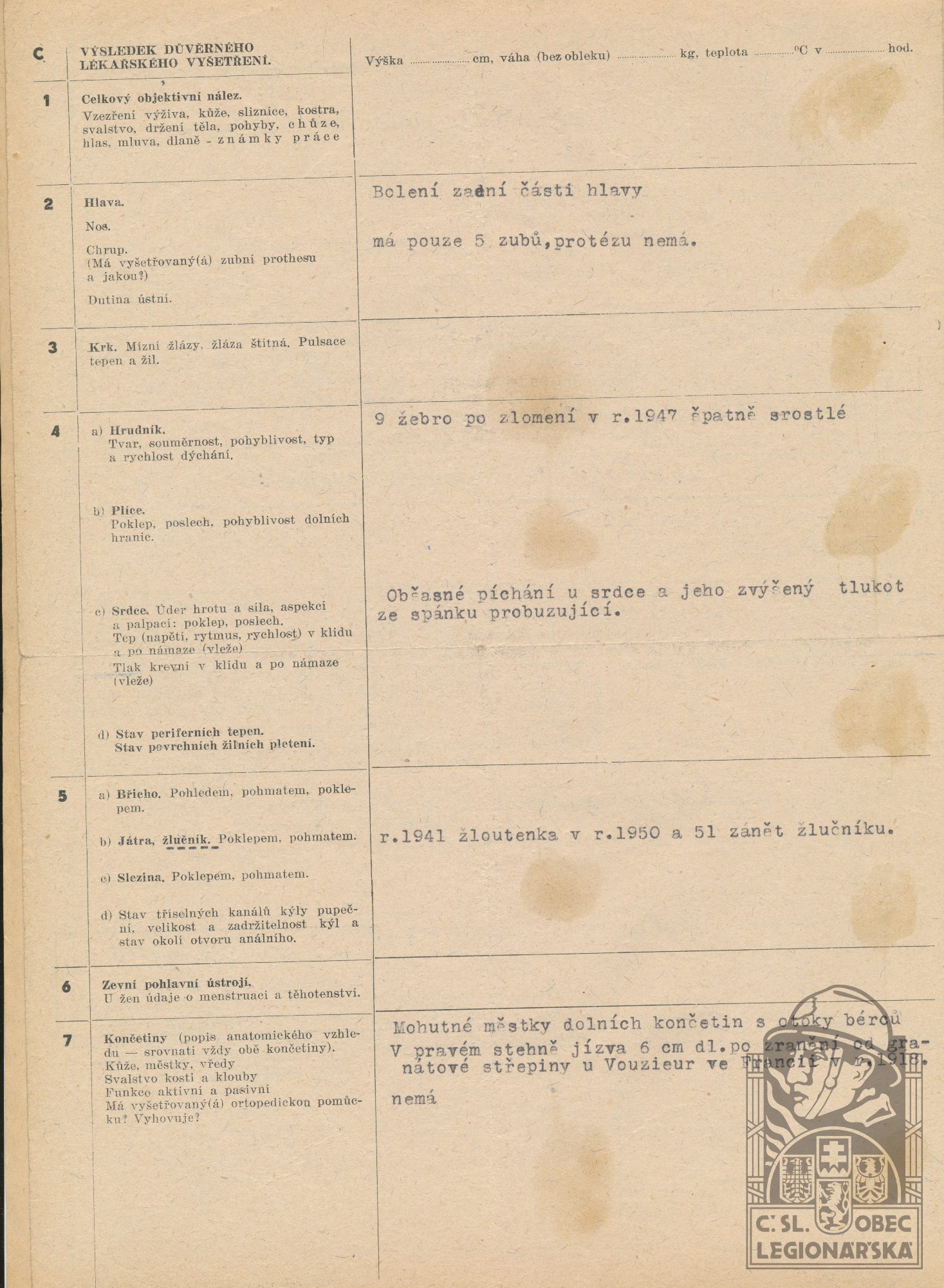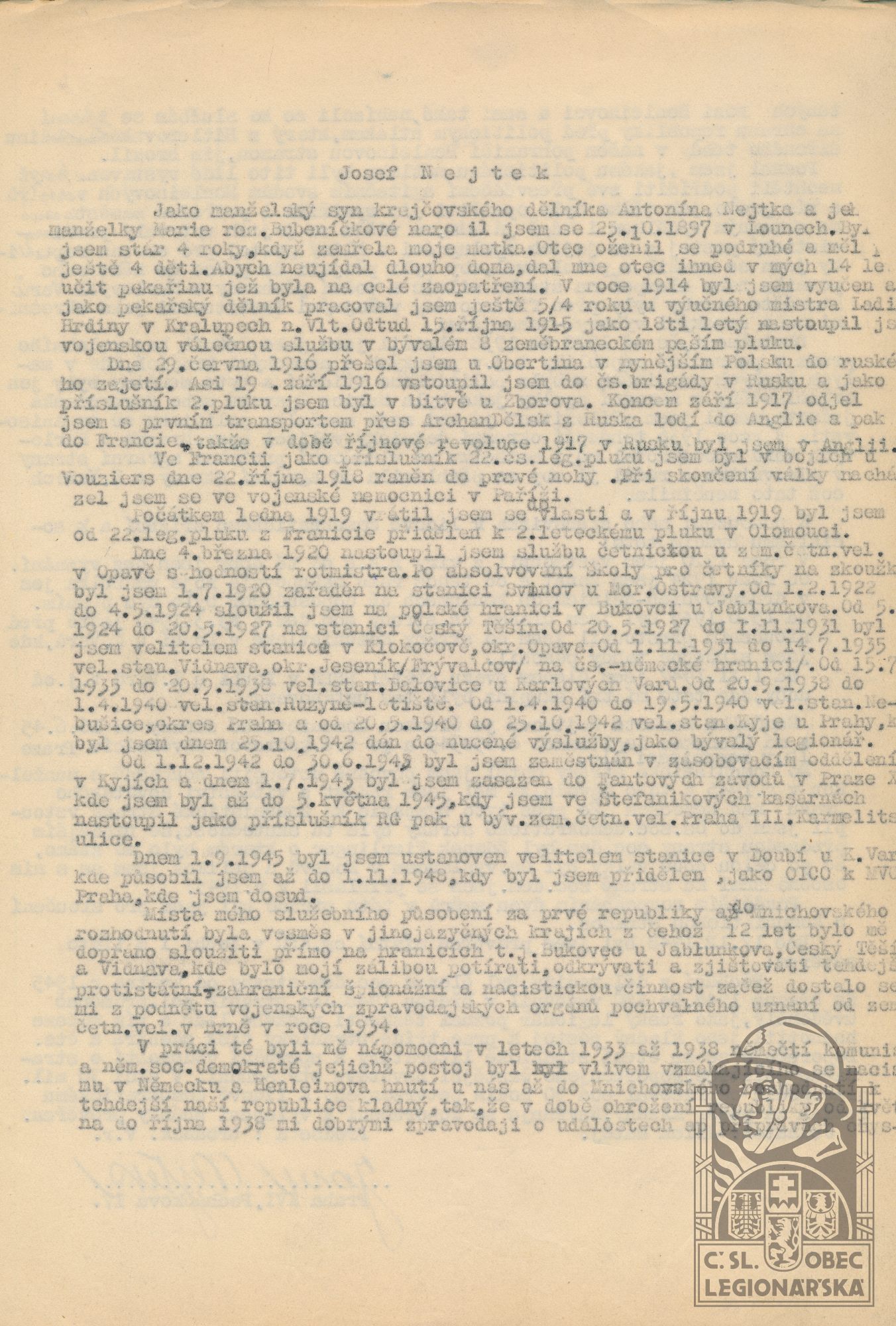 Zdroj informací: legionářský poslužný spis osobní karta legionáře