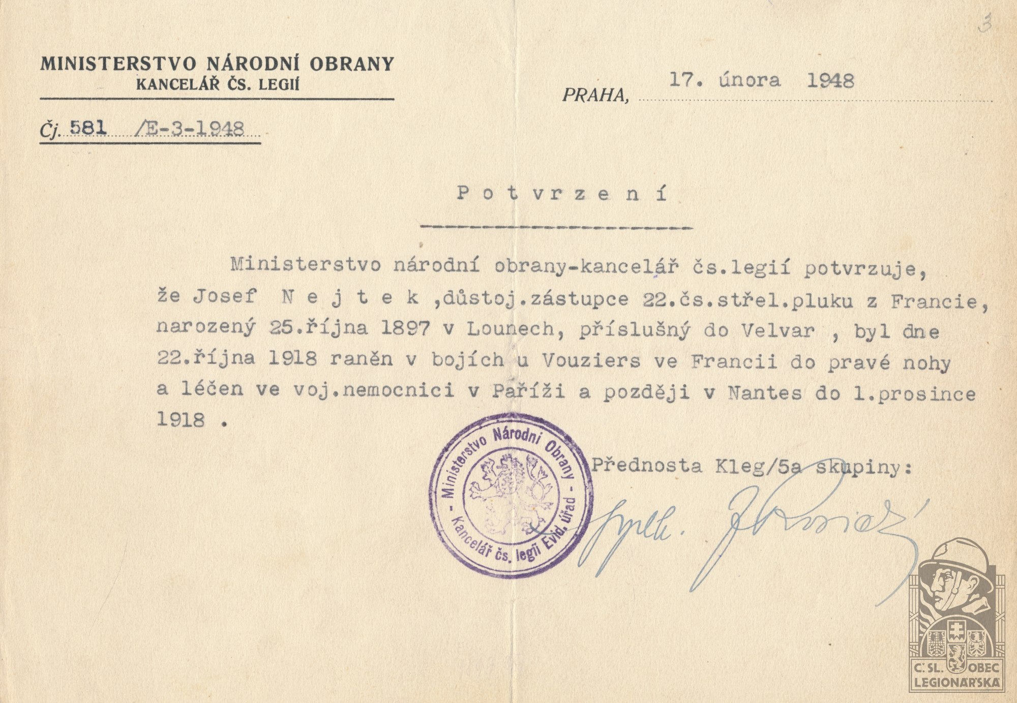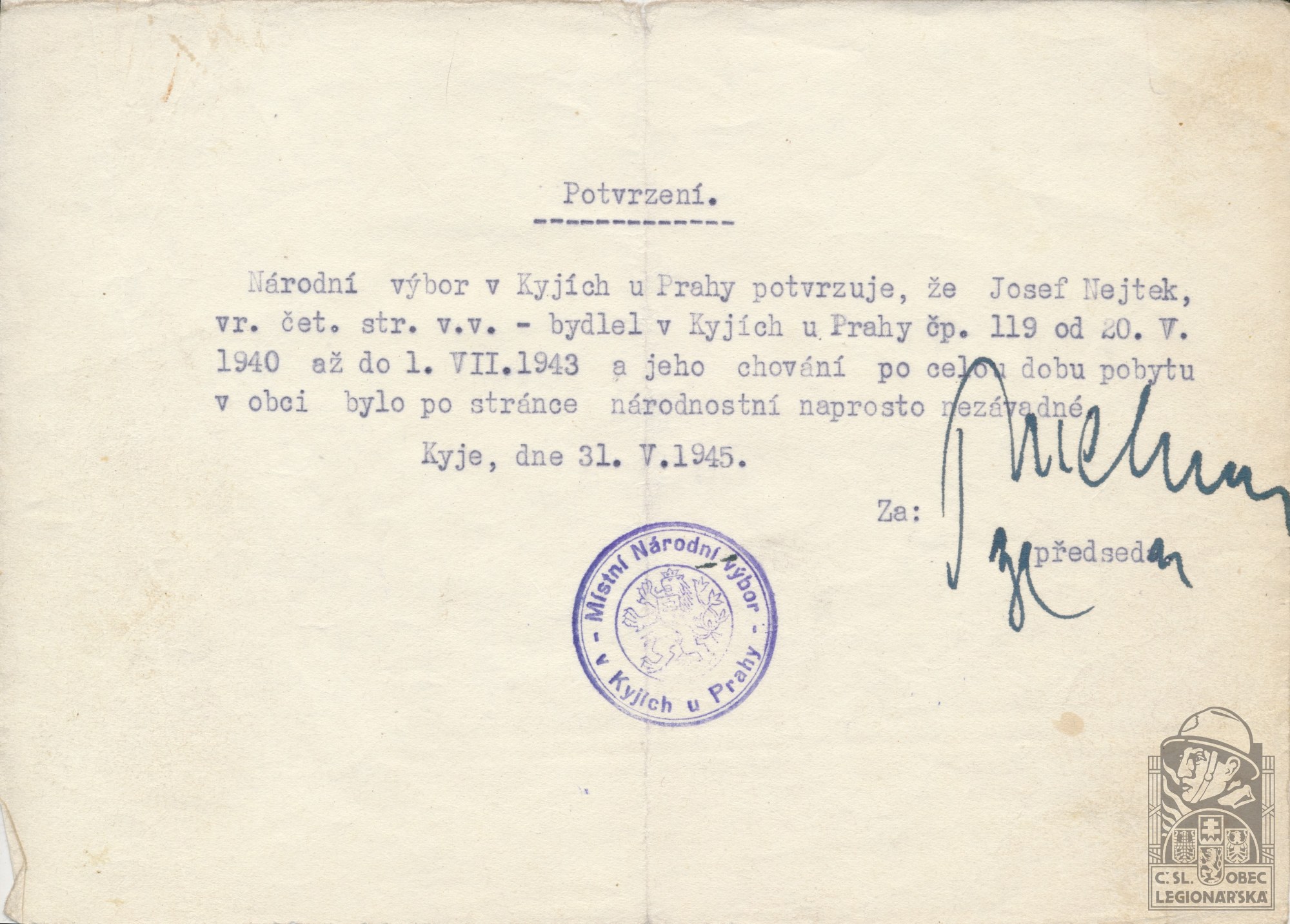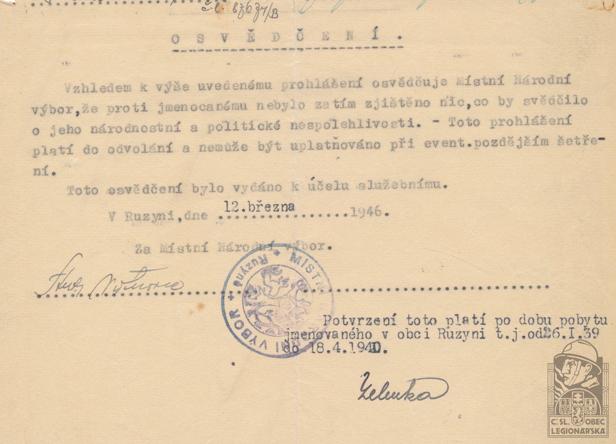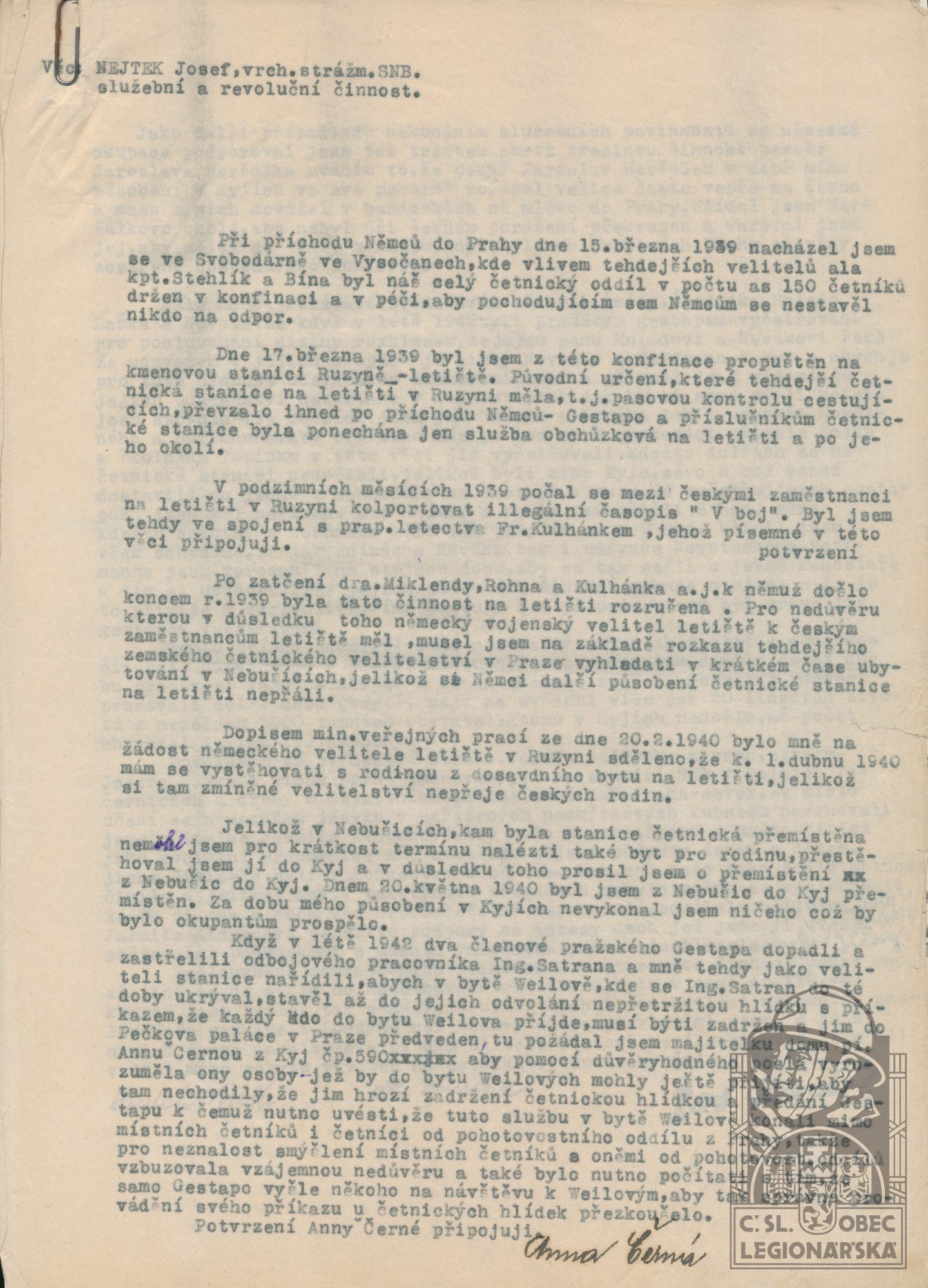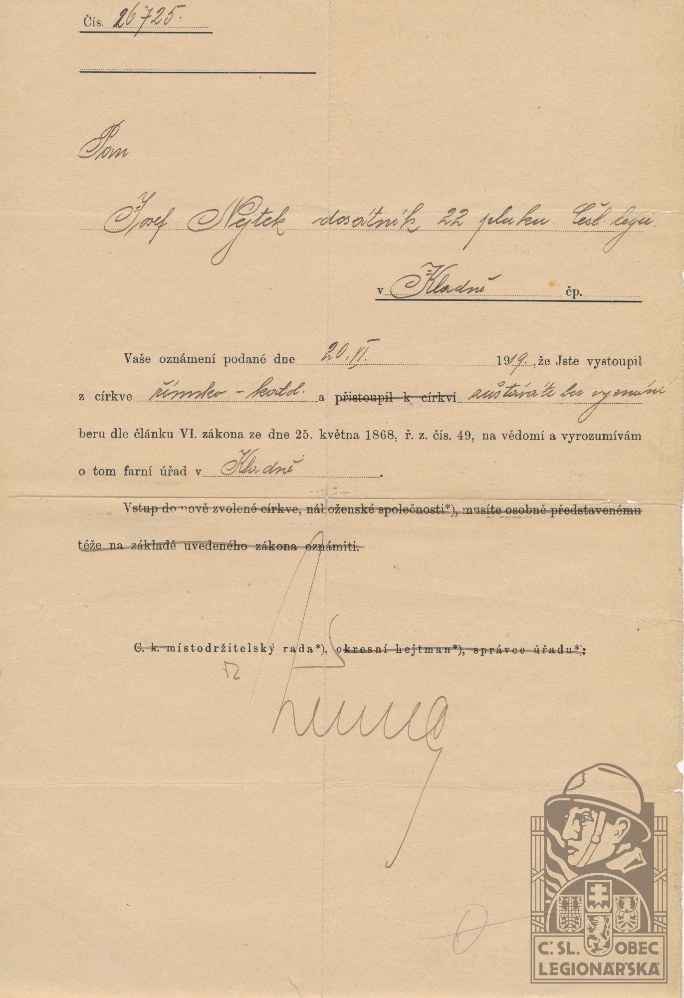Zdroj informací: legionářský poslužný spis osobní karta legionáře