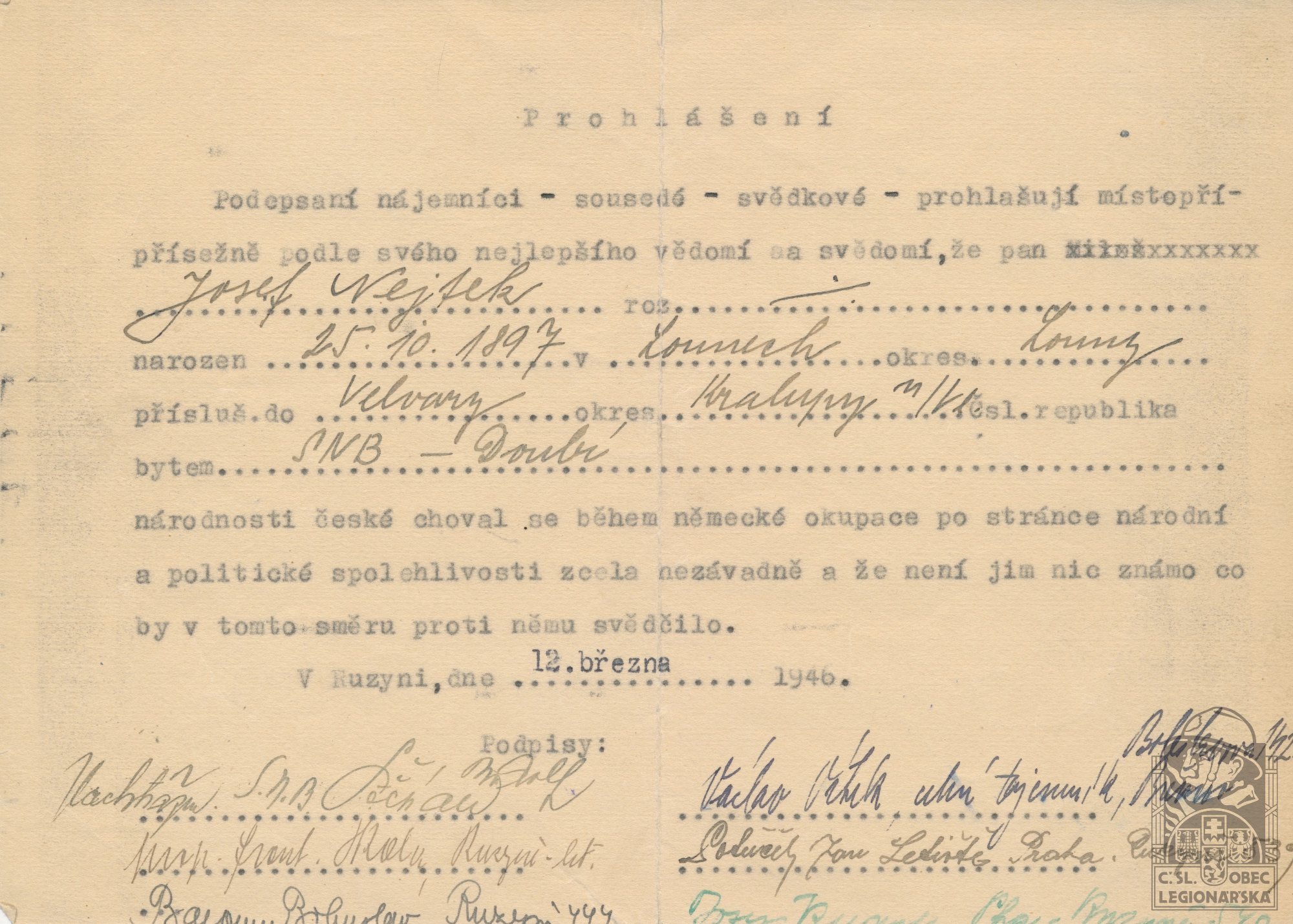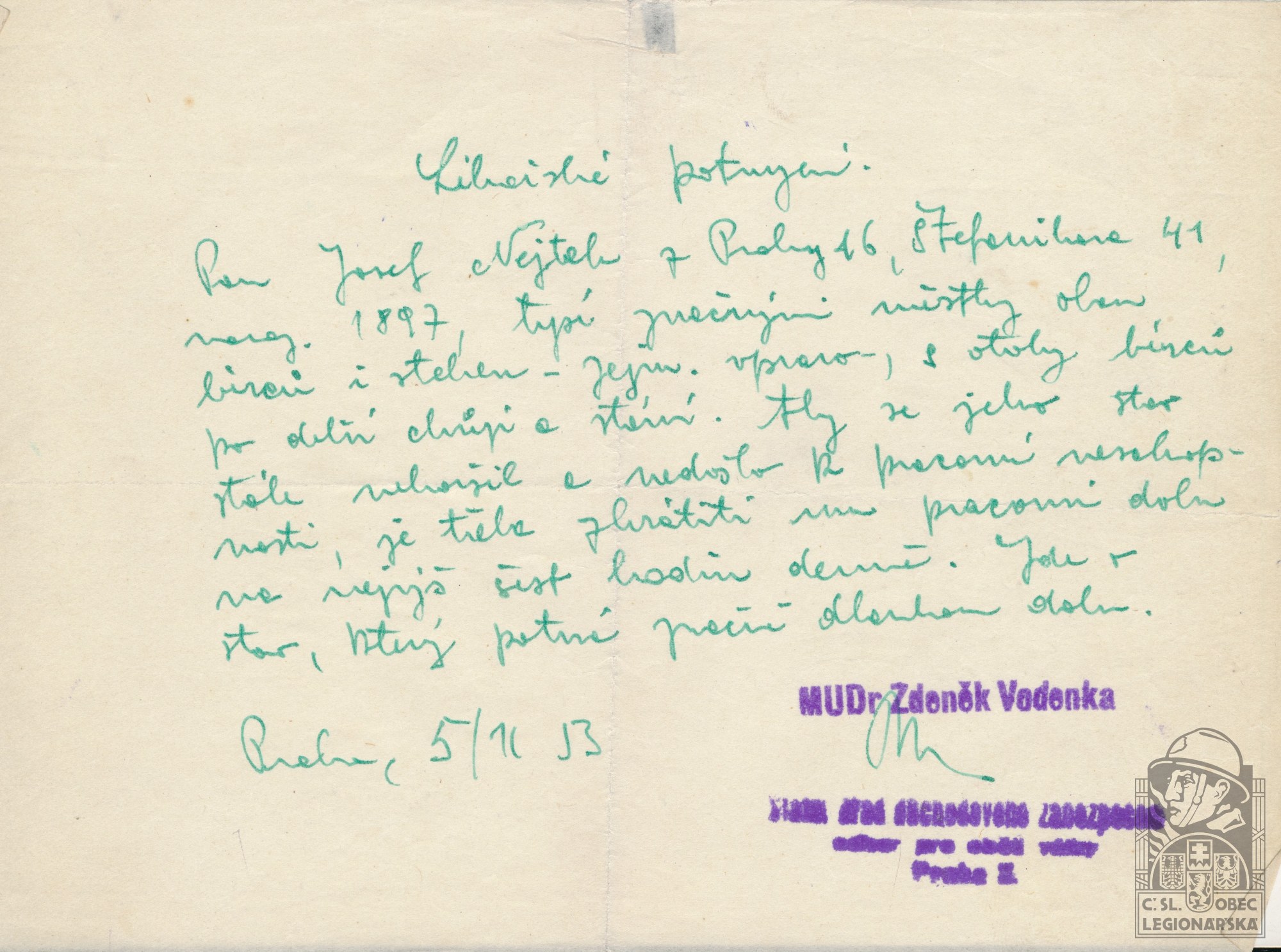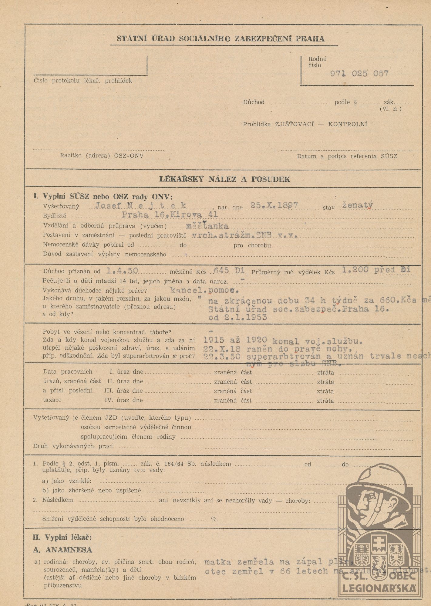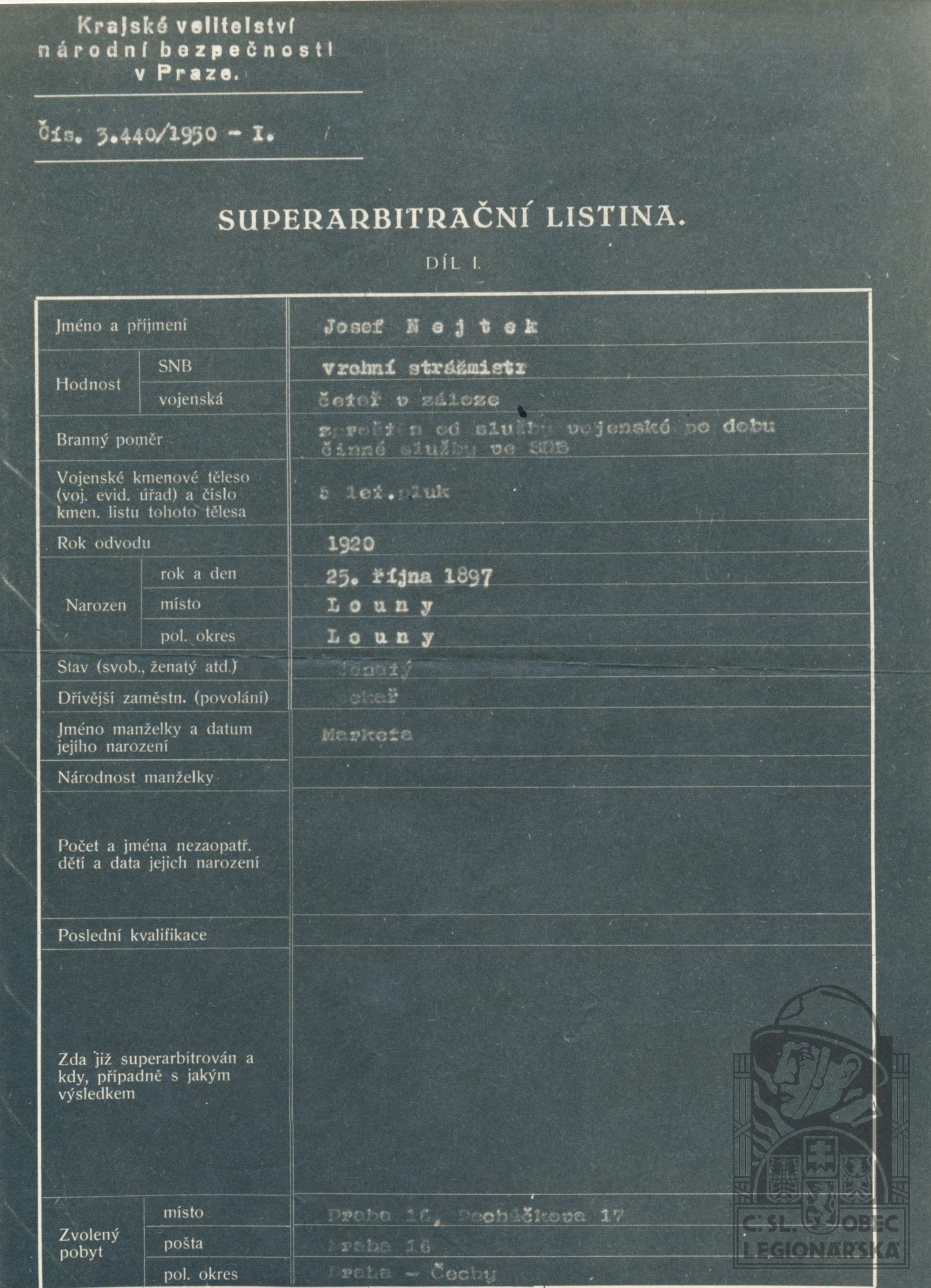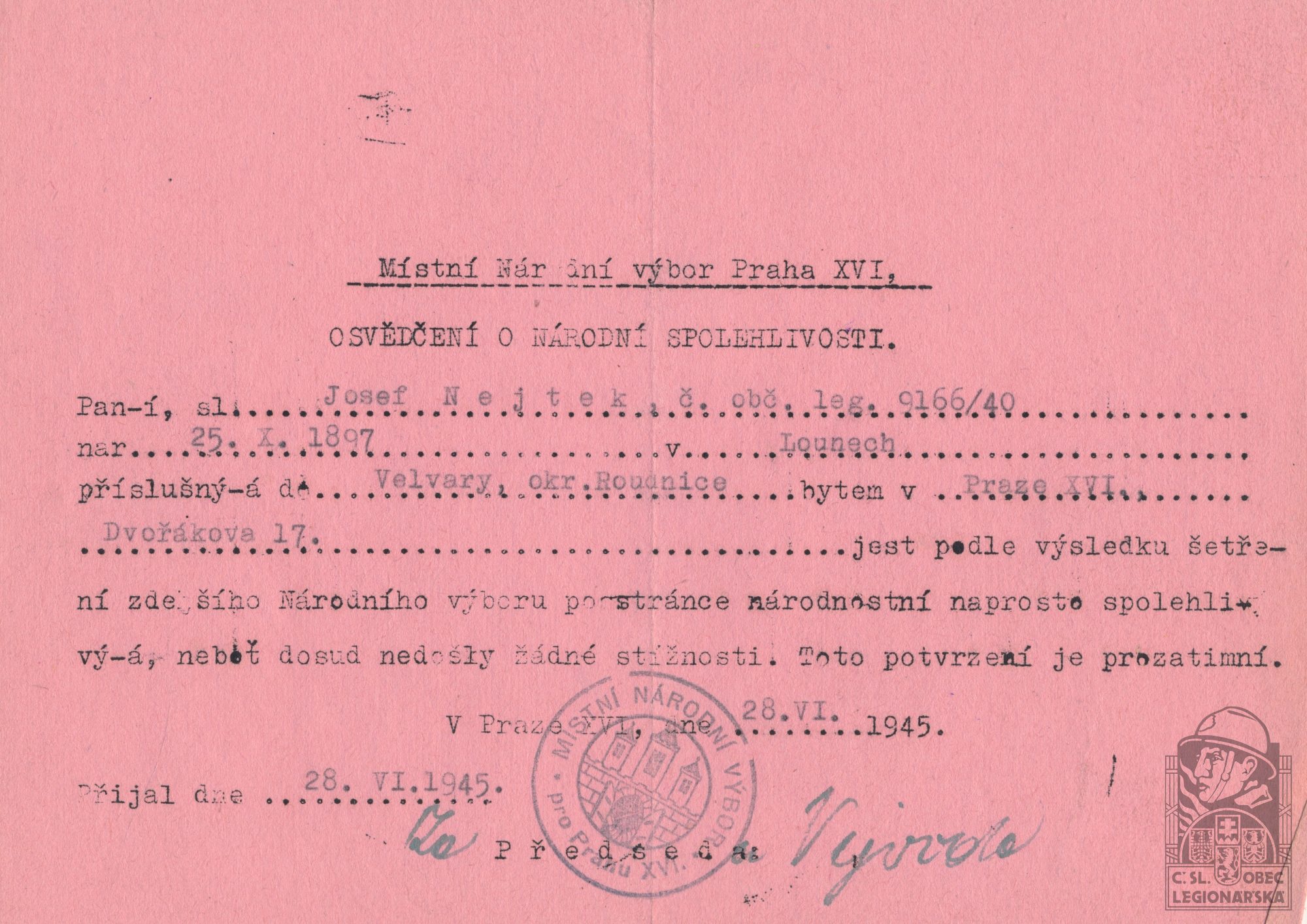 Zdroj informací: legionářský poslužný spis osobní karta legionáře